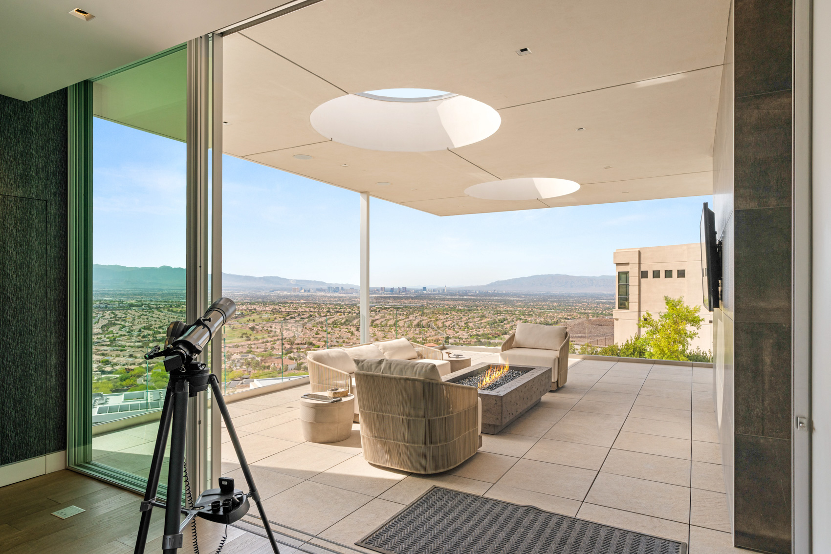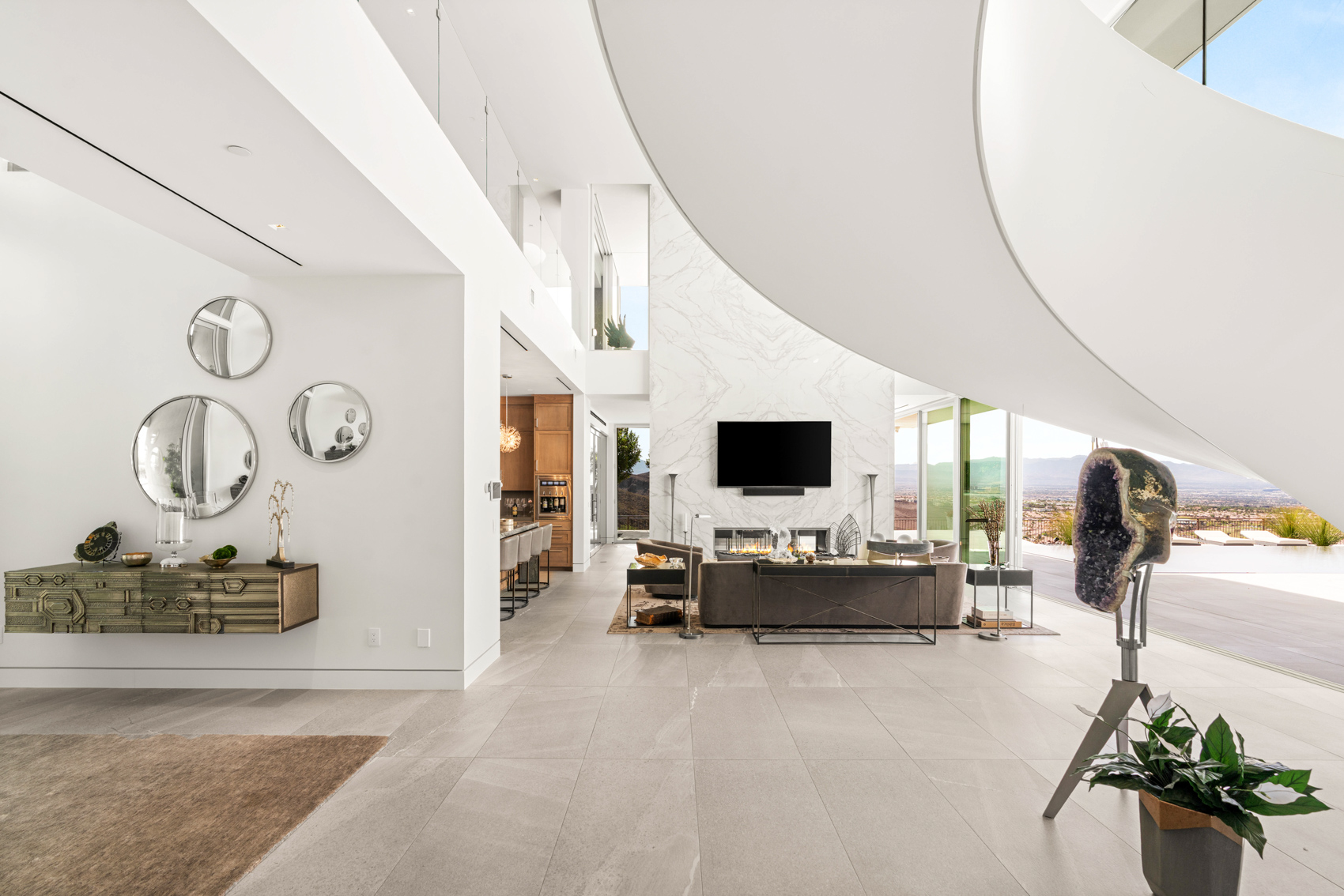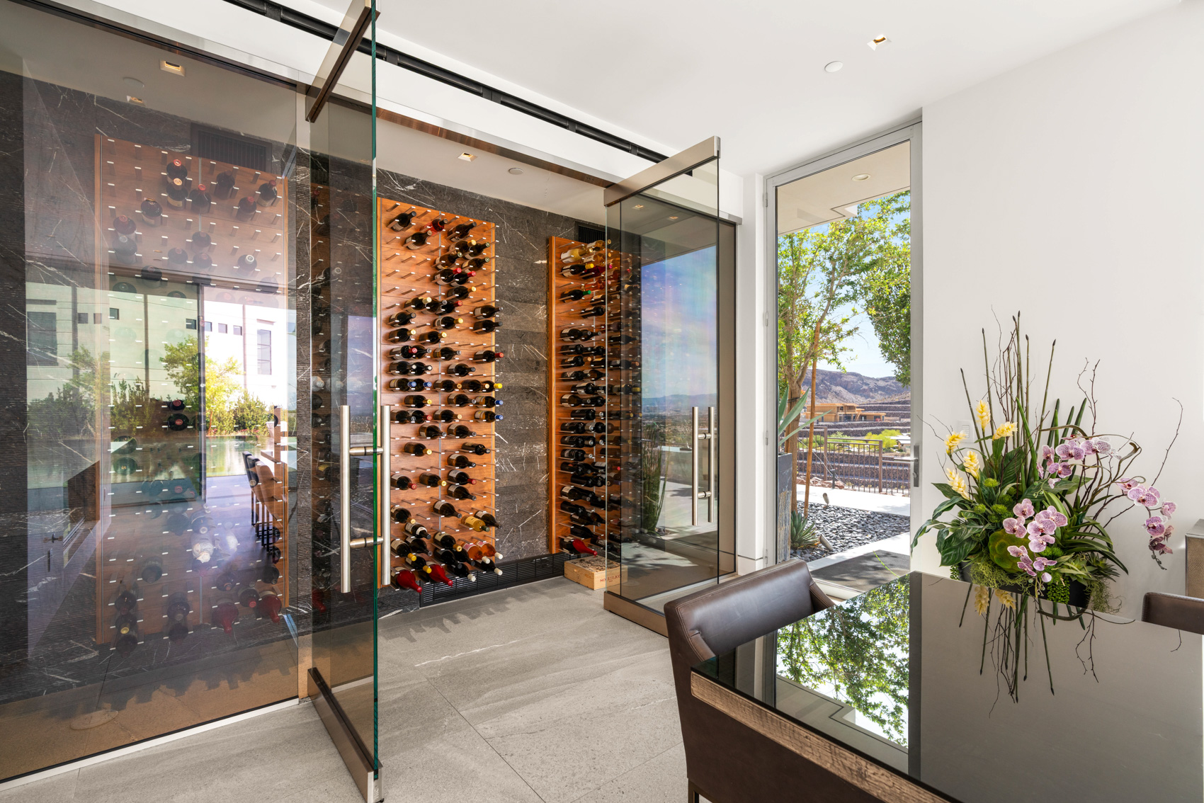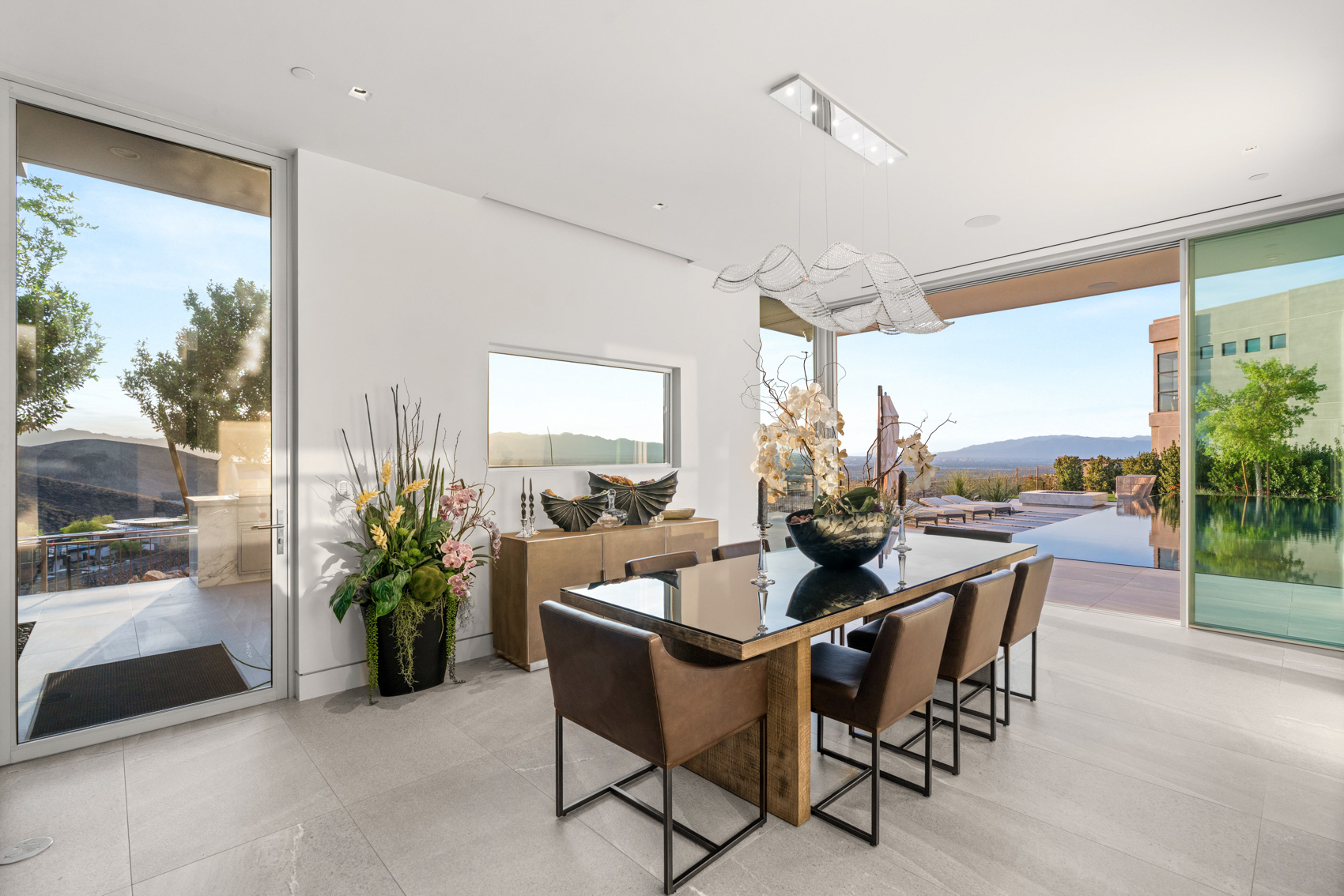 Step through a grand entryway into a soaring open-concept living space framed by 22-foot ceilings and floor-to-ceiling glass walls that dissolve the boundary between indoors and out. A custom sculptural staircase adds an artistic centerpiece, while expansive glass panels capture panoramic views from nearly every room, turning the skyline into living art. The chefās kitchen is a vision of both form and function. Outfitted with an integrated Wolf and Sub-Zero appliance package, dual dishwashers, and a spacious prep pantry, it is designed to accommodate everything from everyday meals to grand-scale entertaining. A sleek Dacor wine station and adjacent glass wine cellar enhance the dining experience, while an oversized island anchors the space with seamless flow into the great room and dining area. This home was designed for entertaining and relaxation alike, with flexible spaces including a media/game room and a second-floor lounge, both featuring full wet bars. Step outside to the upper-level balcony fire lounge, where youāll find one of the most mesmerizing views in the valleyāa front-row seat to the glittering lights of Las Vegas, perfect for evening cocktails or quiet reflection. The main-level primary retreat is a private sanctuary, complete with spa-inspired amenities including an indoor-outdoor shower, luxurious finishes, and direct access to the backyard oasis. Each of the eight bedrooms offers generous proportions and en-suite bathrooms, ensuring comfort and privacy for all residents and guests. Throughout the home, no detail has been overlooked. Neolith stone fireplace walls bring a natural yet modern elegance to the living areas. Custom wall treatments, Control4 whole-home automation, and sustainable solar energy integration bring elevated convenience and efficiency to everyday living. Outdoors, the resort-style backyard continues the experience of curated luxury. A zero-edge pool and spa invite you to unwind in style, while two sleek fire features and a built-in barbecue area set the stage for unforgettable evenings under the desert sky. With a four-car garage and ample space for guests and storage, this residence offers both practicality and polish in every corner. Living in Ascaya is more than a lifestyleāit is a privilege. Located in the heart of Henderson, Ascaya is one of the most sought-after luxury communities in Southern Nevada. Residents enjoy 24/7 guard-gated security, breathtaking desert architecture, and an elevated sense of privacy and exclusivity. The award-winning Ascaya Clubhouse offers resort-style amenities including a state-of-the-art fitness center, private cabanas, tennis and pickleball courts, a yoga studio, and a social lounge. Community events and curated experiences foster a sense of connection while preserving tranquility. Just minutes from world-class golf courses, fine dining, The District at Green Valley Ranch, and top-rated schools, Ascaya offers the perfect balance of seclusion and accessibility. And with the Las Vegas Strip and Harry Reid International Airport only a short drive away, convenience is never compromised. 13 Rockstream Drive is more than a homeāit is a statement of modern luxury, thoughtfully positioned in one of the most desirable enclaves in the country.