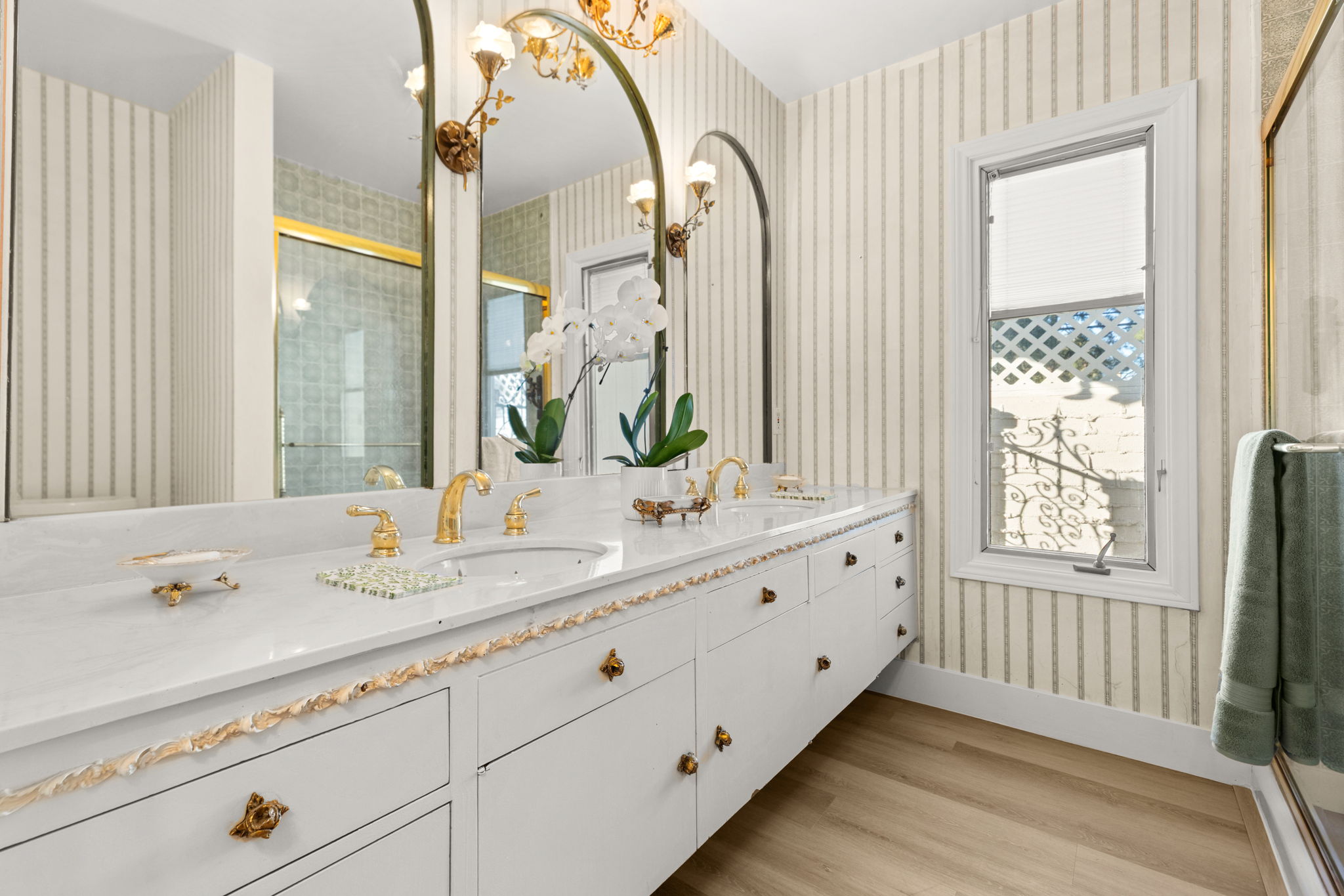 Floor-to-ceiling windows frame tranquil backyard views, anchored by a sunken living room + dramatic step-down built-in bar. Touches of Hollywood Regency are found throughout. Modernized kitchen offers an executive chef’s double range, large-capacity refrigerator, custom cabinetry and original antique diamond-pane sash windows. Major system upgrades completed in 2020 include new electrical panel, new A/C units, and all new internal plumbing. Just minutes from downtown, this legacy property combines historic significance, architectural character, and a walkable urban lifestyle.
