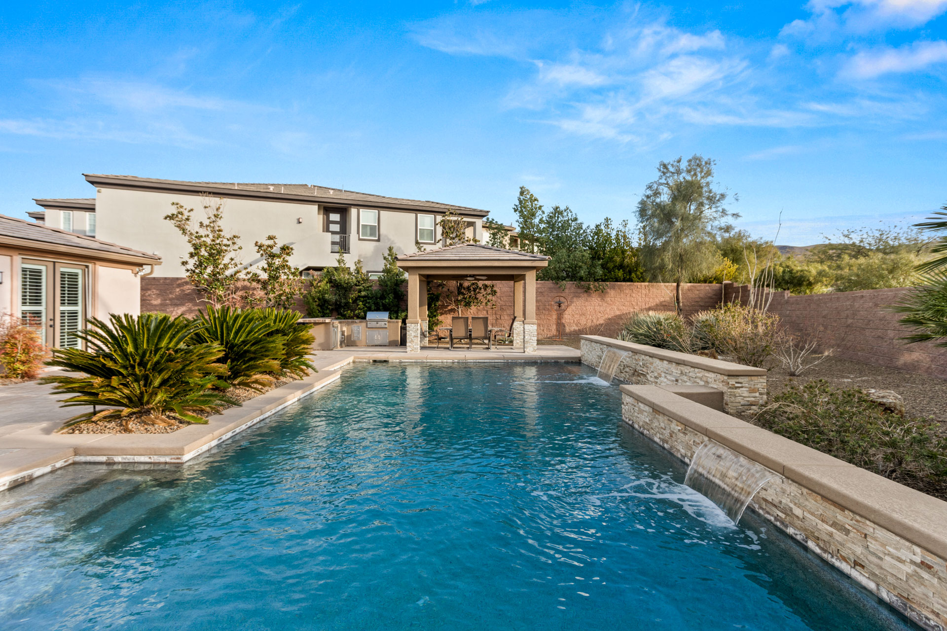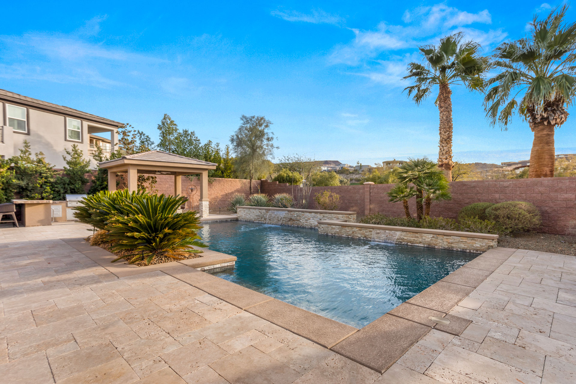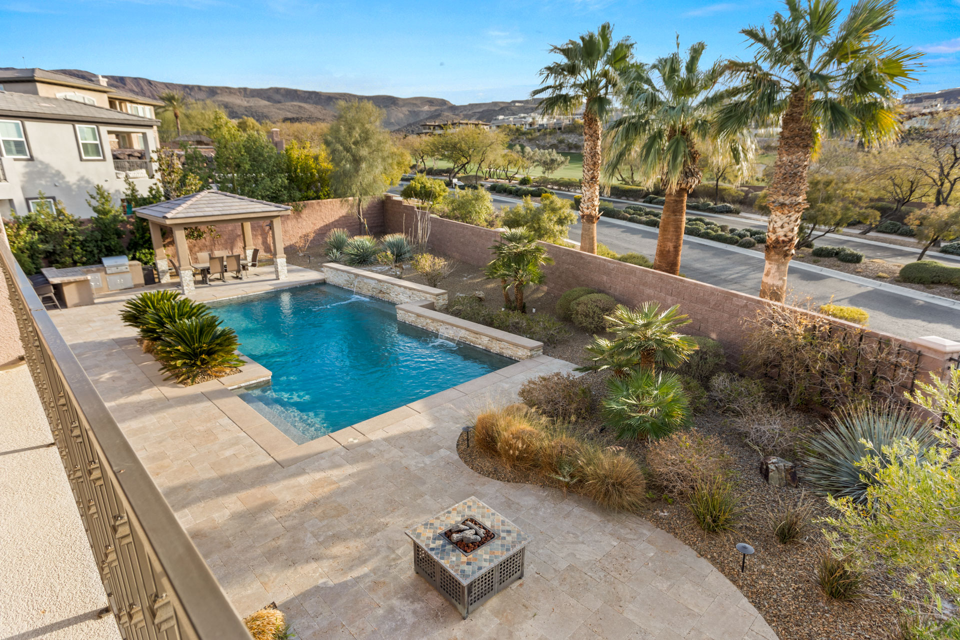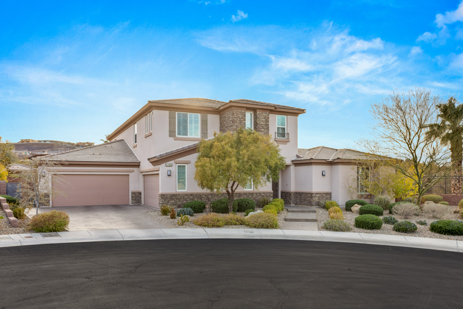 Stunning home located in a desirable cul-de-sac within the prestigious guard gated golf course community of MacDonald Ranch. This estate offers spectacular views of the Las Vegas Strip and includes 5 bedrooms plus a casita.