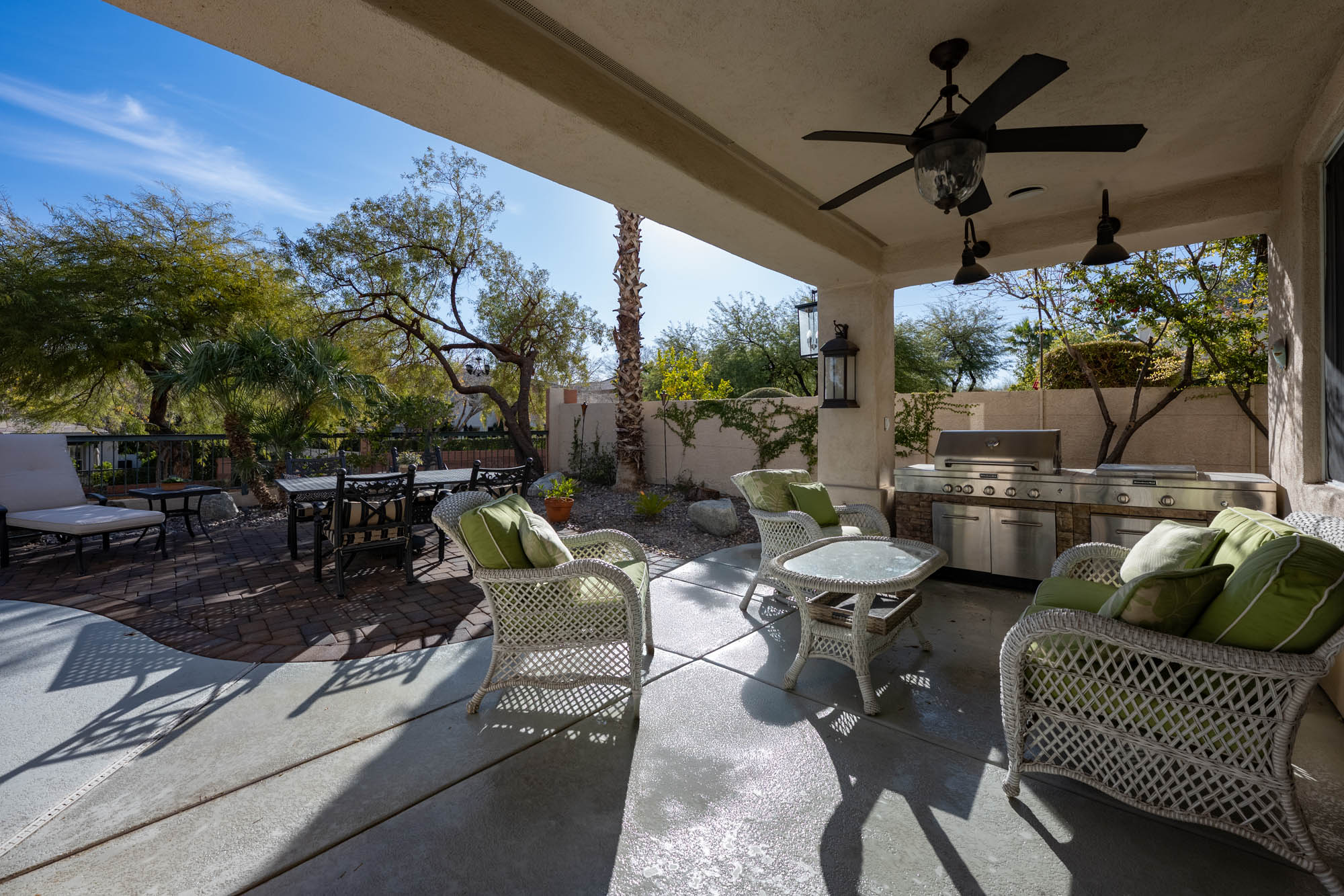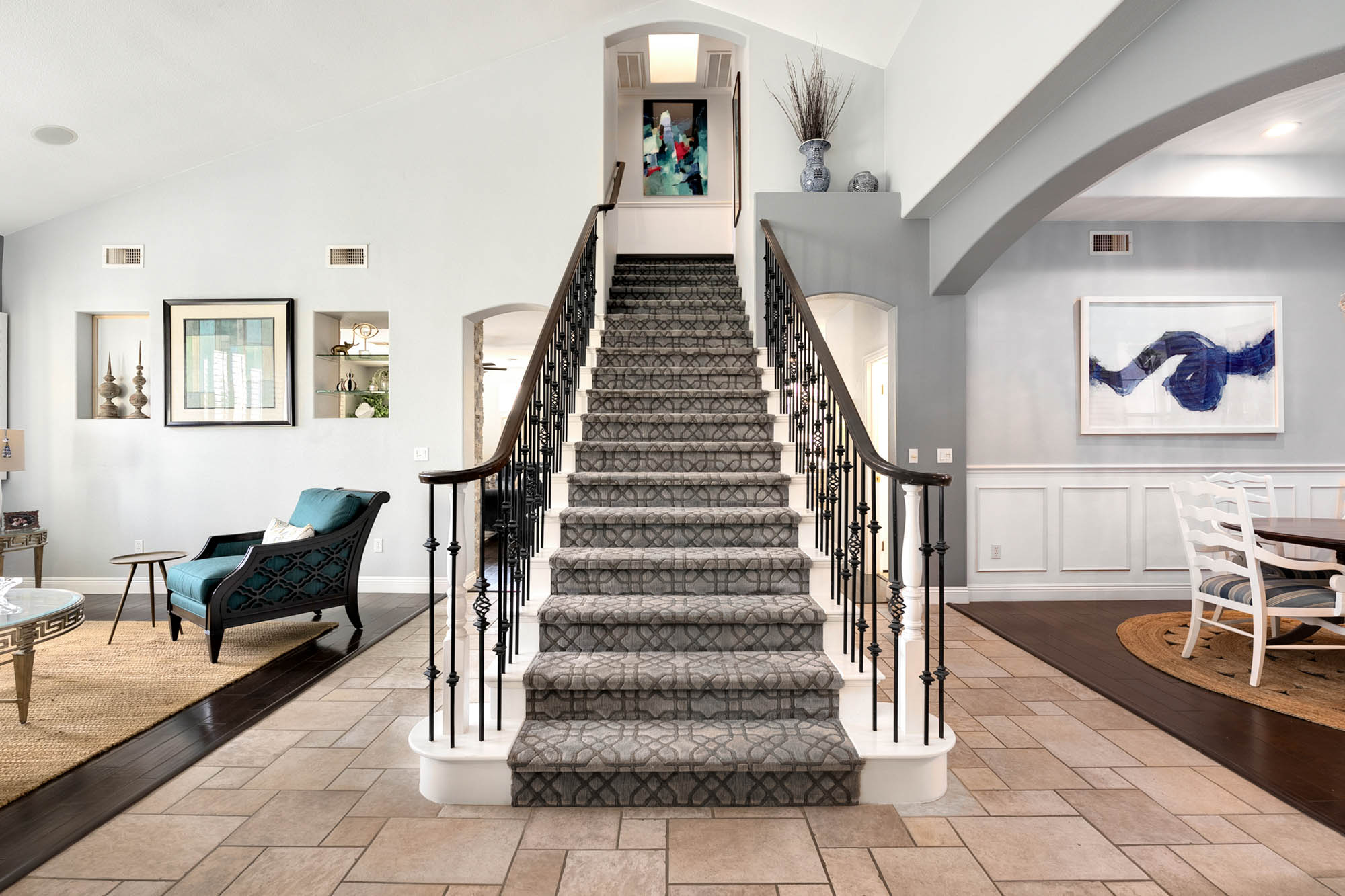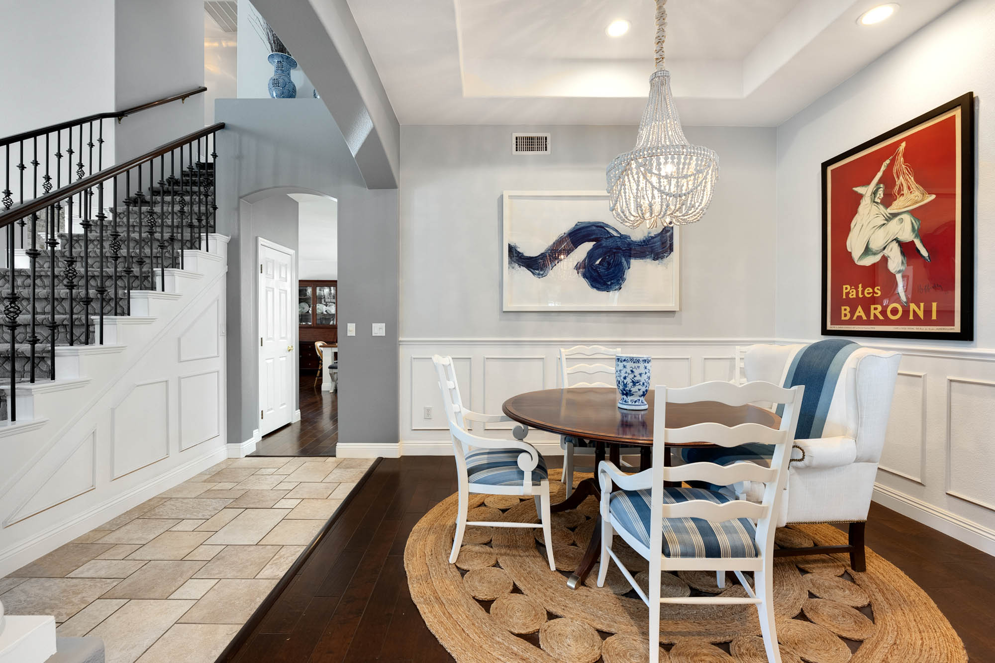 The timeless interiors feature rich wood floors throughout, a white shaker-style kitchen, quartz countertops, and a beautiful butcher block island. The expansive backyard backs to a serene greenbelt, providing exceptional privacy and tranquility. This home truly embodies comfort and elegance in one of Summerlin's most prime locations.
