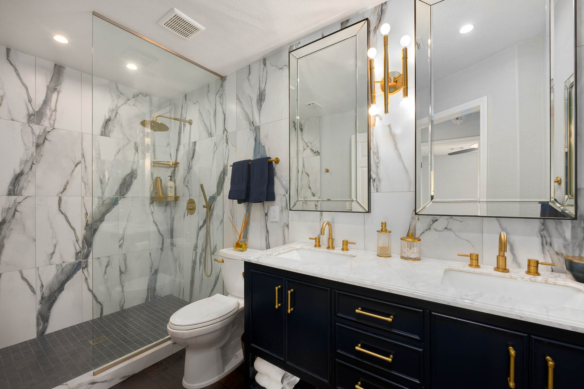 Welcome to The Woodlands Retreat, a captivating home located in the sought-after Woodlands subdivision in the heart of Summerlin. Offering over 3,400 square feet of thoughtfully updated living space, this residence boasts four bedrooms, including a spacious downstairs primary suite with a stunning marble-tiled bathroom and elegant marble countertops.