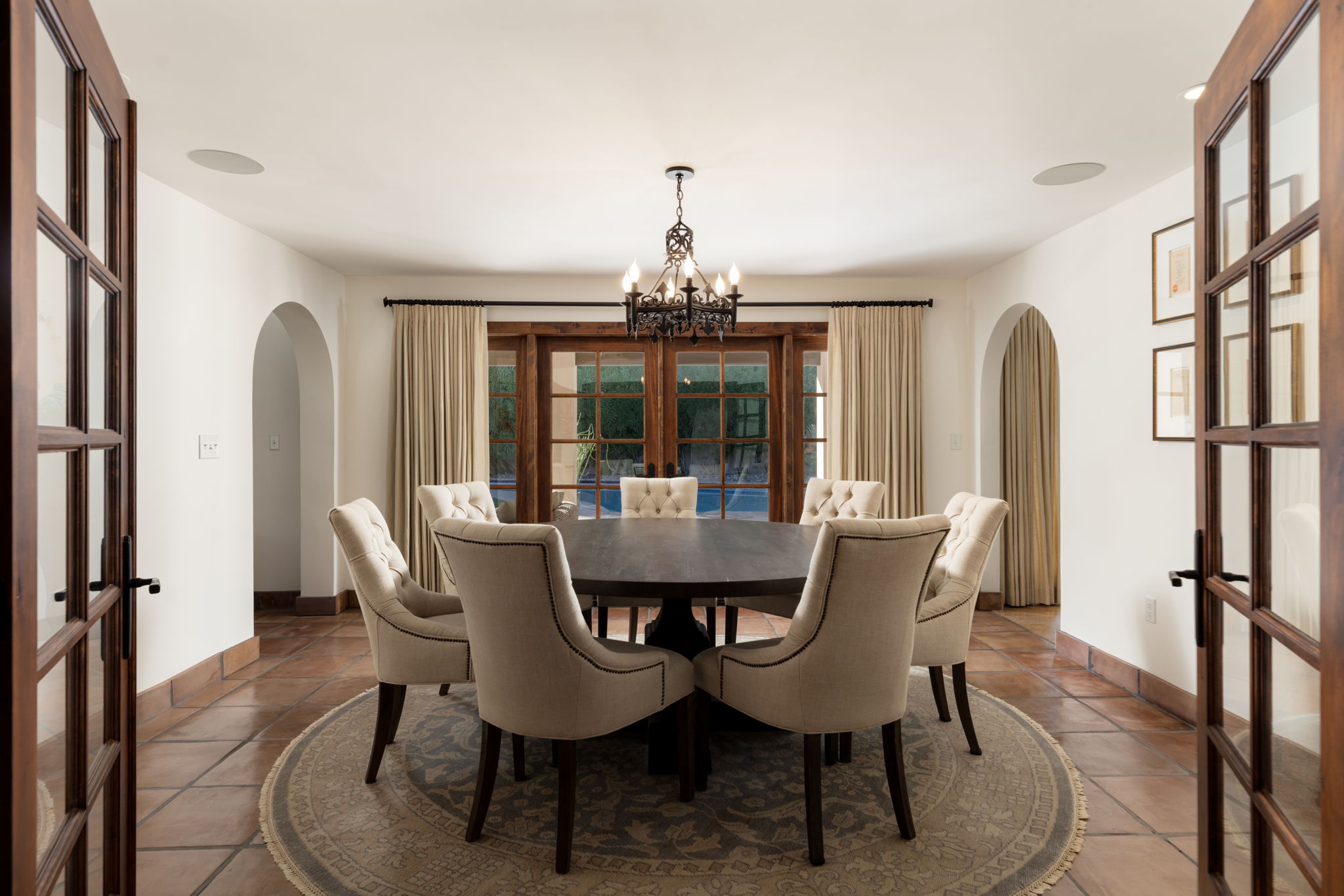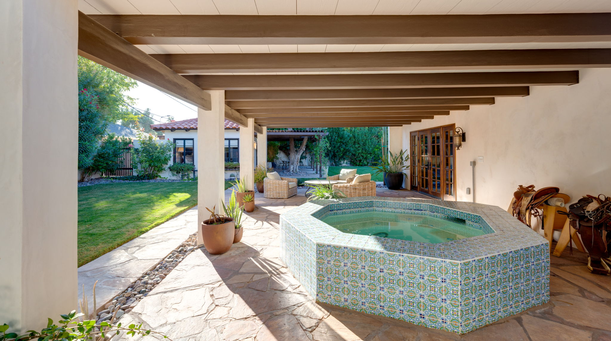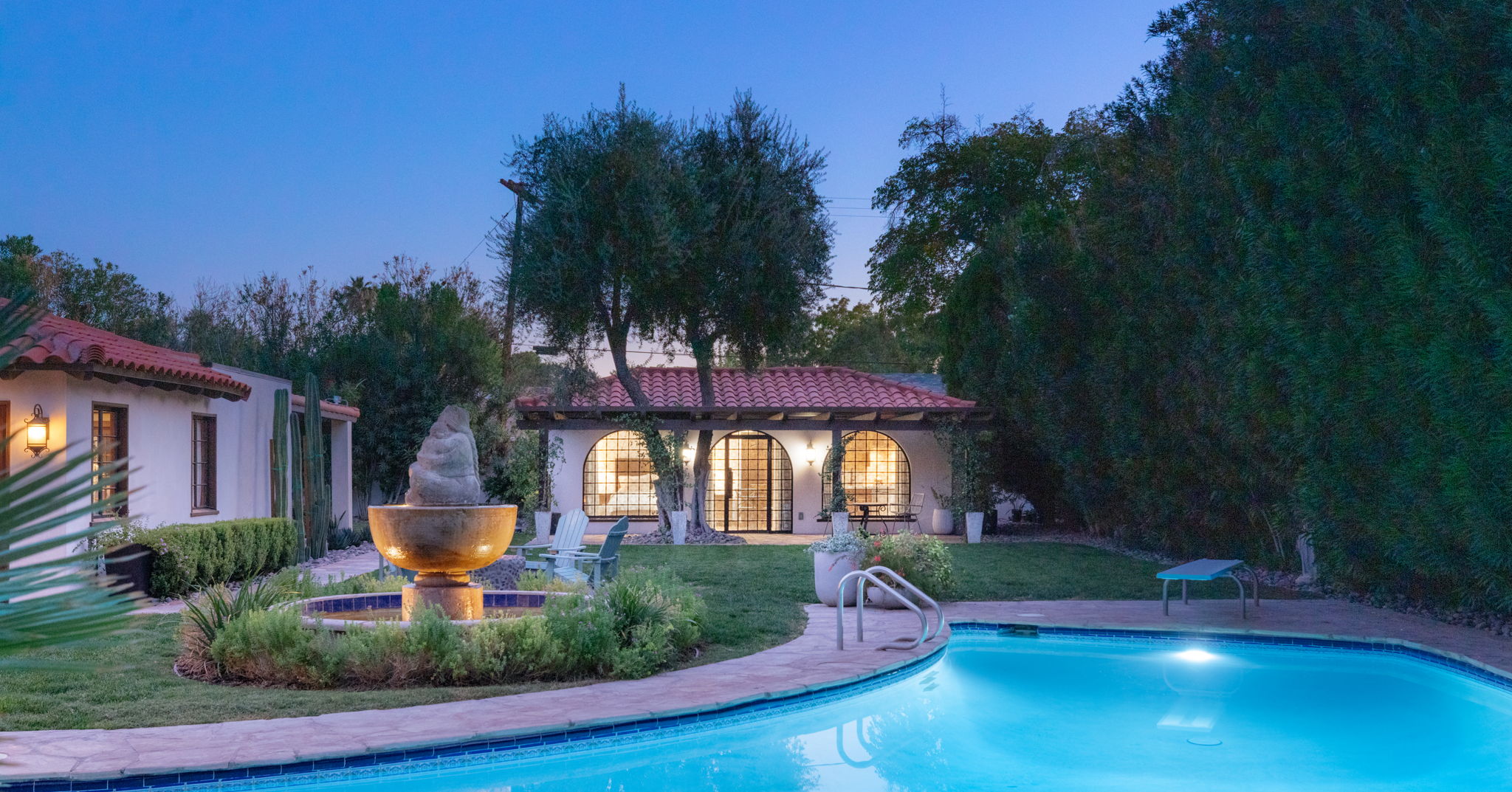 Steeped in provenance, the estate carries a rich and fascinating history. Once home to Jack Hooper, the trusted security chief to Howard Hughes, the residence later came into the ownership of the Bongiovi family, relatives of Jon Bon Jovi. Over the years, its grounds have quietly welcomed a number of notable figures, including Ronald Reagan—a testament to the property’s enduring appeal among those who value discretion, heritage, and refined living. This lineage contributes to an atmosphere that is both timeless and deeply rooted in the cultural fabric of Las Vegas. Following an extensive $2.5 million-plus restoration, the estate has been thoughtfully reimagined to honor its Spanish Revival origins while seamlessly integrating modern comforts and elevated design. Architectural details such as graceful arches, textured finishes, and curated materials evoke a sense of old-world craftsmanship, while updated systems and contemporary enhancements ensure effortless day-to-day living. The result is a home that feels both historically significant and entirely relevant for today’s lifestyle. Interior living spaces are defined by their scale, warmth, and fluidity. Natural light filters through thoughtfully placed openings, illuminating expansive gathering areas that invite both relaxation and connection. The layout lends itself to a variety of living arrangements, with well-separated bedroom suites offering privacy and flexibility for family, guests, or staff. Each space has been carefully considered to maintain architectural integrity while providing modern functionality. Outdoors, the estate transforms into a private sanctuary. Mature landscaping, lush greenery, and the generous acreage create a tranquil setting rarely found in Las Vegas. The grounds offer ample space for entertaining, recreation, or quiet reflection, with the pool house serving as a versatile extension of the home’s living environment. Whether hosting gatherings under the desert sky or enjoying peaceful moments surrounded by established trees and gardens, the outdoor experience is both intimate and expansive. Beyond its physical attributes, what truly sets 1450 Rancho Circle apart is its irreplaceable sense of place. In a city defined by constant evolution, Rancho Circle remains one of the few neighborhoods where history, scale, and authenticity converge. The combination of architectural character, notable ownership, and enduring land value creates a property that transcends typical residential offerings. This is more than a home—it is a legacy estate, offering a unique opportunity to own a meaningful piece of Las Vegas heritage. Timeless in design, rich in story, and unmatched in setting, 1450 Rancho Circle stands as one of the city’s most iconic and private residences—a place where past and present exist in perfect harmony.