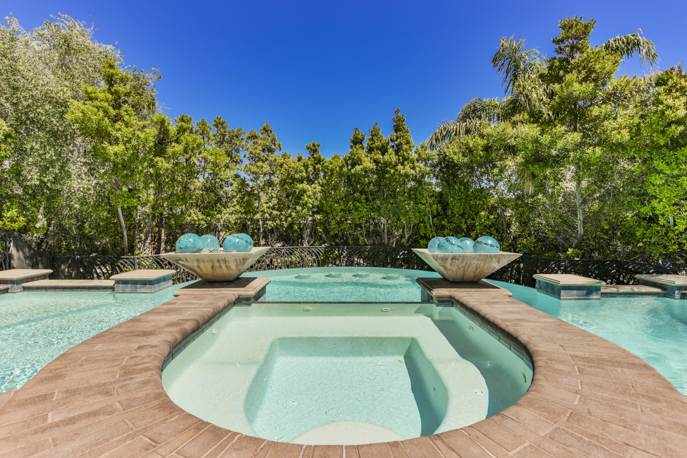 Five expansive bedrooms, all with ensuite baths, occupy the main house. The master suite and one additional bedroom and bath occupy the home's second level, along with an expansive deck that affords views of the entire valley. Three additional bedrooms with ensuite baths are on the main level. A separate apartment, with a bedroom, bath, and kitchen, features its own private entry. Among the multiple entertainment areas and bars are a home theater and home office, as well as a sprawling outdoor wet bar, kitchen, and patio that adjoin the pool and spa oasis. This residence also incorporates seven gas-burning fireplaces indoors and out and garage space for six vehicles. It features Creston automation and designer elements throughout.