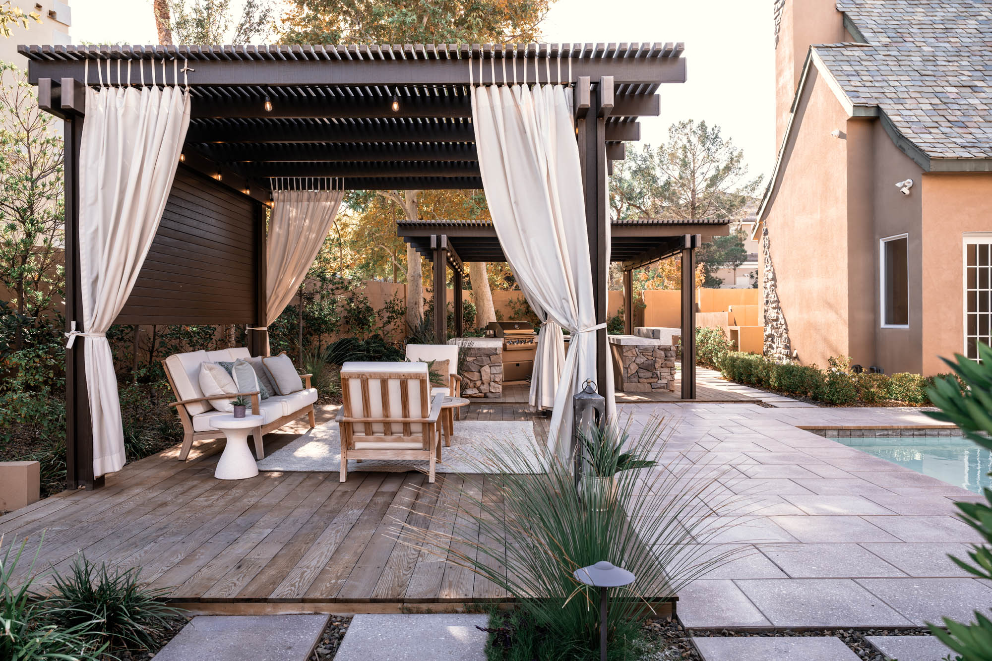 Located in the esteemed Tournament Hills of Summerlin, 1528 Champion Hills stands as a beacon of residential sophistication poised on a lush half-acre lot. This property has been completely transformed, both inside and out, to embody a timeless and transitional aesthetic. As you step inside, the warm and inviting ambiance will captivate you with soaring two-story ceilings and luxurious European oak wood flooring that extends throughout the home.