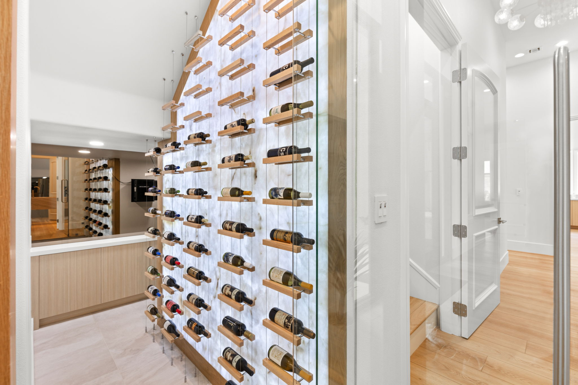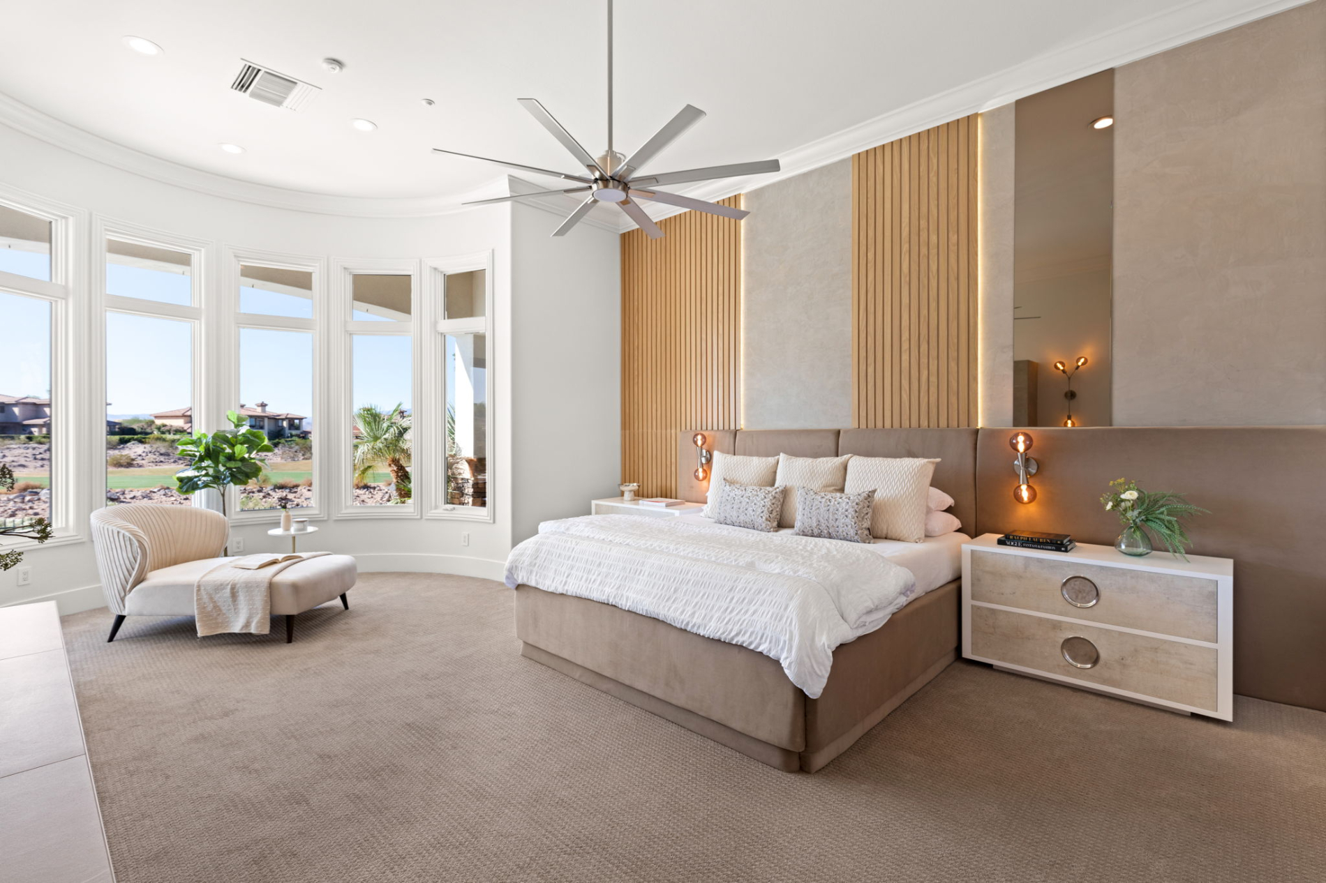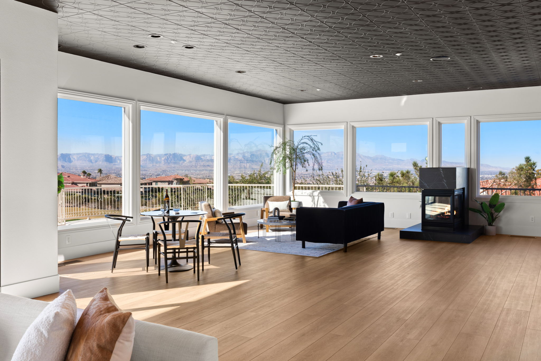As you approach this exquisite property, the first thing that will capture your attention is the captivating 180-degree view of the Las Vegas Strip and the majestic surrounding mountains. The view can be enjoyed from nearly every corner of the house, thanks to a remarkable 35-foot slider that seamlessly connects the interior to the outdoor living spaces. Whether you're entertaining guests or enjoying a quiet evening with your family, this feature ensures you're always surrounded by the breathtaking beauty of the Las Vegas skyline and the natural wonder of the mountains.
