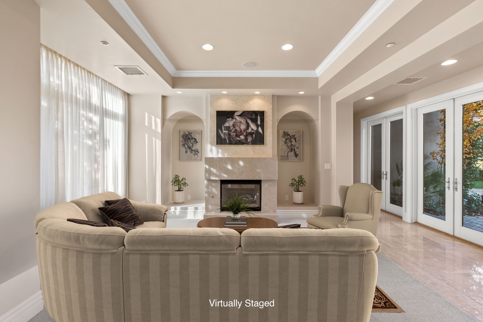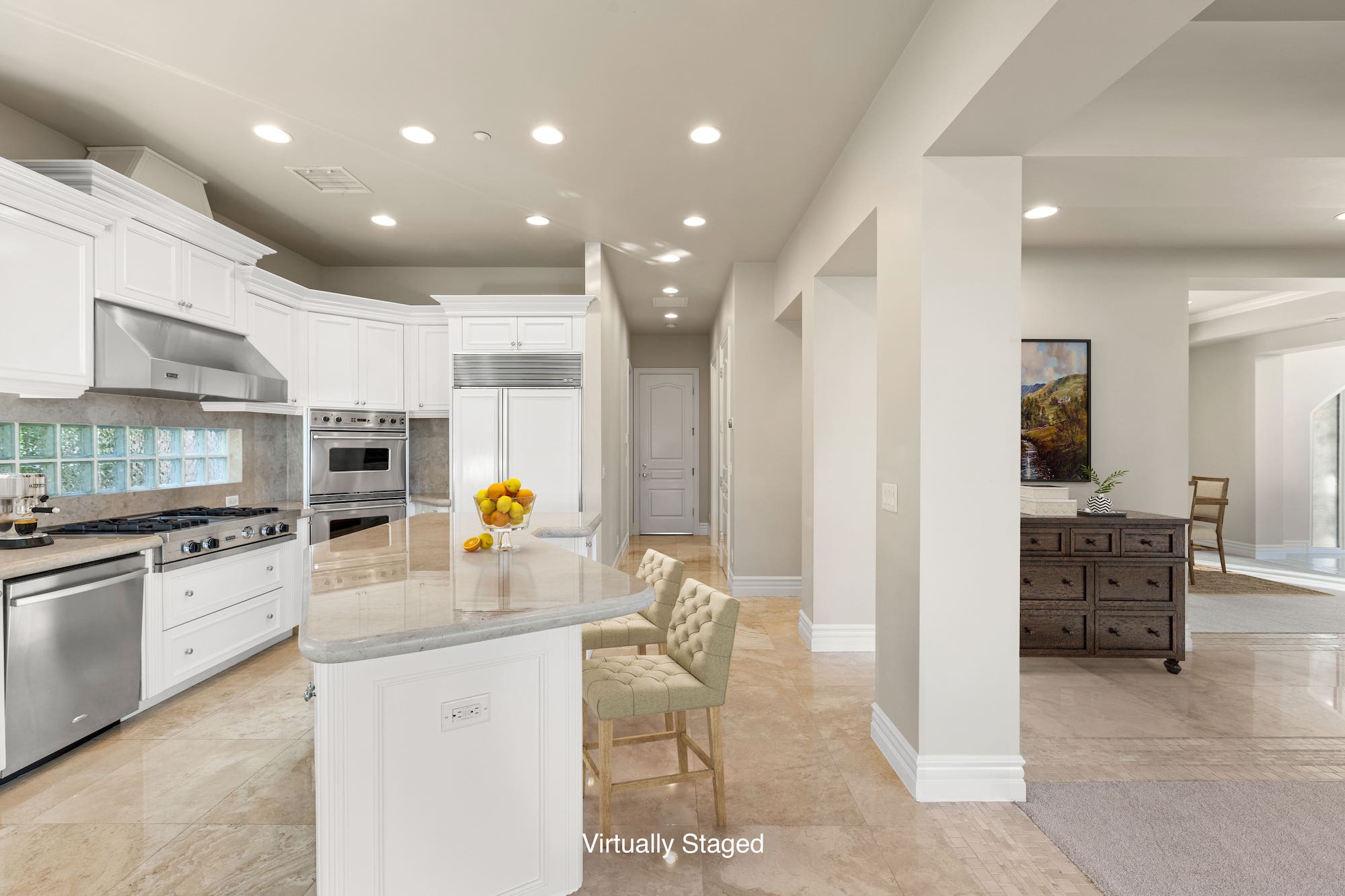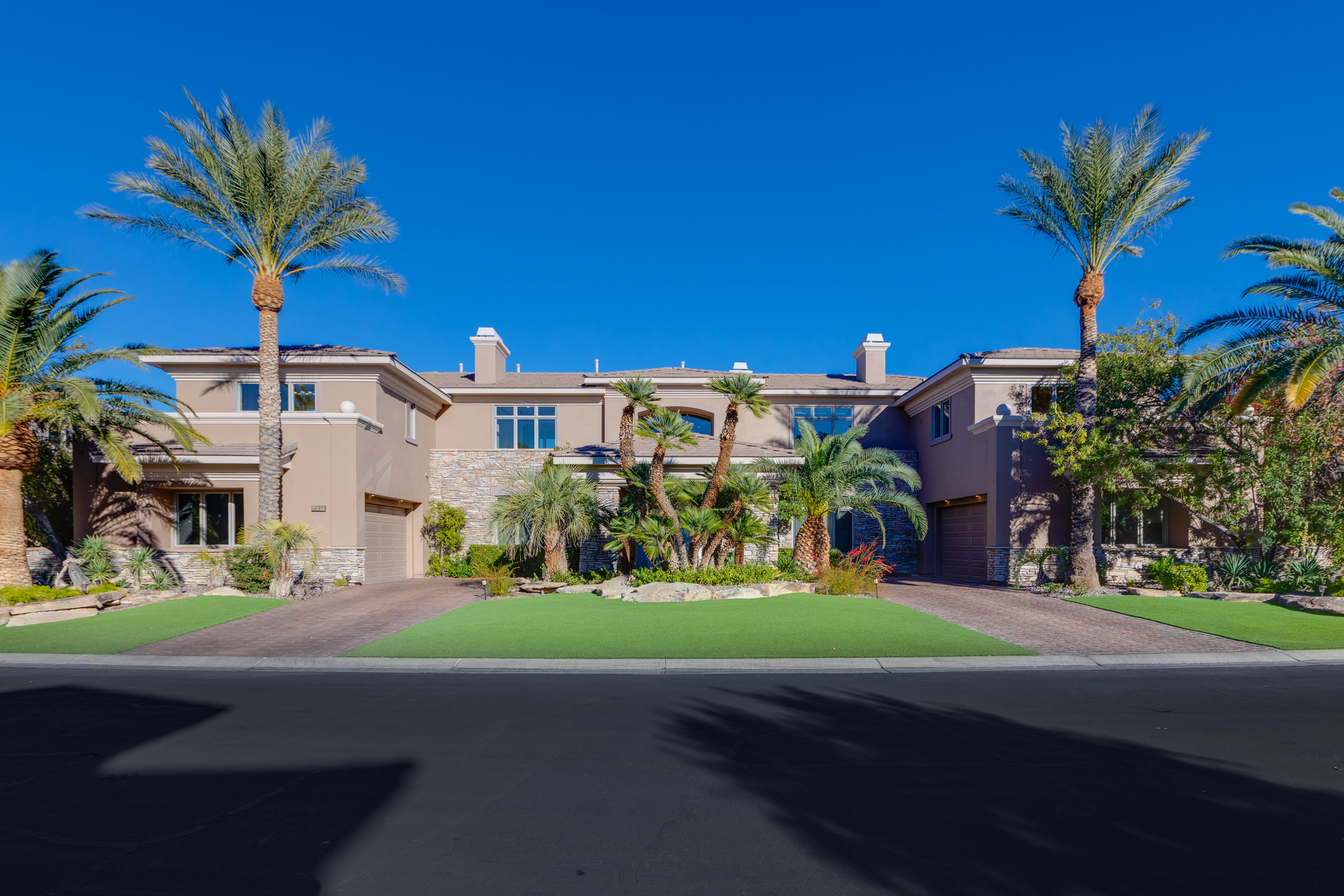 With over 5,500 square feet of living space, this property has five bedrooms, all with ensuite bathrooms and spacious closets. The home has an additional powder room on the first level. This property's one-of-a-kind layout gives homeowners two formal living spaces, both with hand-carved, Italian marble fireplaces, along with a formal dining room and a breakfast nook. The spacious, airy kitchen sports professional-grade appliances, a curved kitchen island, recessed lighting. On the second level, you will find additional entertainment space--great for a media room or a game room. The two wings of the upper level are connected by a catwalk, overlooking the entire home. Going to the backyard, you will find meticulous landscaping, a five-star pool and hot tub, and a patio overlooking the golf course. Luxurious resort living as all right here in this phenomenal home!