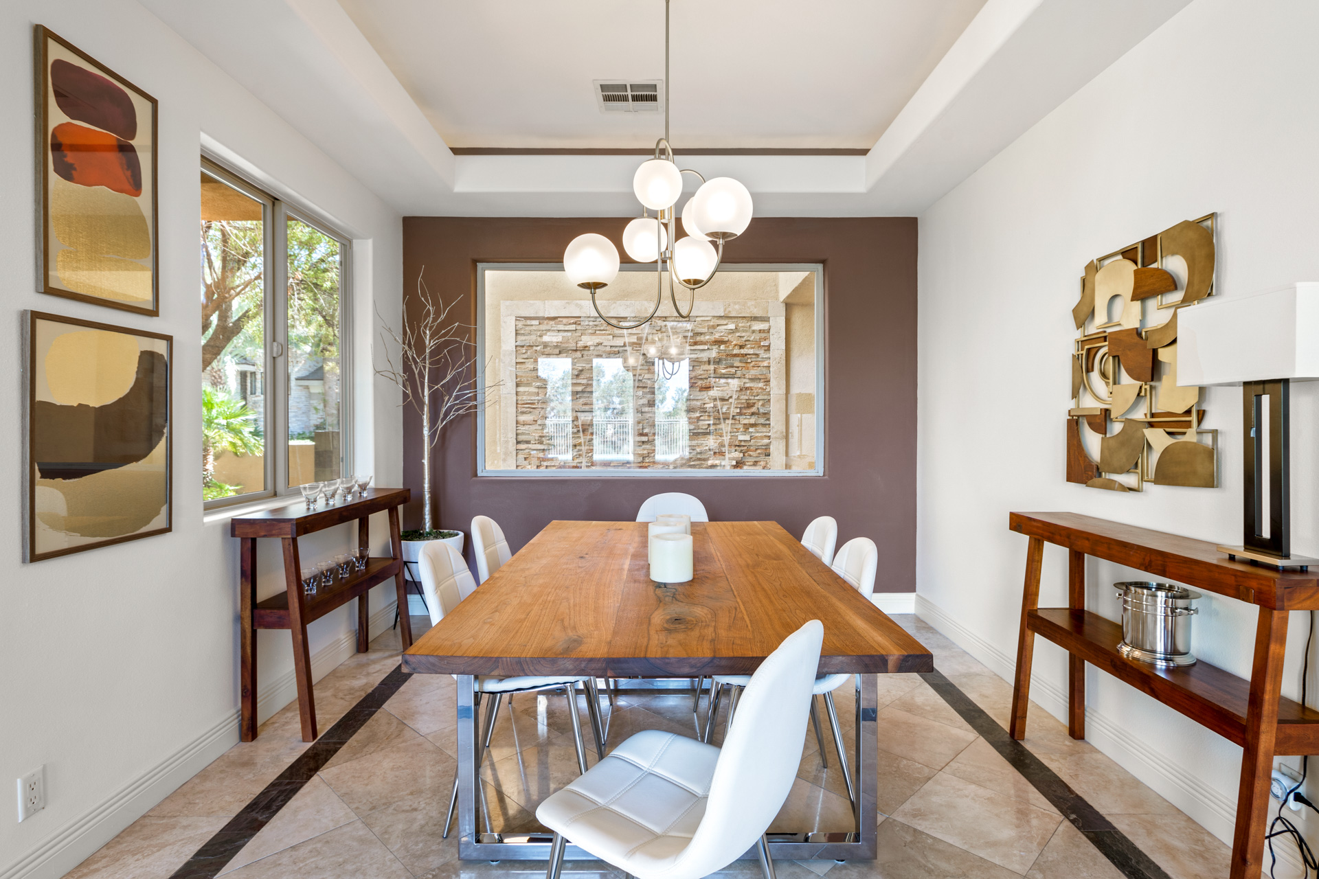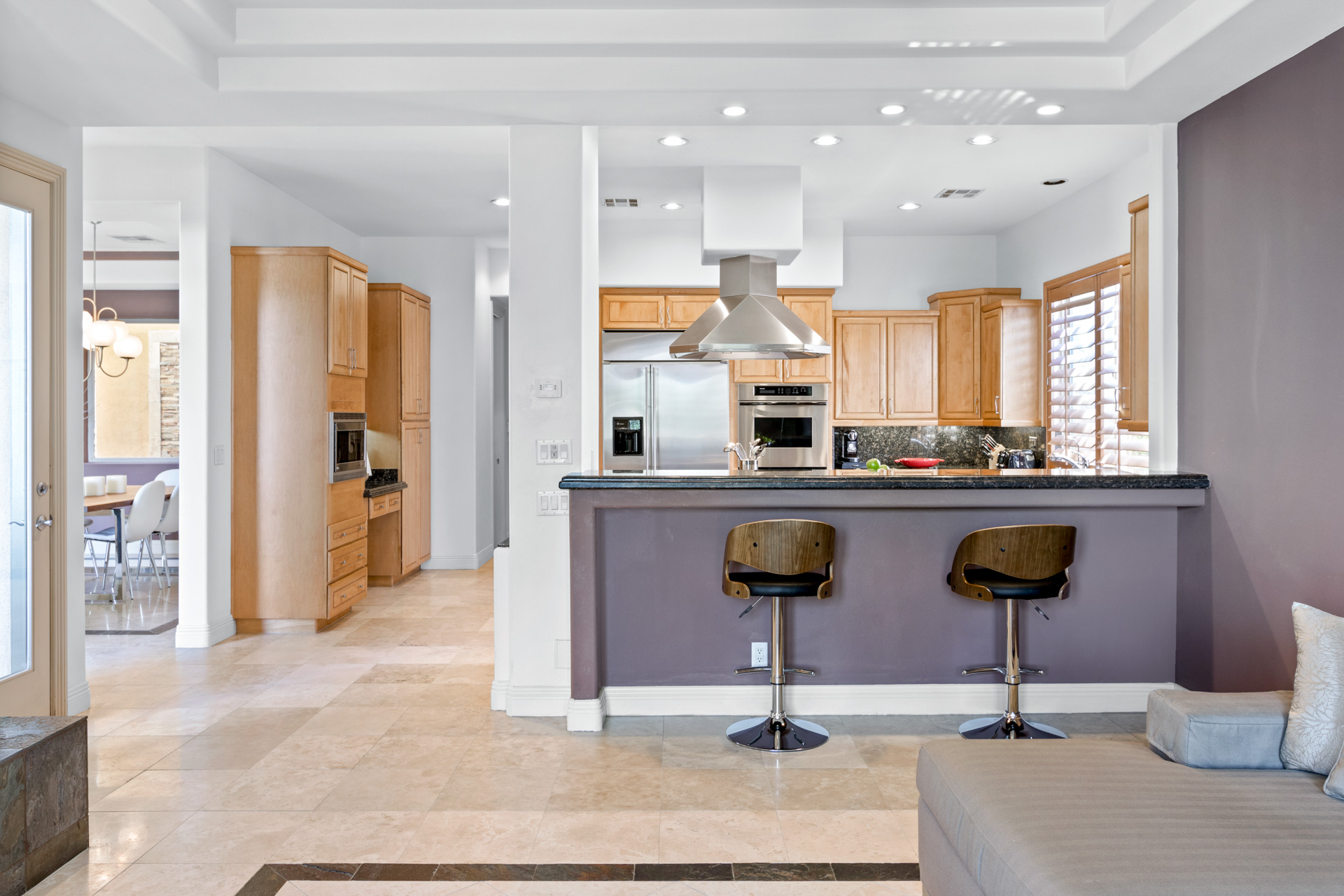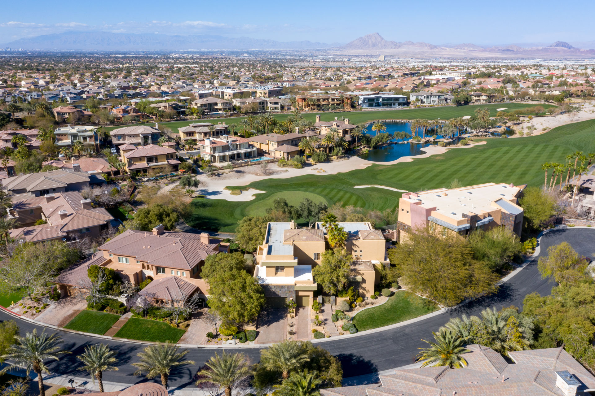 This beautiful two-story home packs a lot of living space into its floor plan with five bedrooms and five and a half baths. Take in the fabulous golf course views looking down the fairway toward the lake. After passing the tranquil water feature in the courtyard, enter the sunlight-filled entry leading to a sitting room with a wet bar featuring two-story ceilings.