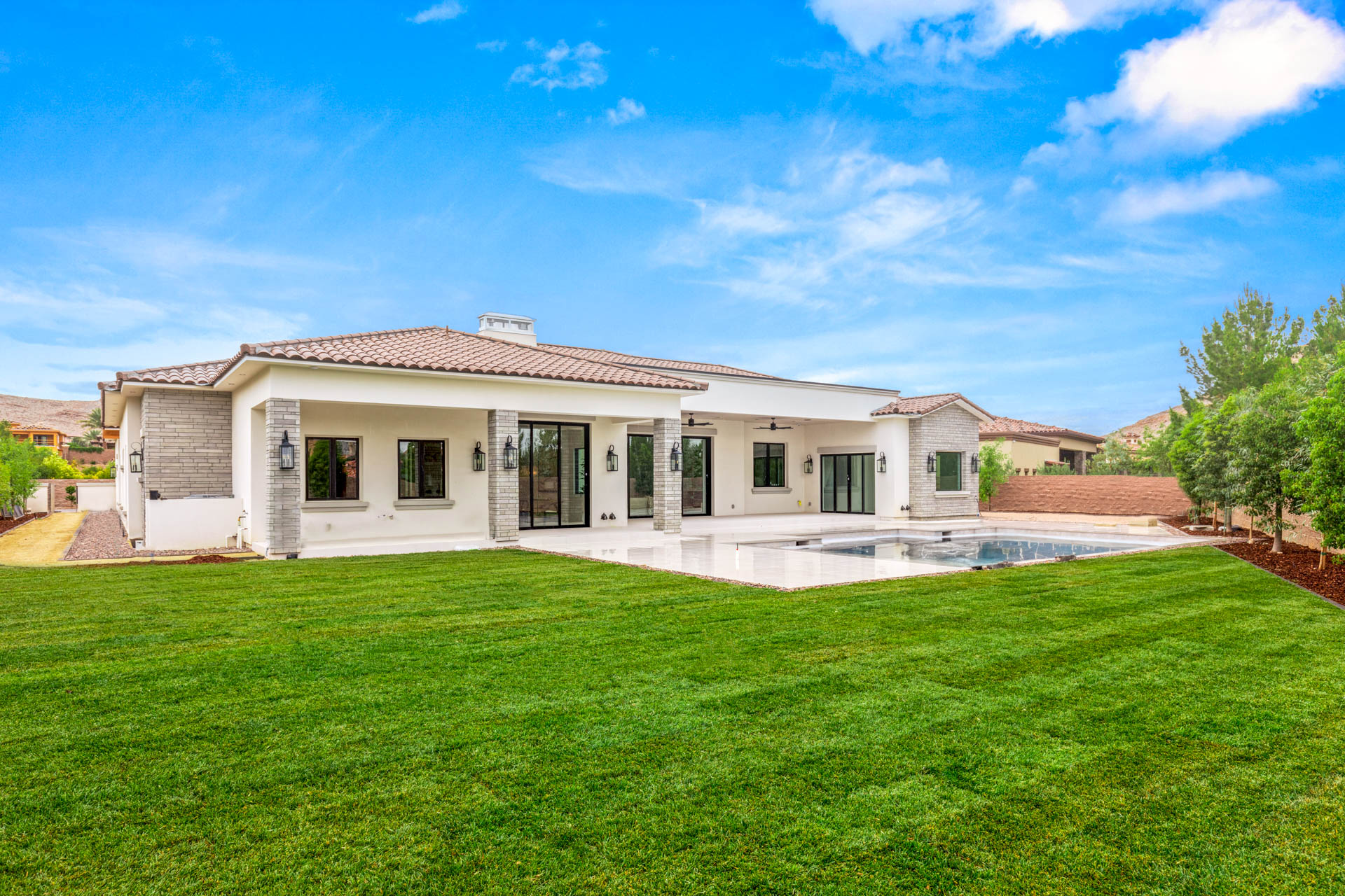 Stunning new construction home. Modern mediterranean style in coveted Vintage Valley. Exceptional private homesite on a cul-de-sac provides an oversized yard with large pool/spa and pool bath.