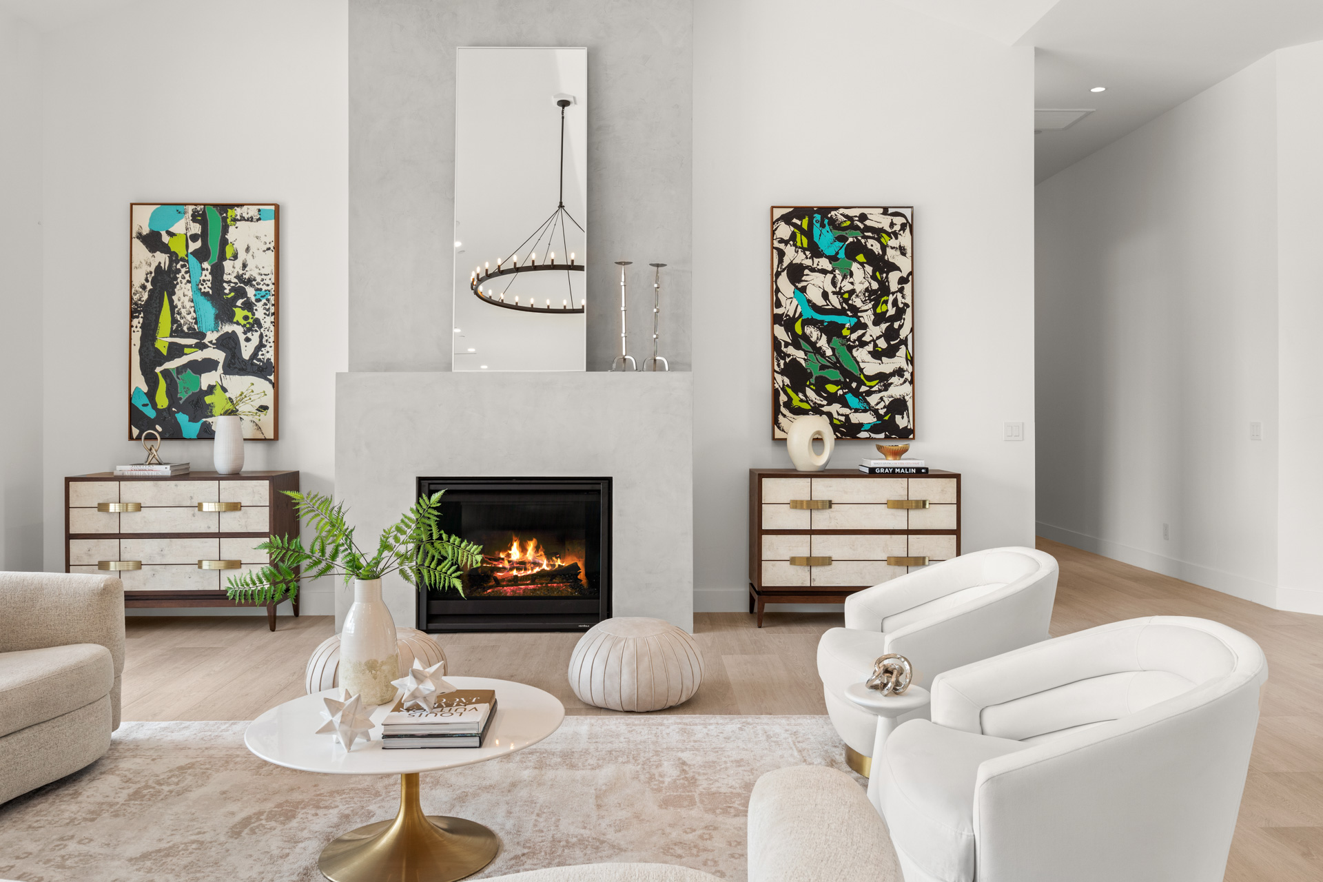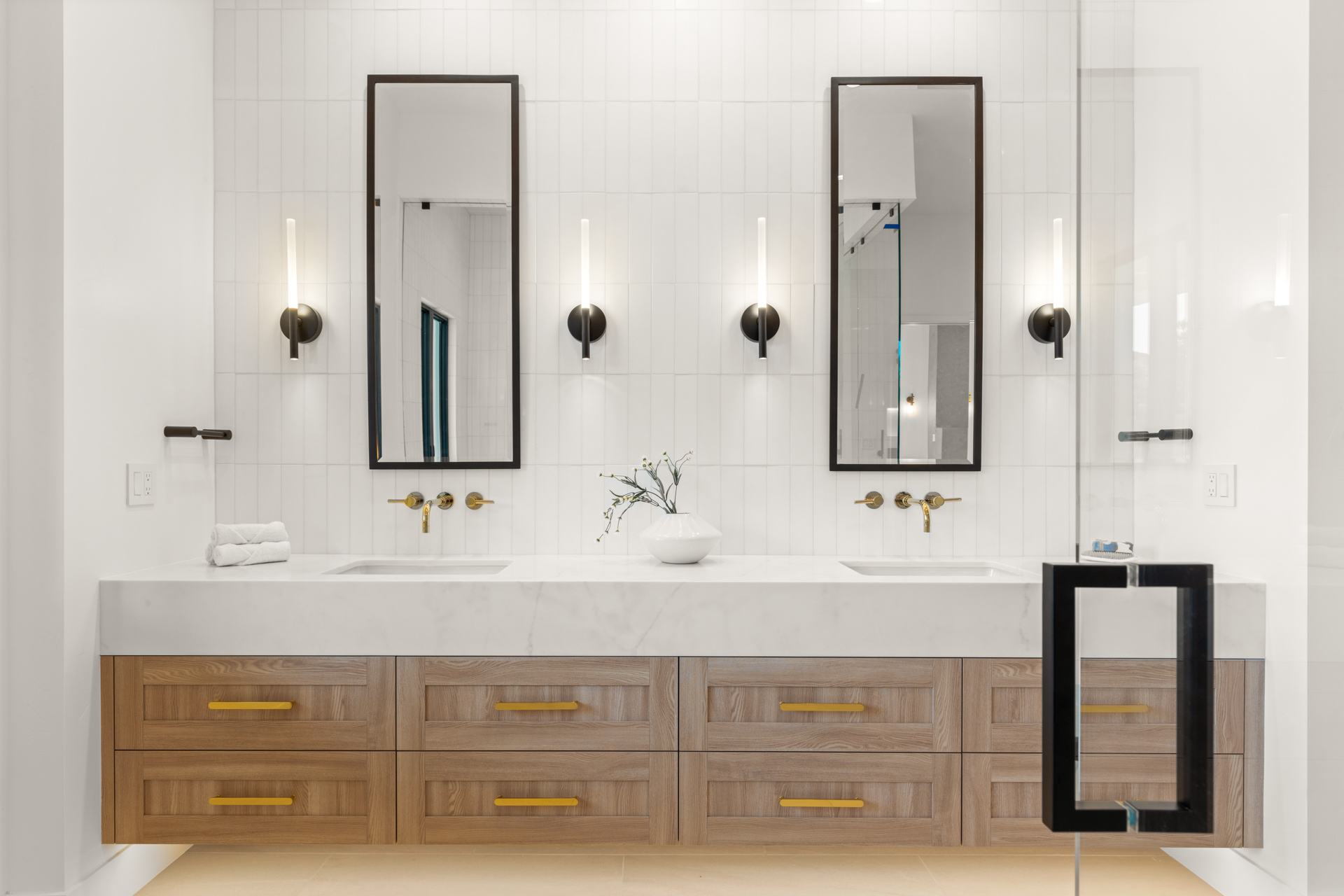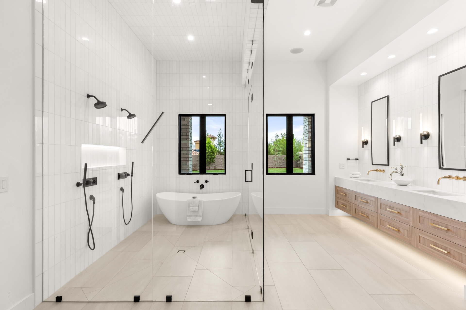 Metal pivot entrance door opens to great room with 17' disappearing glass doors. 4 en suite bedrooms plus office. Amazing kitchen with Jenn Air Pro appliance package. Fabulous master retreat ā wet room with steam shower, soaking tub, closet with storage island with built-in washer/dryer. Lime-washed fireplaces. Alabaster pendants. Porcelain wood-look floors. Laundry room with dog wash. Fully integrated smart home (lighting, sound, cameras, pool).