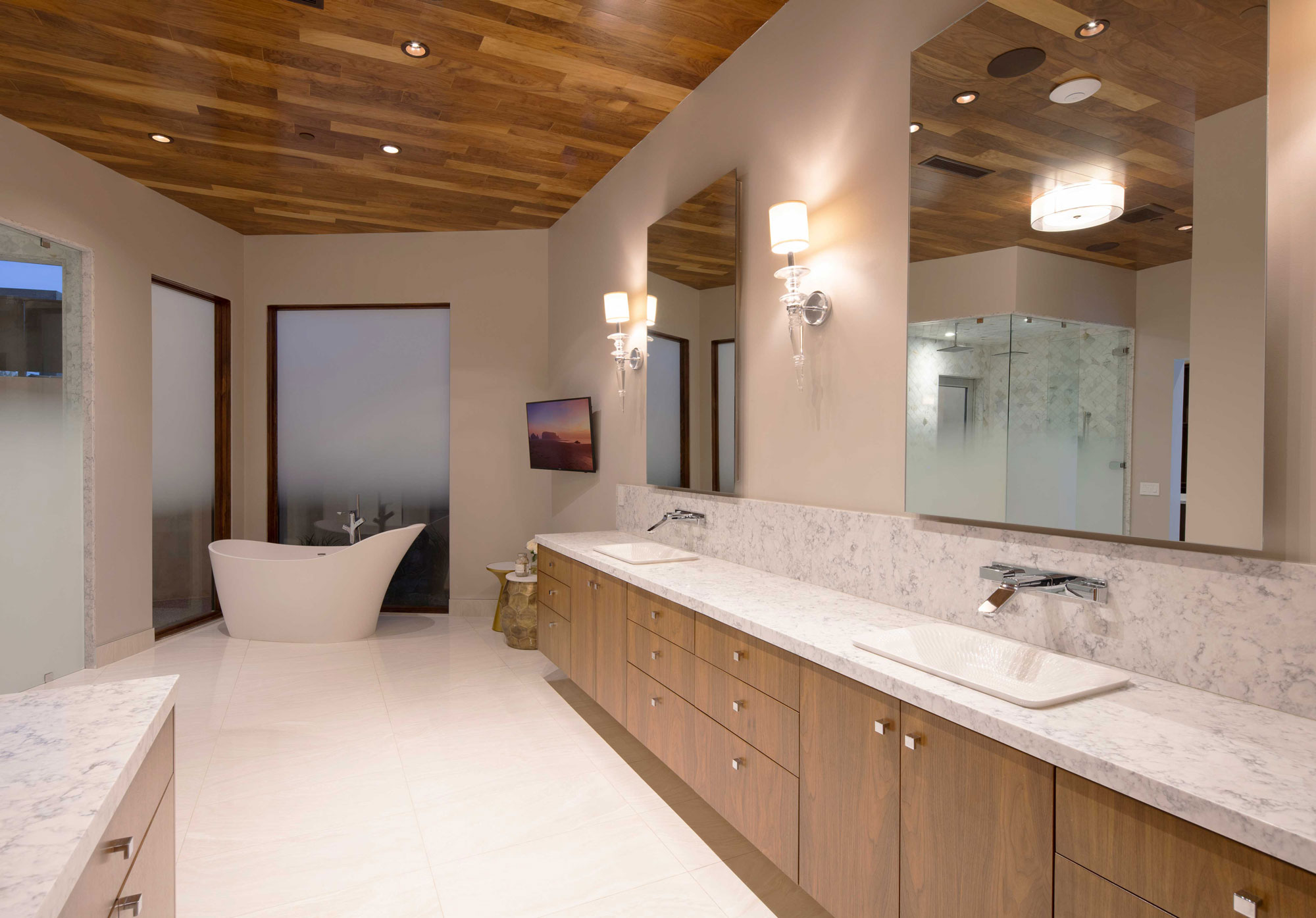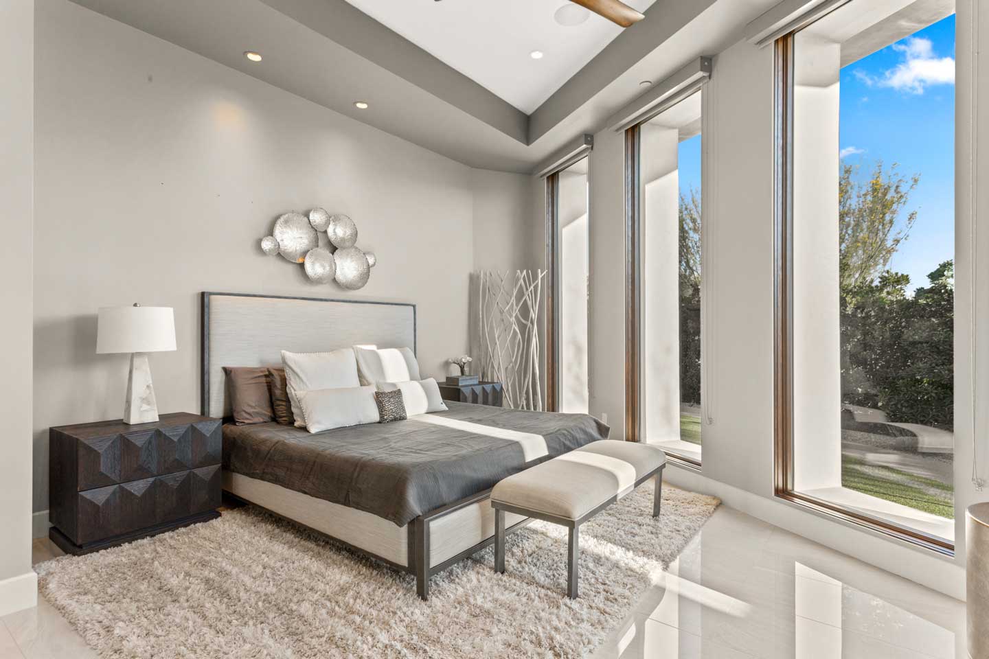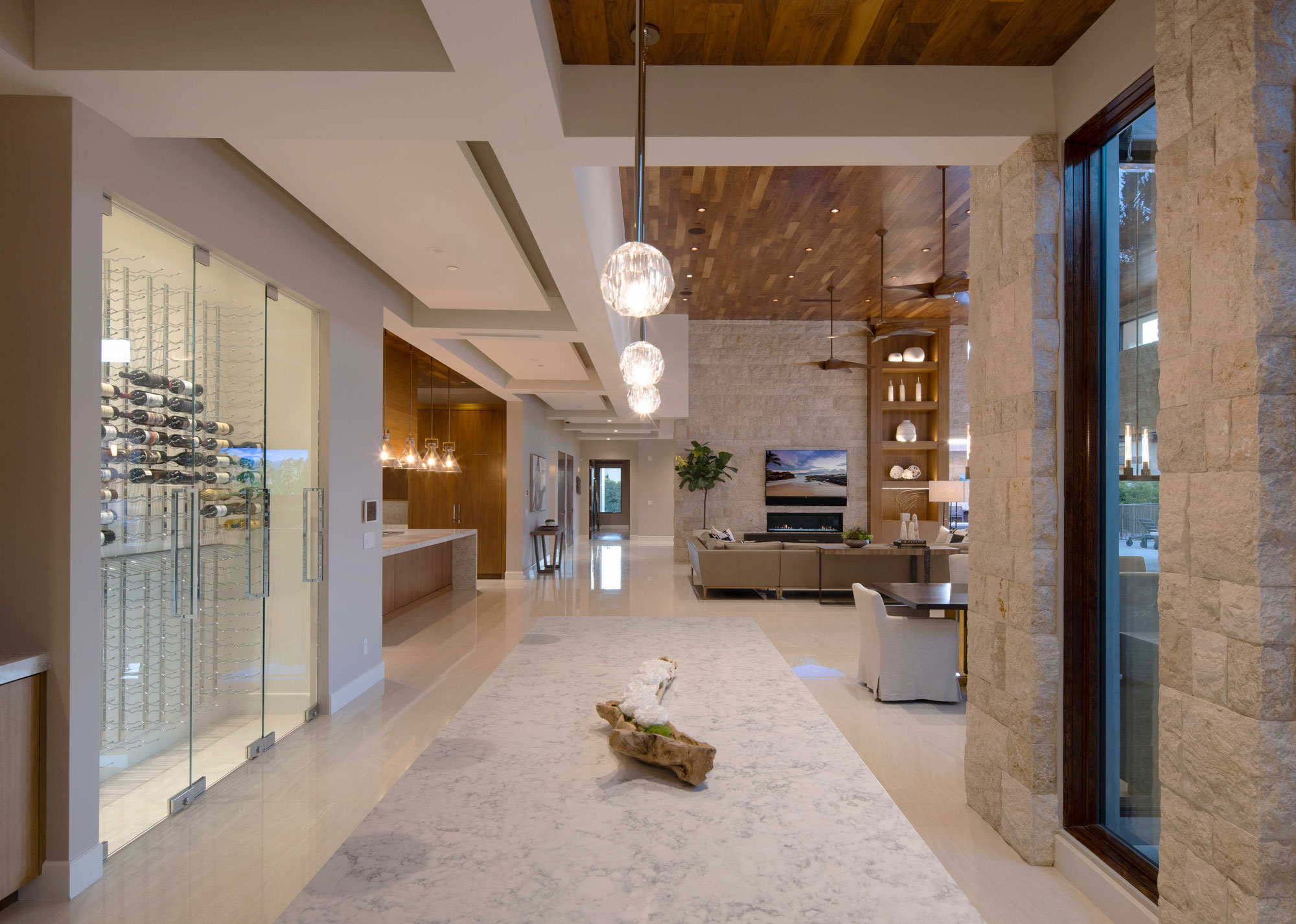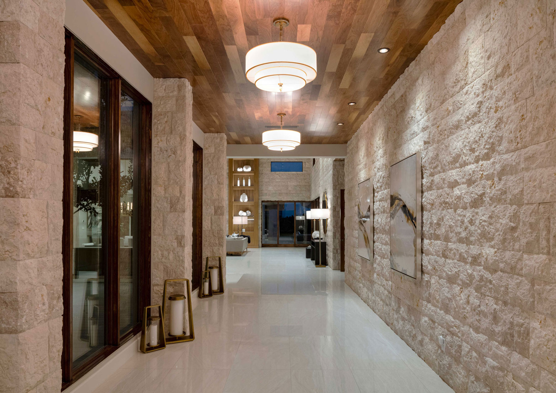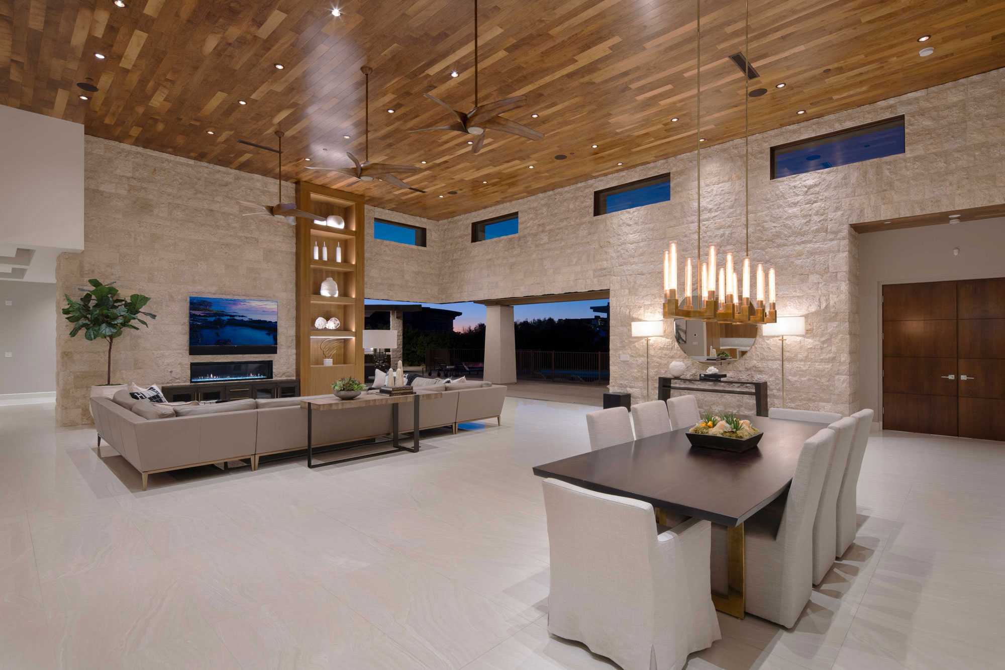Step inside 16 Flying Cloud and experience luxury living at its finest. Frank Lloyd Wright-inspired, this exceptional 9,930 square foot property sits on nearly an acre behind the guarded gates of the highly acclaimed Azure neighborhood in The Ridges. A grand entry foyer invites you down a corridor of Jerusalem stone walls, wood-accented ceilings, and floor to ceiling windows with views of the beautifully landscaped courtyard. The great room is the heart of the home and exudes both grandeur and warmth with its elevated ceilings, timeless finishes, and open concept.