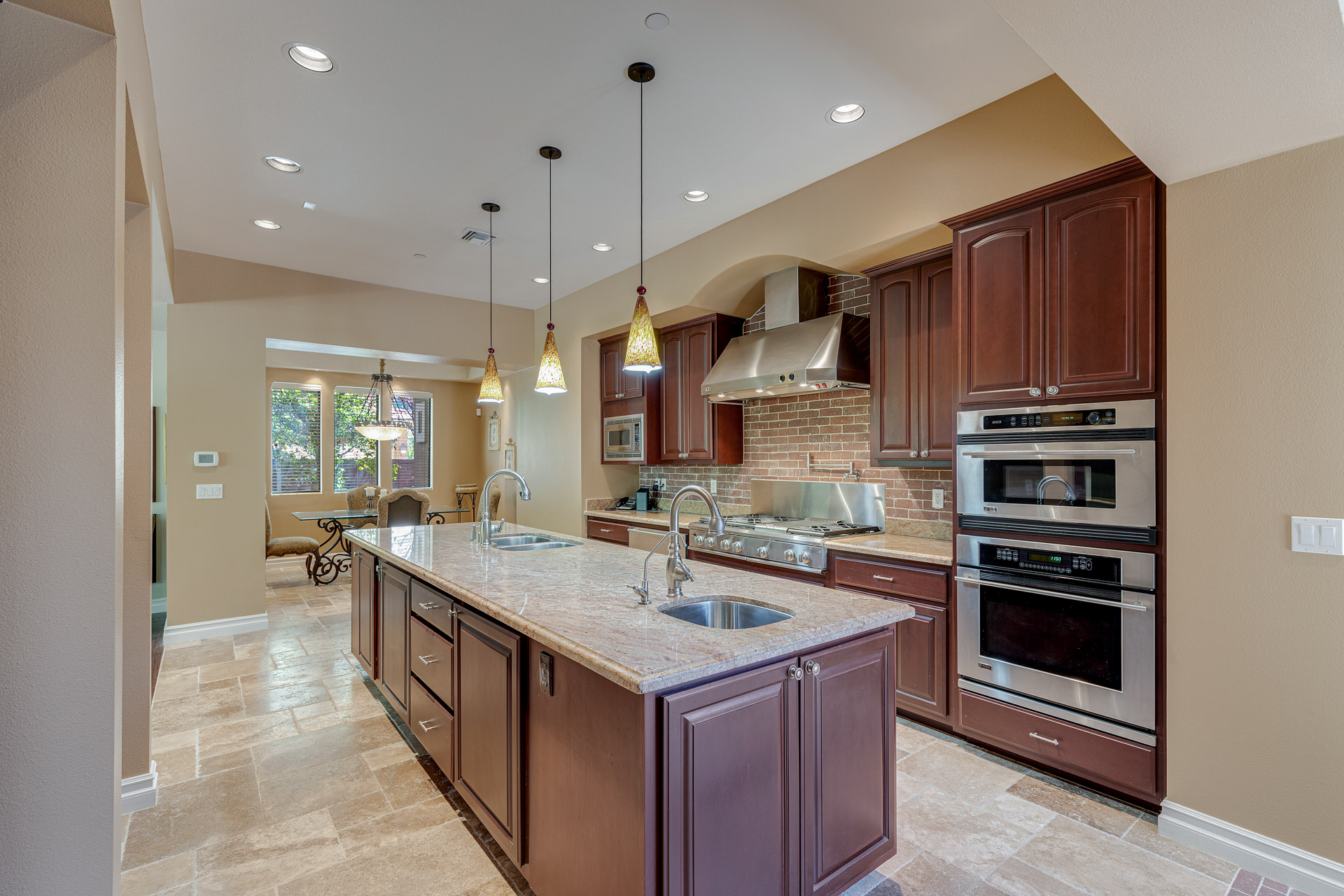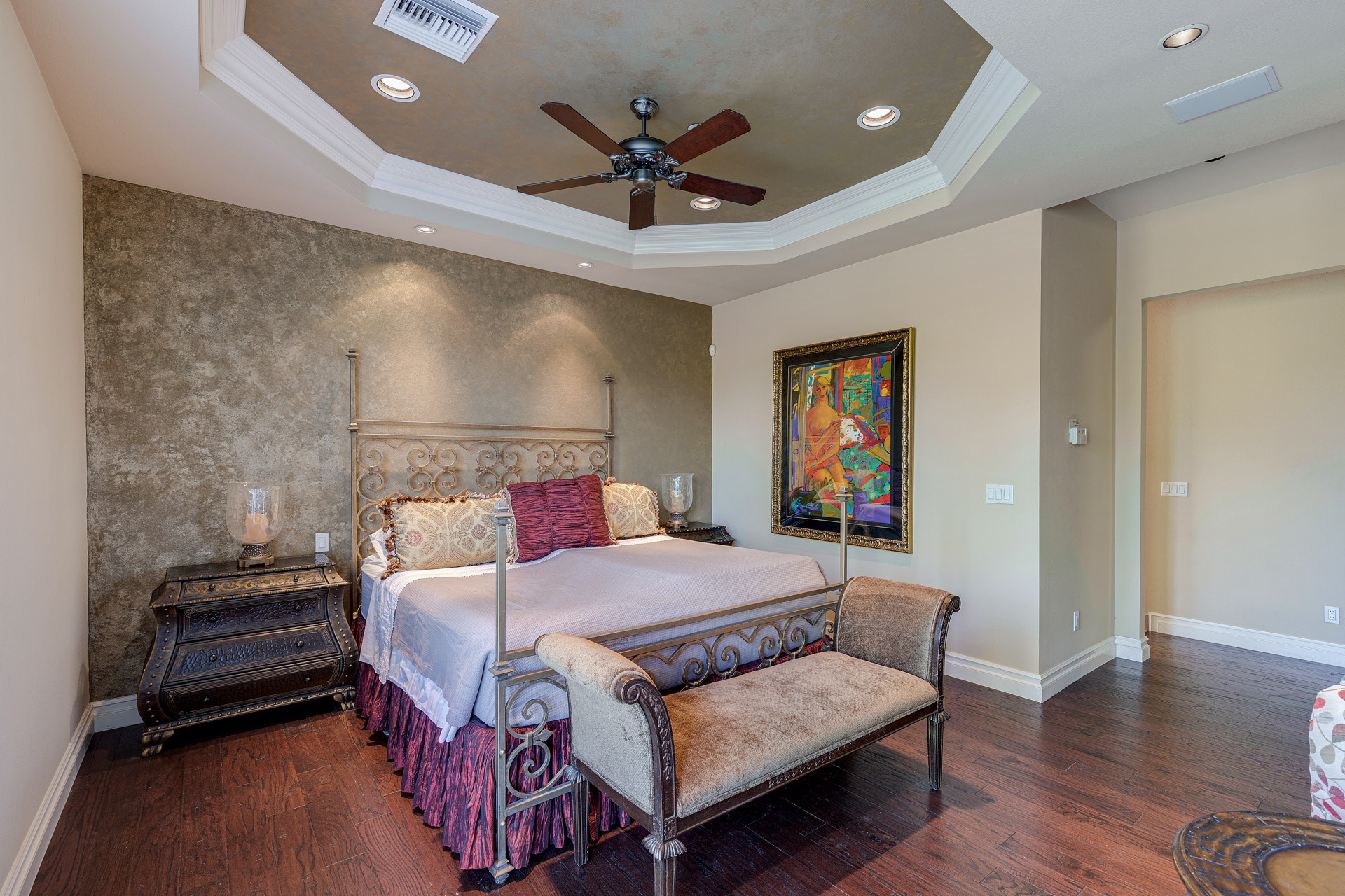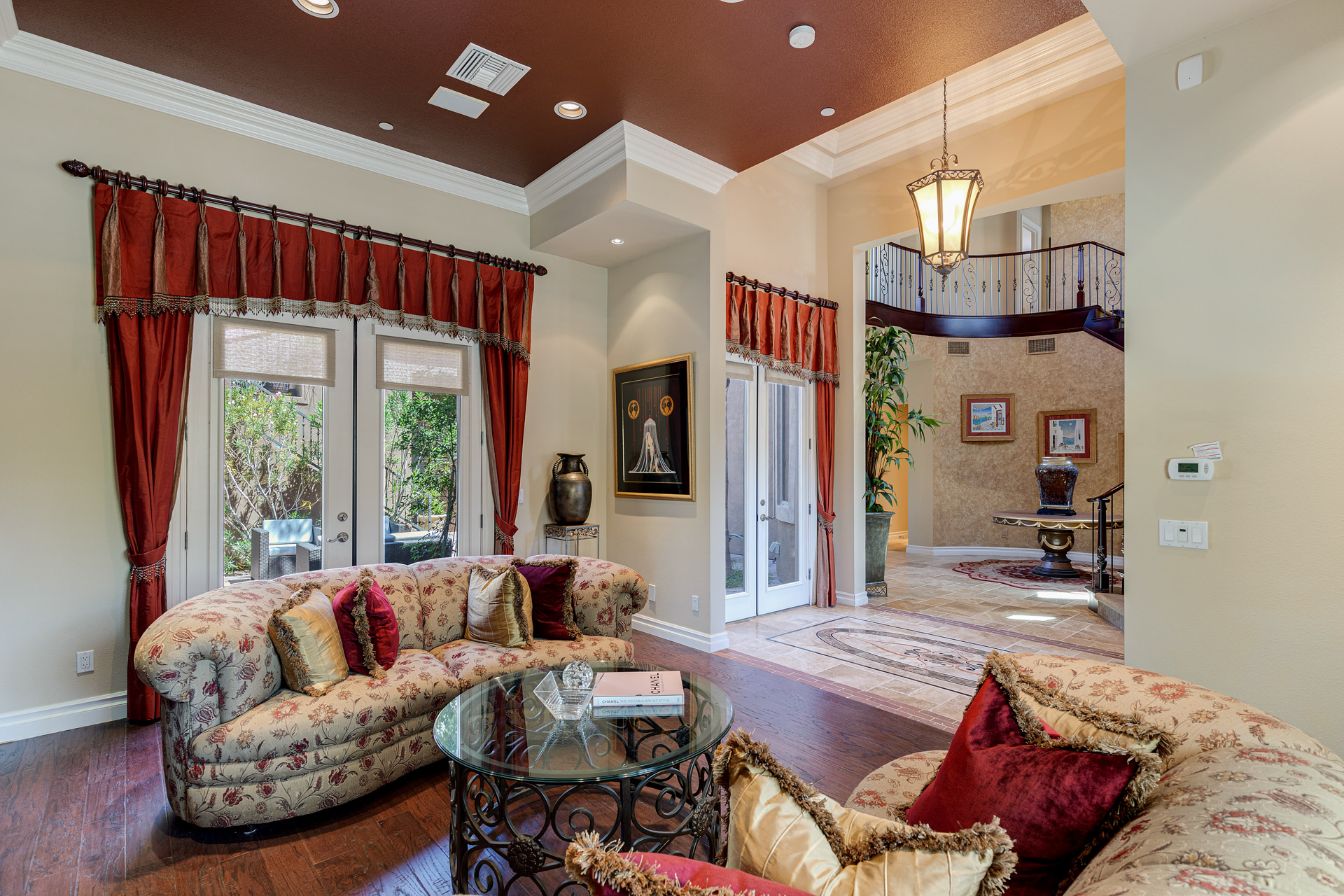 Total actual square footage of the home is 4,910. Stunning custom home in guard-gated MacDonald Ranch Country Club. The main home boasts 4 bedrooms, a theatre, formal dining room, library, chef's kitchen, laundry room upstairs, wet bar, wine cellar, travertine and real wood floors, and a stunning staircase in the grand foyer.
