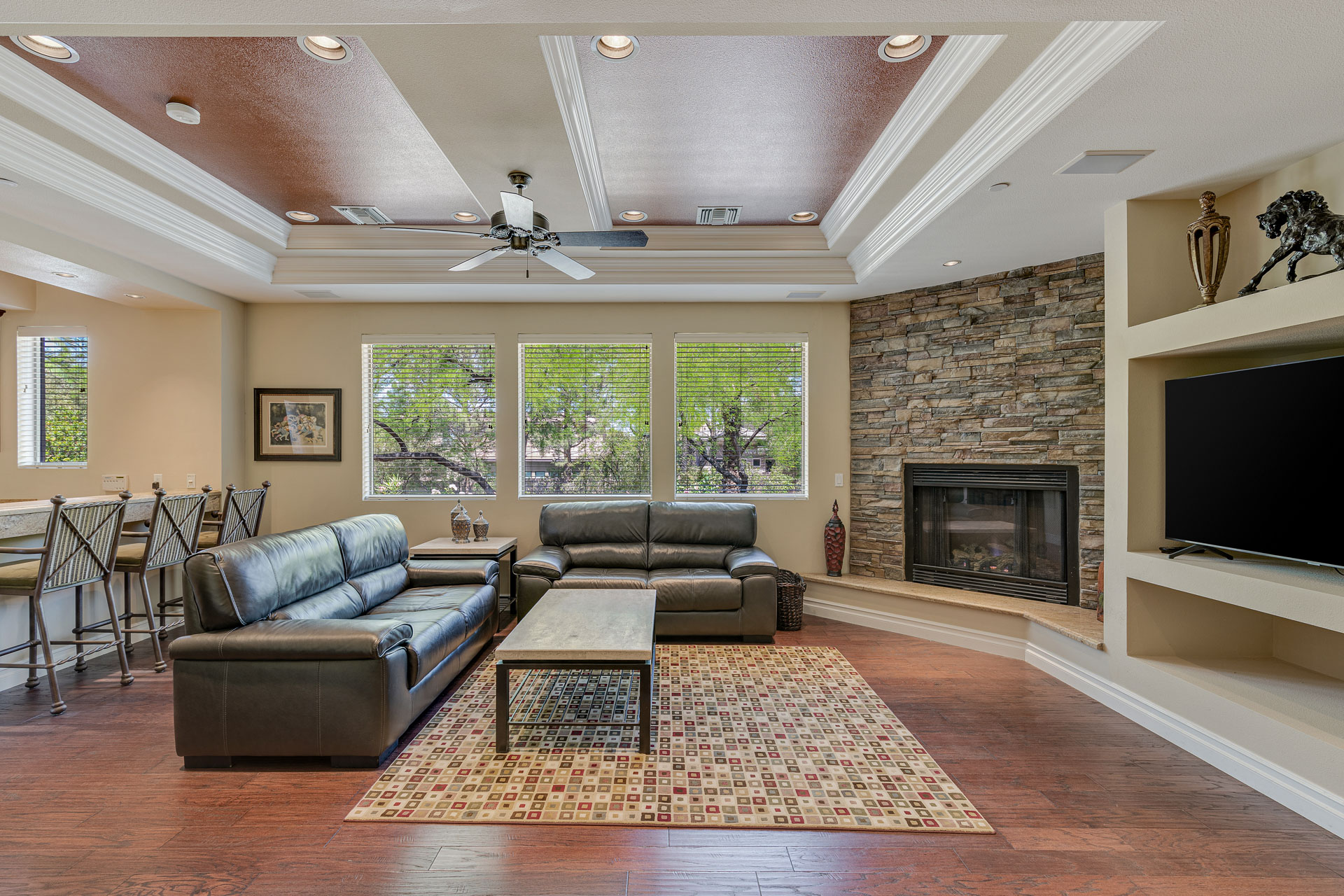 Connecting the home with the dual attached casitas is an open-air breezeway with a fireplace overlooking a tranquil courtyard and lush landscaping. This is a home in impeccable condition for the most discerning of buyers. One owner, and has never been on the market!