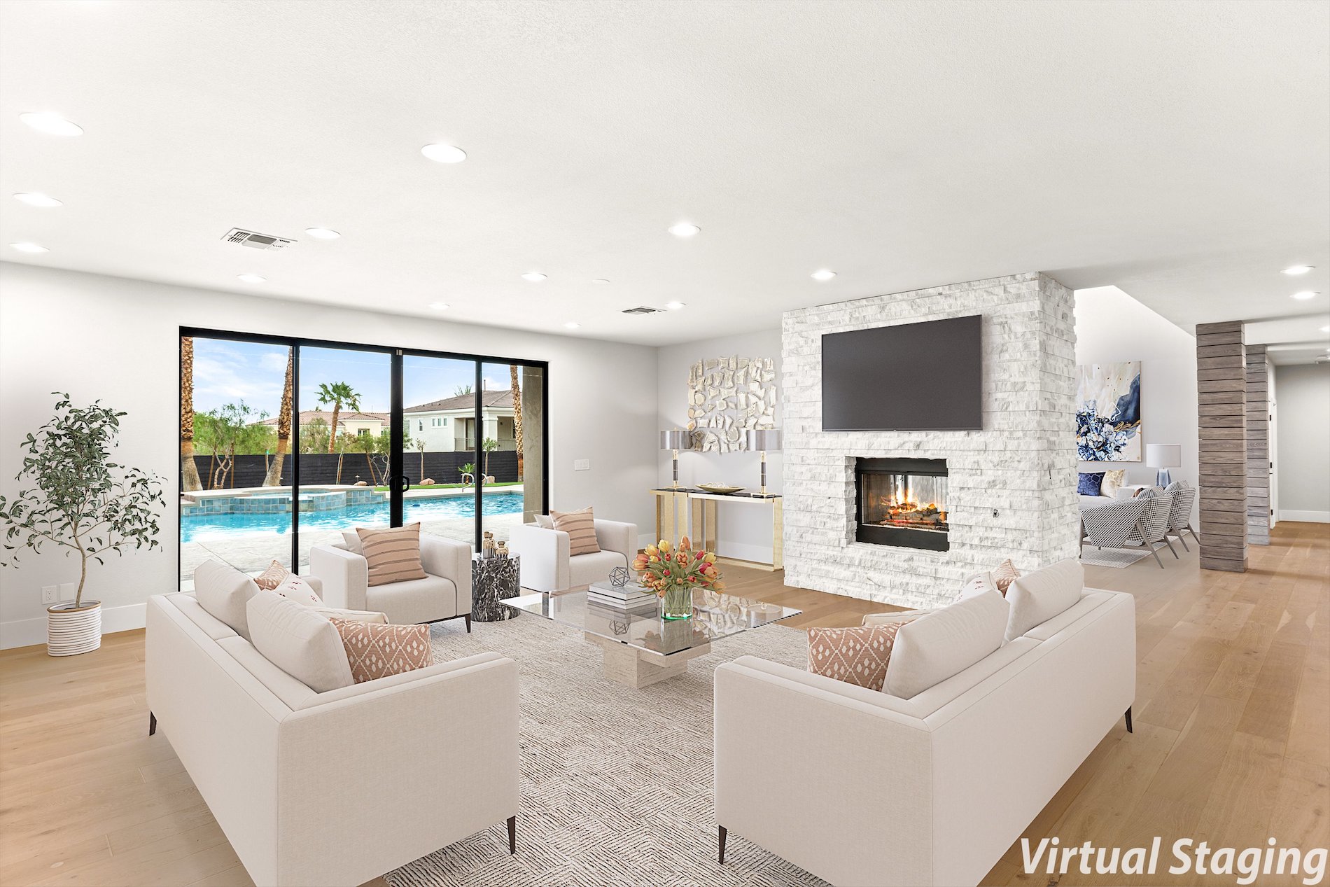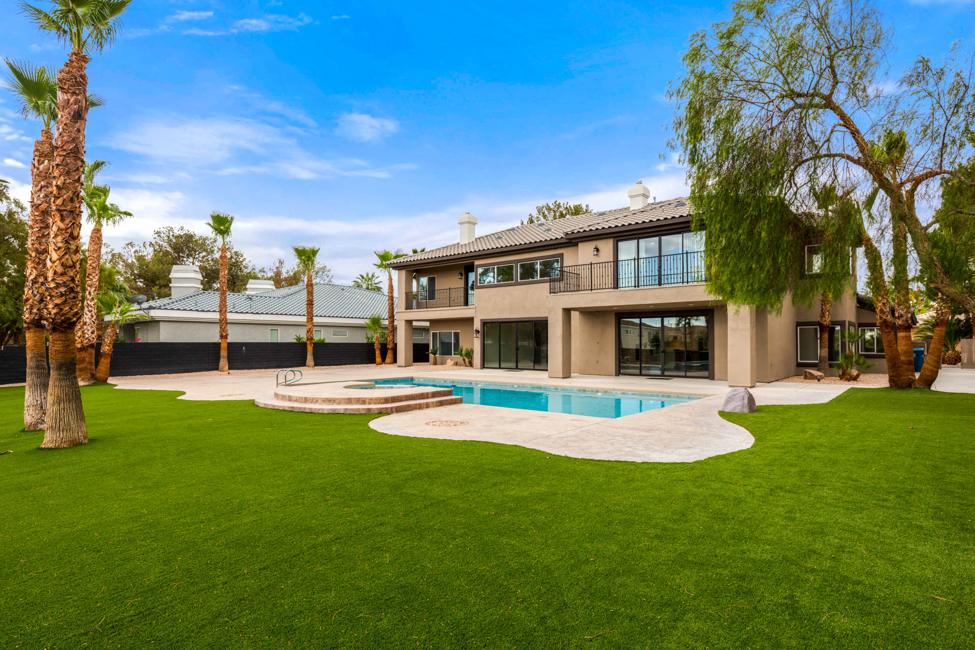 A stunning estate in the exclusive Ten Oaks community in Las Vegas. Situated on nearly .5 acres, this residence has been meticulously renovated, blending timeless elegance with a contemporary twist.