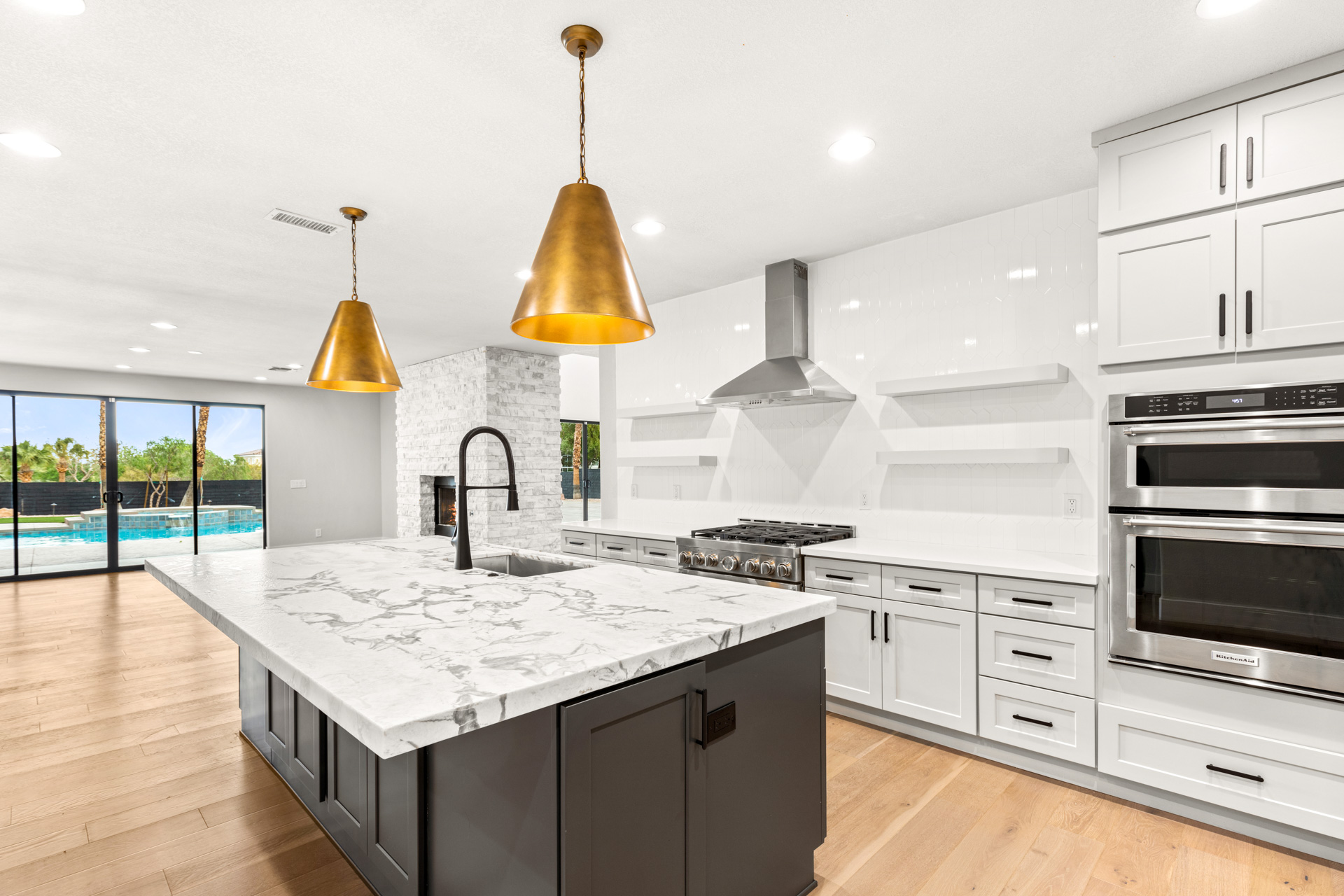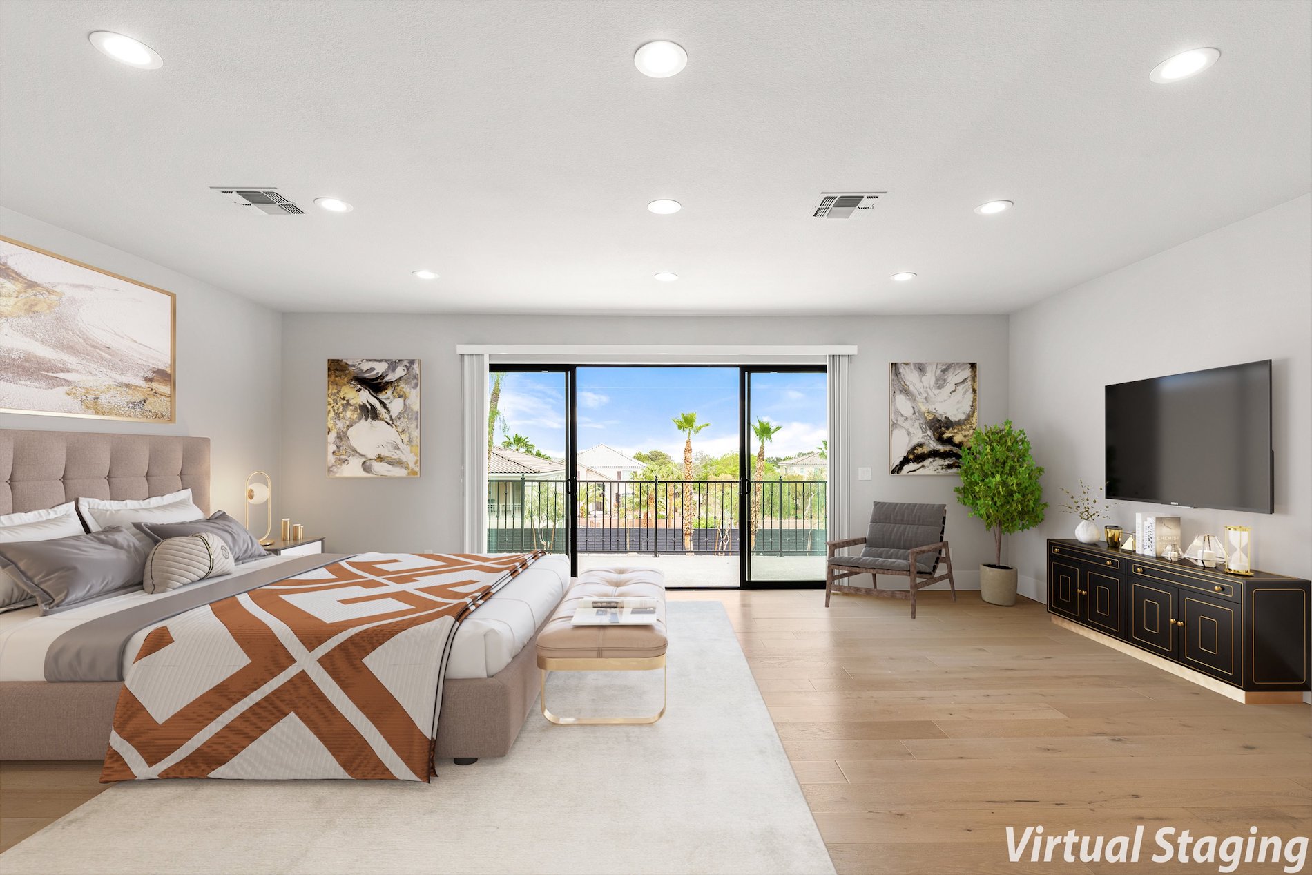 A grand entrance, accentuated by soaring double-high ceilings invites you into a world of luxury and comfort. The home is finished with wood flooring throughout. Nothing was left untouched as the property also features new custom cabinetry, appliances, countertops, modern sliding doors and designer light fixtures.