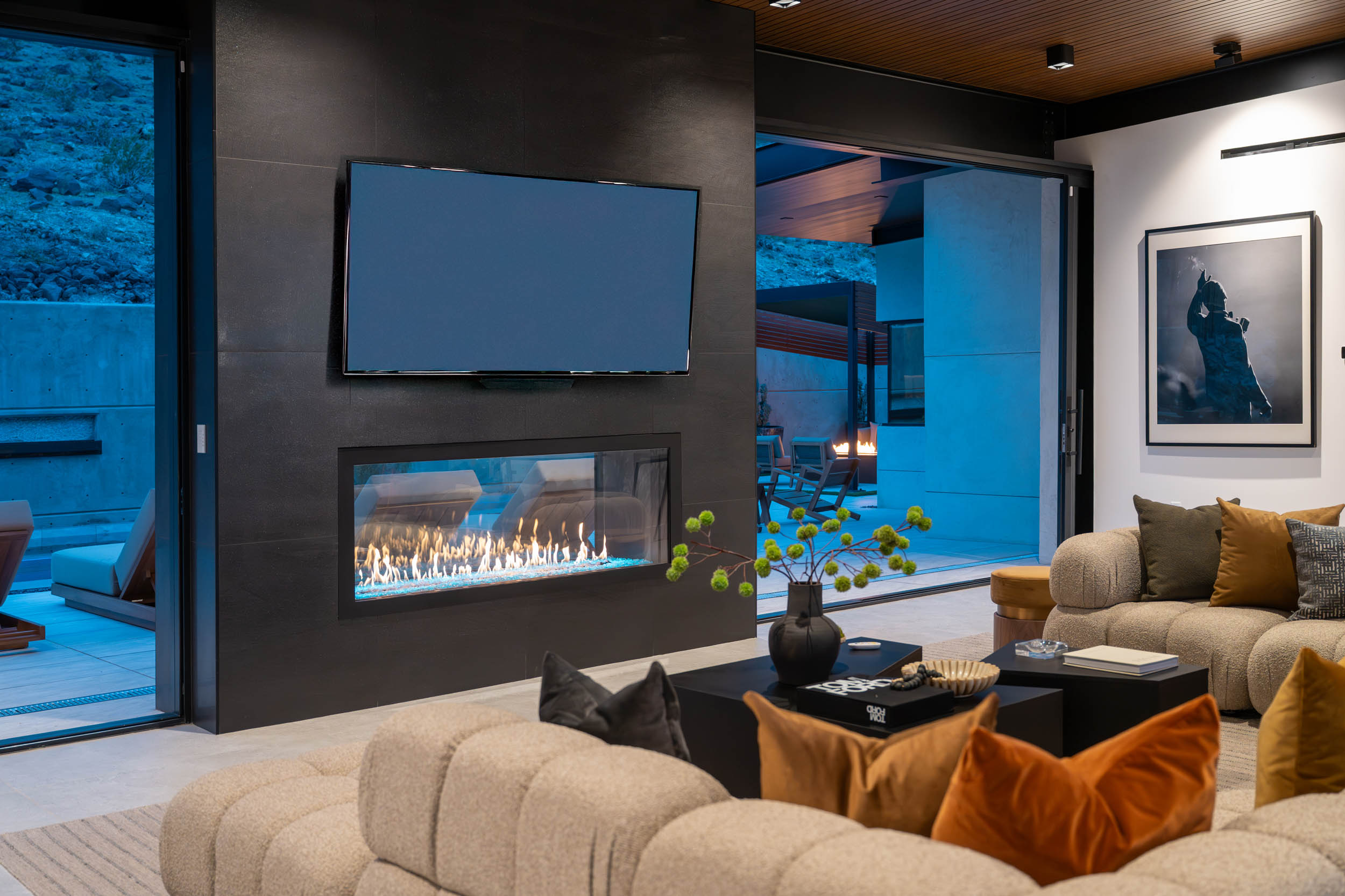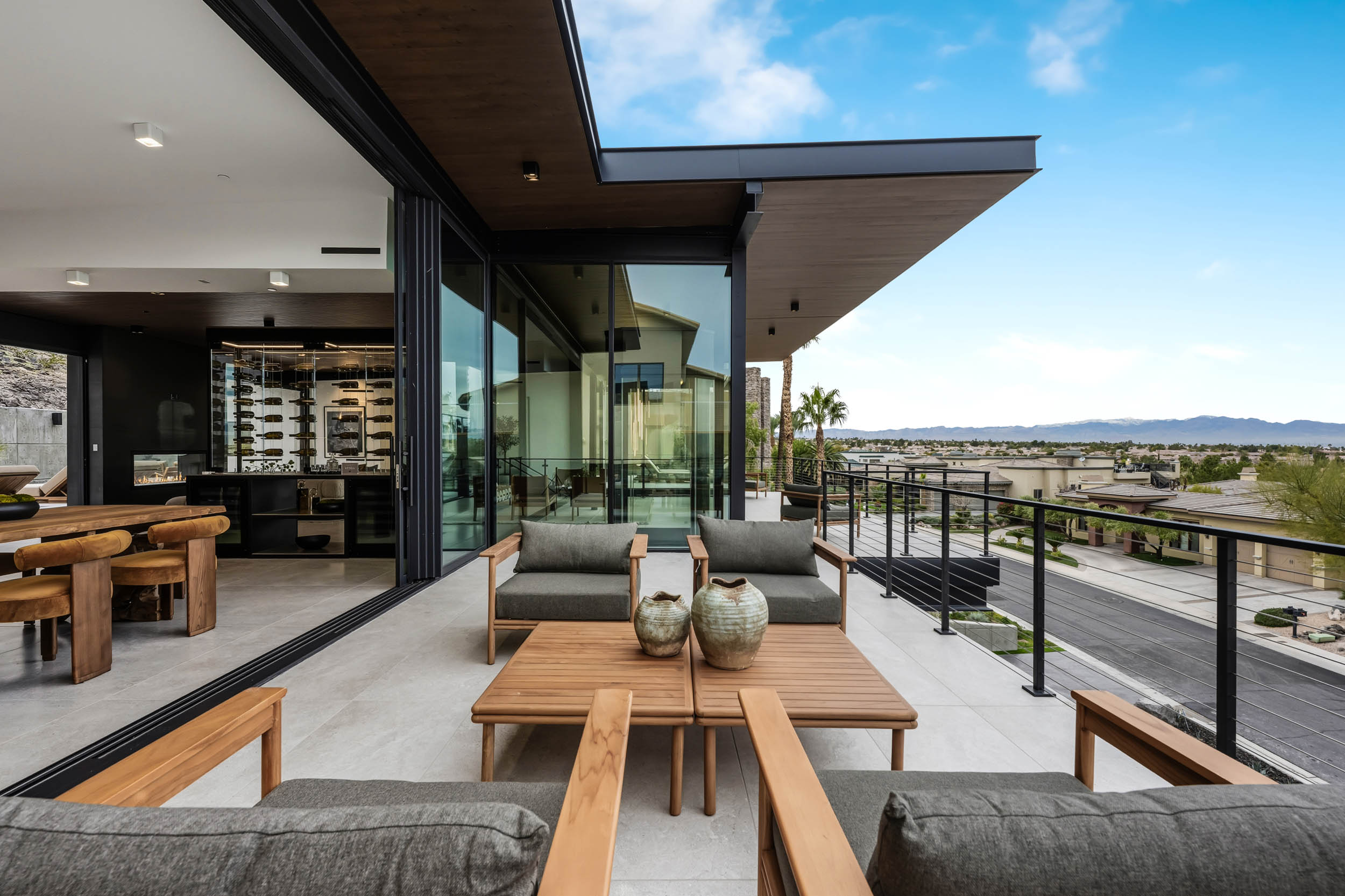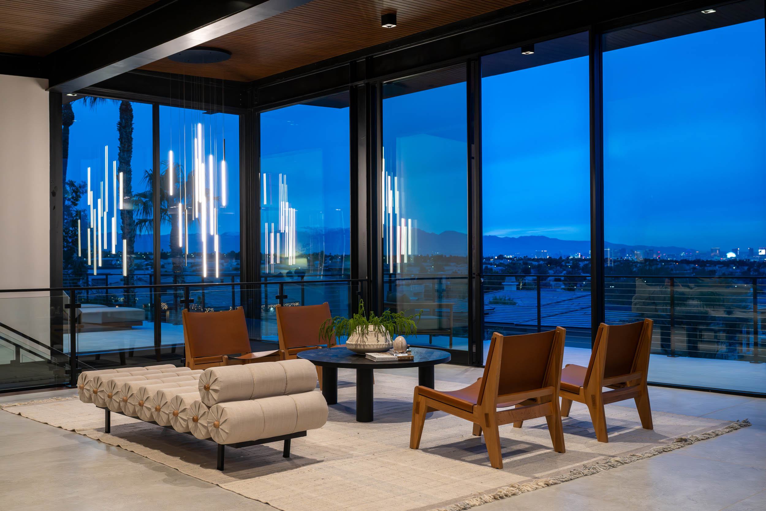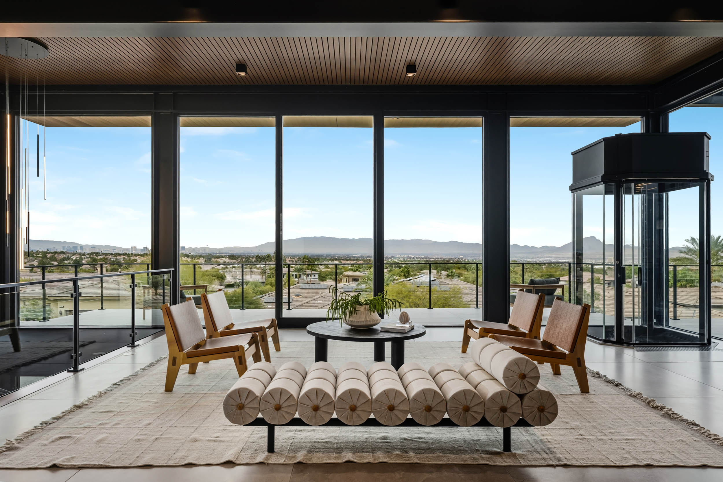 The owners envisioned a home that would fully embrace the privacy and security of MacDonald Highlands while offering effortless accessibility for their elderly parents and generous space for visiting children, grandchildren, and guests. Equally important was capturing the homeās elevated hillside setting and sweeping Las Vegas Valley and Strip views.