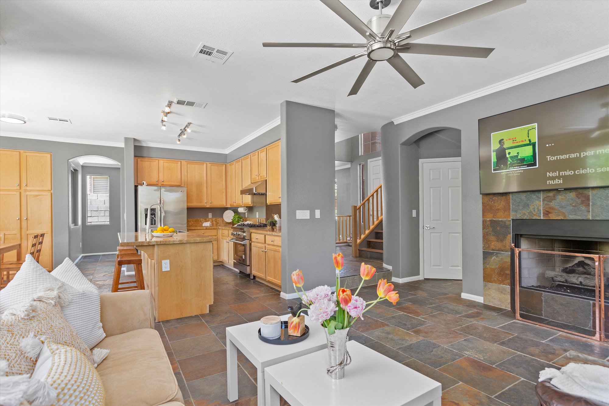 Refreshed, remodeled beautiful home in the heart of Summerlin. Quality details and finishes. Huge pool sized yard, covered patio, fruit trees. Light home with gorgeous hardwood floors, slate tiles. Steam shower, Italian Cosmo gas oven, new cabinets. Must see to appreciate fine finishes!