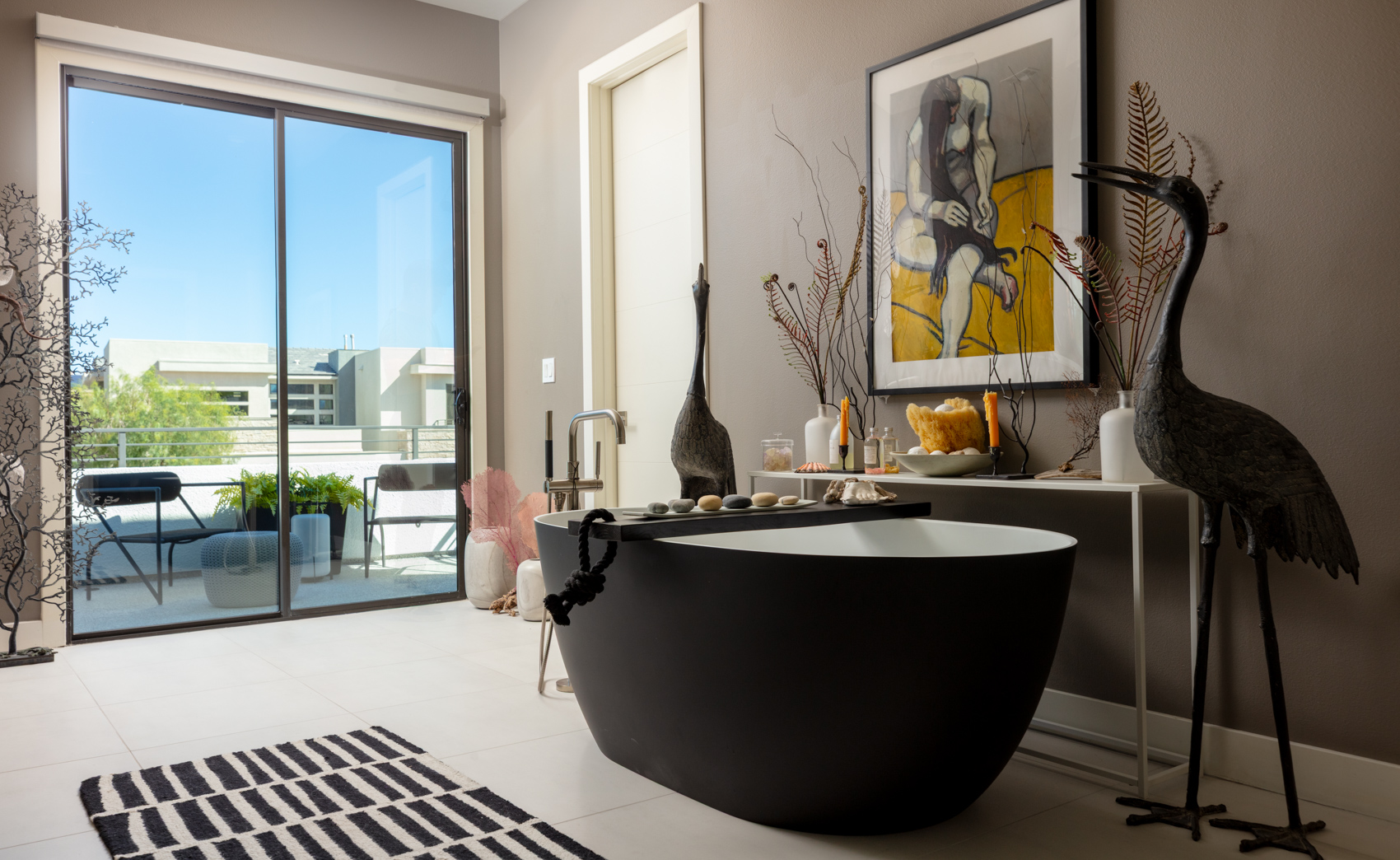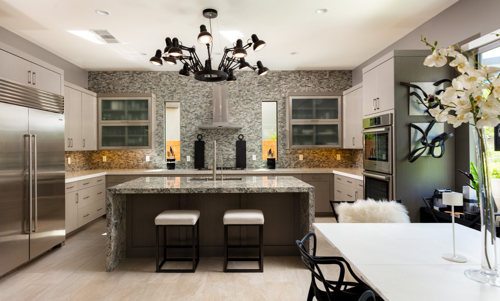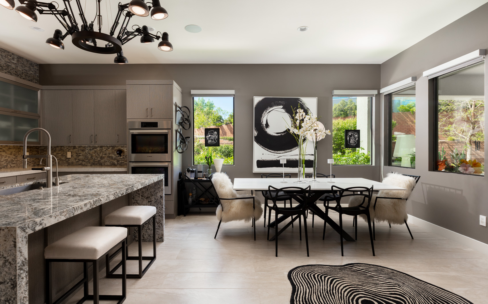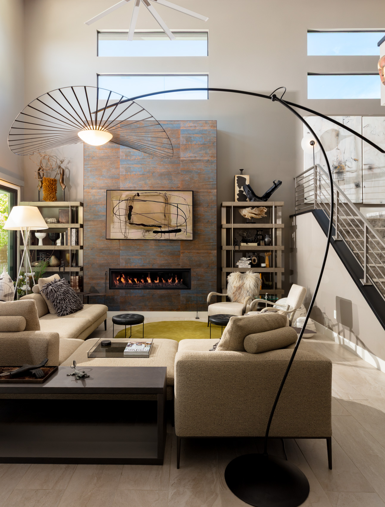 The kitchen is both functional and striking, appointed with high-end stainless-steel appliances, custom cabinetry, and a generous island that serves as a central gathering space for everyday living and entertaining alike. Supporting spaces—including a well-equipped pantry, laundry room with ample storage, and a three-car tandem garage with built-in cabinetry—enhance the home’s livability. The upper-level primary suite is a true sanctuary, occupying its own private level for added comfort and privacy. This retreat features a fireplace, a spacious sitting area, and a custom-designed walk-in closet. The spa-inspired bath has been thoughtfully finished with luxurious materials, creating a calming, resort-like atmosphere. Secondary bedrooms are generously sized and well-appointed, each offering en-suite baths and walk-in closets, ideal for accommodating guests or family with ease. Outdoors, the home transforms into a private resort setting designed for both relaxation and entertaining. The backyard features a beautifully designed pool and spa, complemented by dual fire features that add warmth and ambiance. Multiple lounge and dining areas provide flexibility for gatherings of any size, while the outdoor kitchen enhances the experience of al fresco living. Lush landscaping surrounds the space, and recently added ambient lighting creates a striking atmosphere into the evening hours. Additional highlights include a full security system with cameras and alarms, whole-home water softening, and reverse osmosis, contributing to both comfort and peace of mind. Blending modern design with thoughtful functionality, this exceptional residence offers a polished and private lifestyle within one of Las Vegas’ most sought-after communities.
