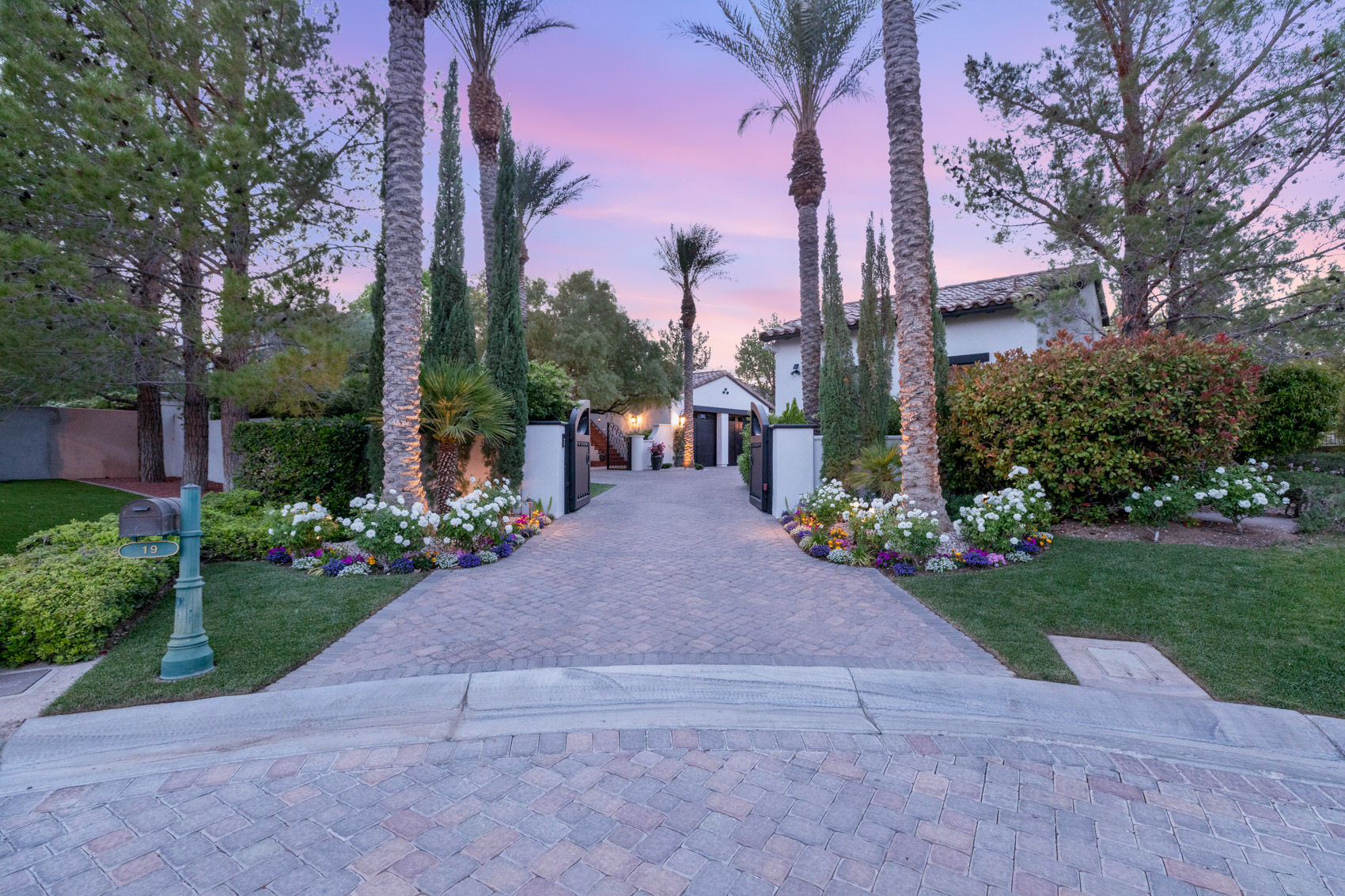 The main residence features 3-bedroom suites, 3.5 bath, theatre, and large living spaces. 2nd floor is dedicated to the primary retreat with spa-like bath and an additional office/den. Main kitchen is open to living area plus there is a second chef's kitchen both with high-end commercial grade appliances. Separate guest house is the 4th bedroom with additional 2 car garage. The lush outdoor areas are magnificent and offer a tranquil escape. Pool and spa overlook the golf course and must be seen in person to appreciate. Truly one-of-a-kind.