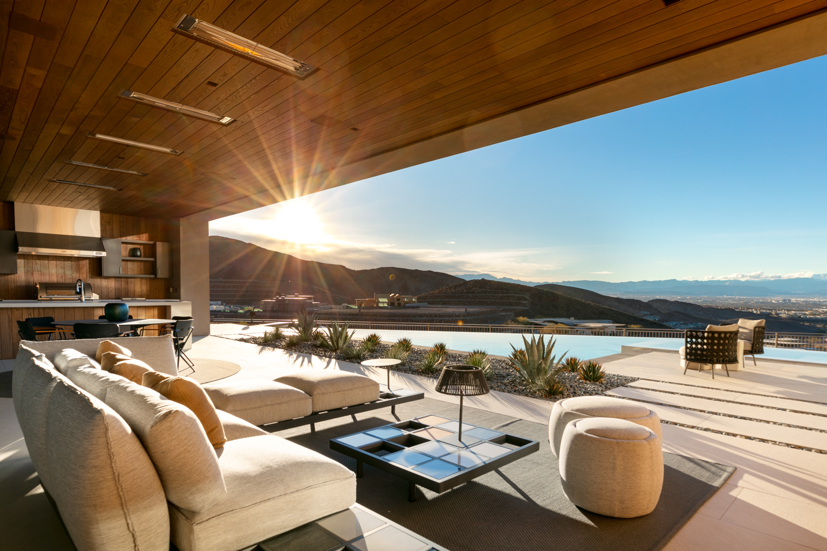 The primary suite is a sanctuary of indulgence, offering more than just breathtaking views of the iconic Las Vegas Strip and the sprawling landscapes beyond. It introduces a spa-like ambiance, complete with a sauna, kitchen, and lounge, providing a private haven for relaxation and enjoyment. This suite is a testament to the thoughtful design that prioritizes both aesthetic and functional elements, ensuring a luxurious and comfortable lifestyle. One of the distinguishing features of this residence is its eco-conscious net-zero design. The property boasts solar panels, exemplifying a commitment to sustainability. Achieving LEED Platinum certification, this home stands as a beacon of environmentally responsible living in the heart of luxury. The integration of Crestron home automation further enhances the property's efficiency, offering a seamless blend of technology and eco-friendliness. Designed by the renowned architect Michael Gardner and constructed by LUXUS Design Build, this residence was honored with the prestigious title of the New American Home of 2023. Every detail reflects a commitment to excellence, from the chef's kitchen, adorned with top-of-the-line appliances, to the 452-bottle wine wall that caters to the most discerning tastes. The home office is a perfect blend of functionality and style, providing a dedicated space for work in an inspiring environment. Step outside, and a world of outdoor splendor unfolds. Over 1000 square feet of outdoor space beckons, offering a retreat unlike any other. Dual pools provide a refreshing oasis, complemented by a spa and thoughtfully placed fire features. Two outdoor kitchens further elevate the alfresco experience, creating an entertainer's paradise under the vast Nevada sky. Built-in space heaters on the outdoor veranda extend the usability of the space, allowing for year-round enjoyment of the breathtaking surroundings. Beyond the property's boundaries lies ASCAYA, a community synonymous with exclusivity and sophistication. ASCAYA is not just a location; it's a lifestyle. Perched on elevated terrain, ASCAYA provides sensational views of the Las Vegas Valley, the glittering Strip, and the majestic mountains that frame the horizon. This community is a canvas of luxury living, offering residents an unparalleled sense of privacy and tranquility. This residence in ASCAYA presents a rare opportunity to own a slice of paradise in one of the most sought-after addresses in Las Vegas. It's not just a home; it's an experienceāa culmination of design, luxury, and natural beauty. ASCAYA is more than a neighborhood; it's a statementāa statement of prestige, exclusivity, and a life well-lived. In a city known for its opulence, this property stands out as a true gem. Whether you seek a private sanctuary, an entertainer's dream, or a showcase of sustainable luxury, 19 Rockstream Drive transcends expectations. Ascend to ASCAYA, where every moment is elevated, and luxury knows no bounds. Welcome to a life of unparalleled sophistication and grace. Welcome home.