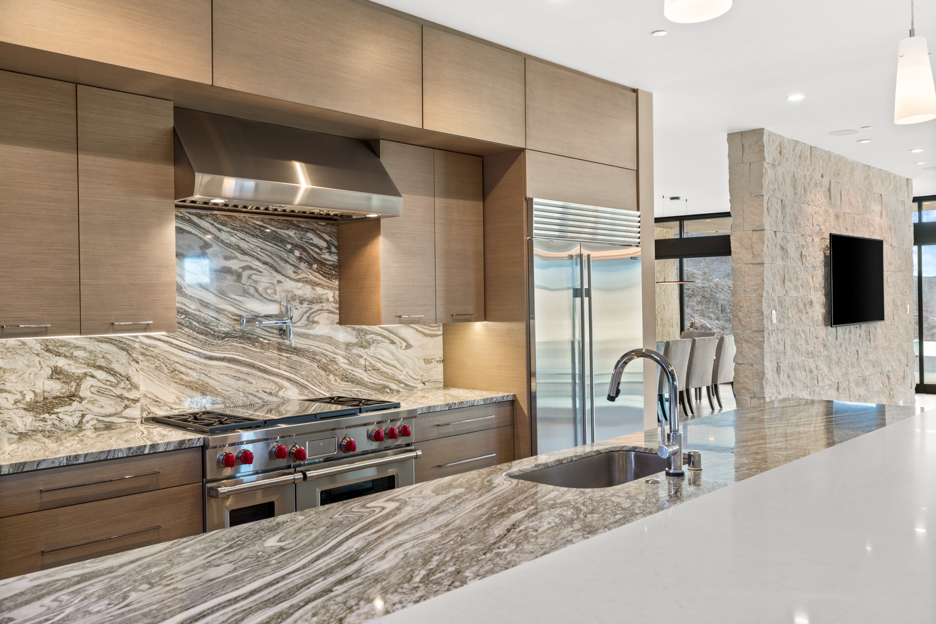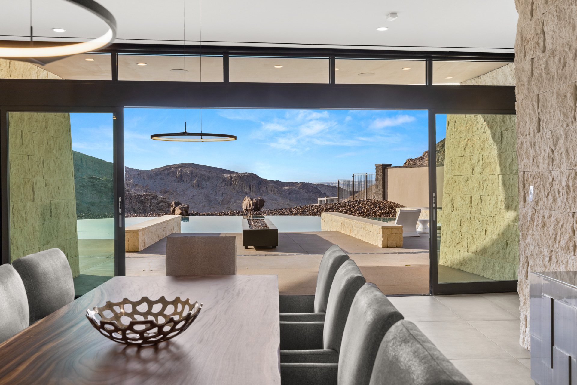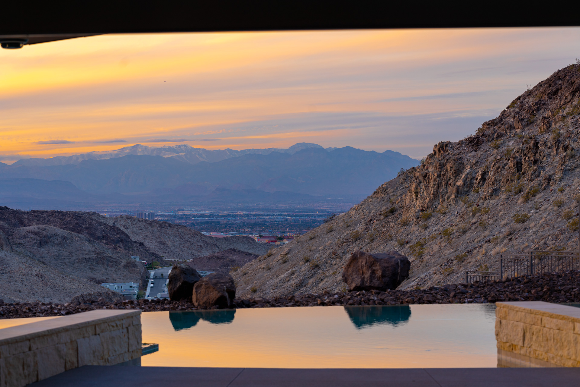 The magic does not stop! The backyard lends itself to a captivating desert landscape, privately tucked into a canyon overlooking the city and surrounding mountain range. This expansive area is perfect for entertaining, with a built-in outdoor kitchen, fire pit, and custom infinity pool with jacuzzi, which seem to drop off into the spell binding mountains. Let the light of this majestic escape, bring you home!
