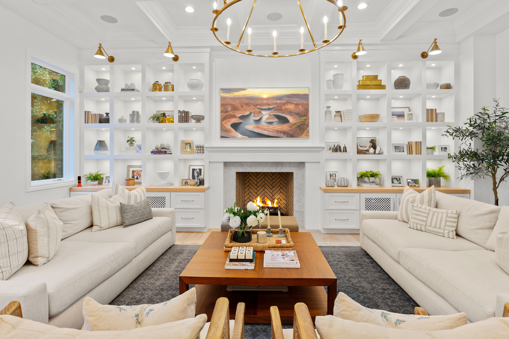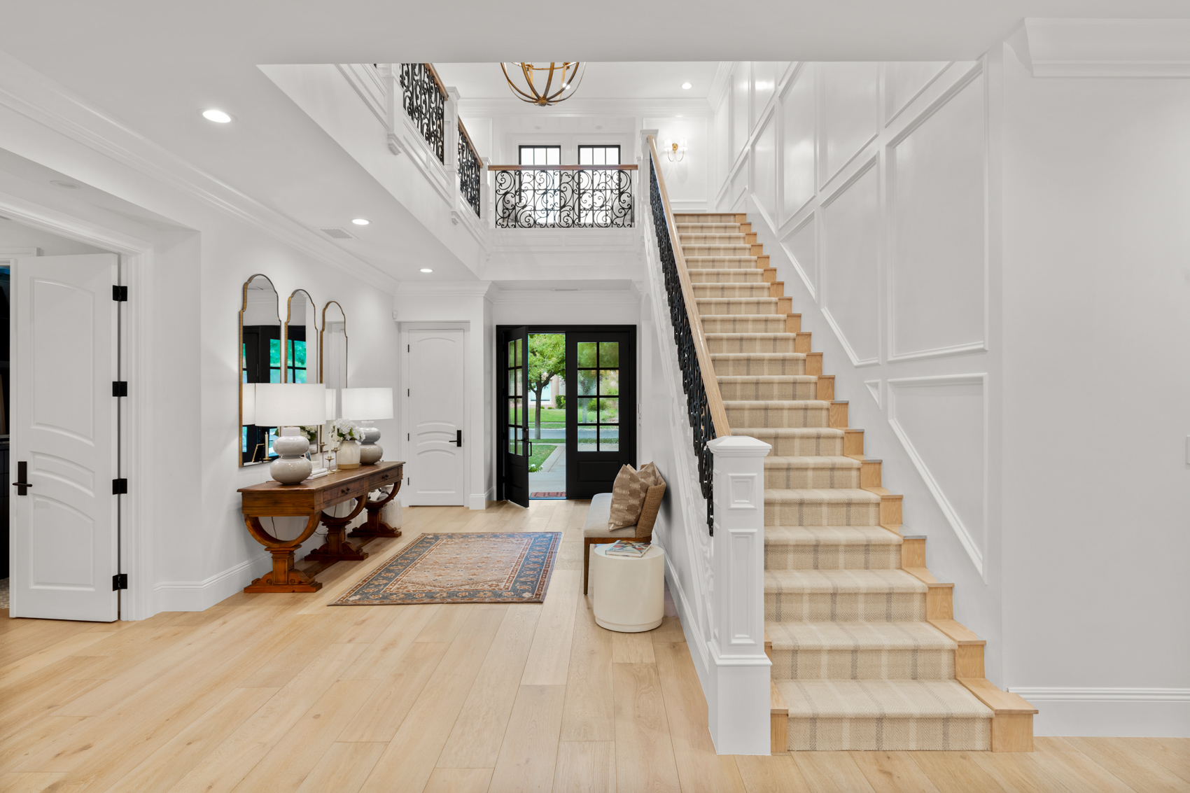 Step inside to be greeted by lustrous European oak wood flooring that seamlessly flows throughout the home. Every detail, from the gorgeous millwork to accent lighting, has been thoughtfully executed to create spaces that are both luxurious and inviting. The home exudes a timeless and homey feel, further accentuated by the stunning juxtaposition of natural oak accents, designer light fixtures and impeccable finishes throughout.
