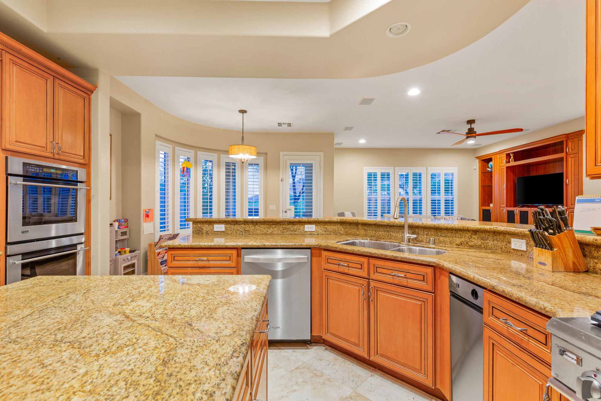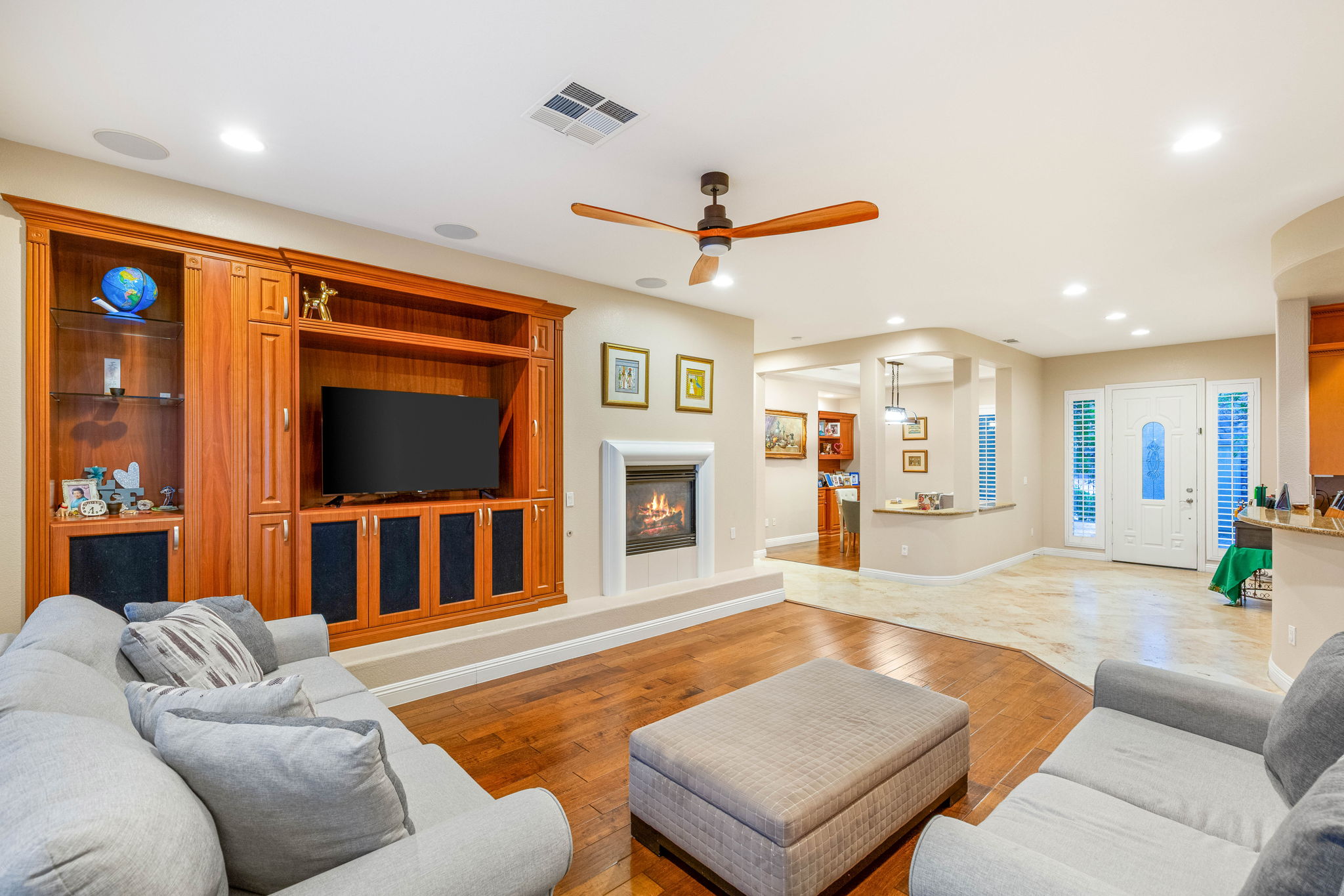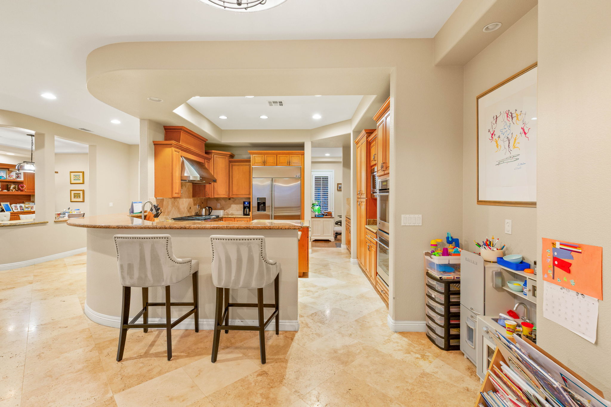 From the moment you arrive, the home makes a commanding impression with its timeless architectural details and thoughtful desert landscaping. Tucked behind a private gated courtyard, a tranquil fireplace welcomes you and sets the tone for the serene, resort-style atmosphere that continues throughout the property. The courtyard also features a custom putting green, the perfect place to hone your short game or relax beneath the stars. A detached casita, complete with its own bathroom and walk-in closet, is ideal for guests, extended family, or as a private office retreat.