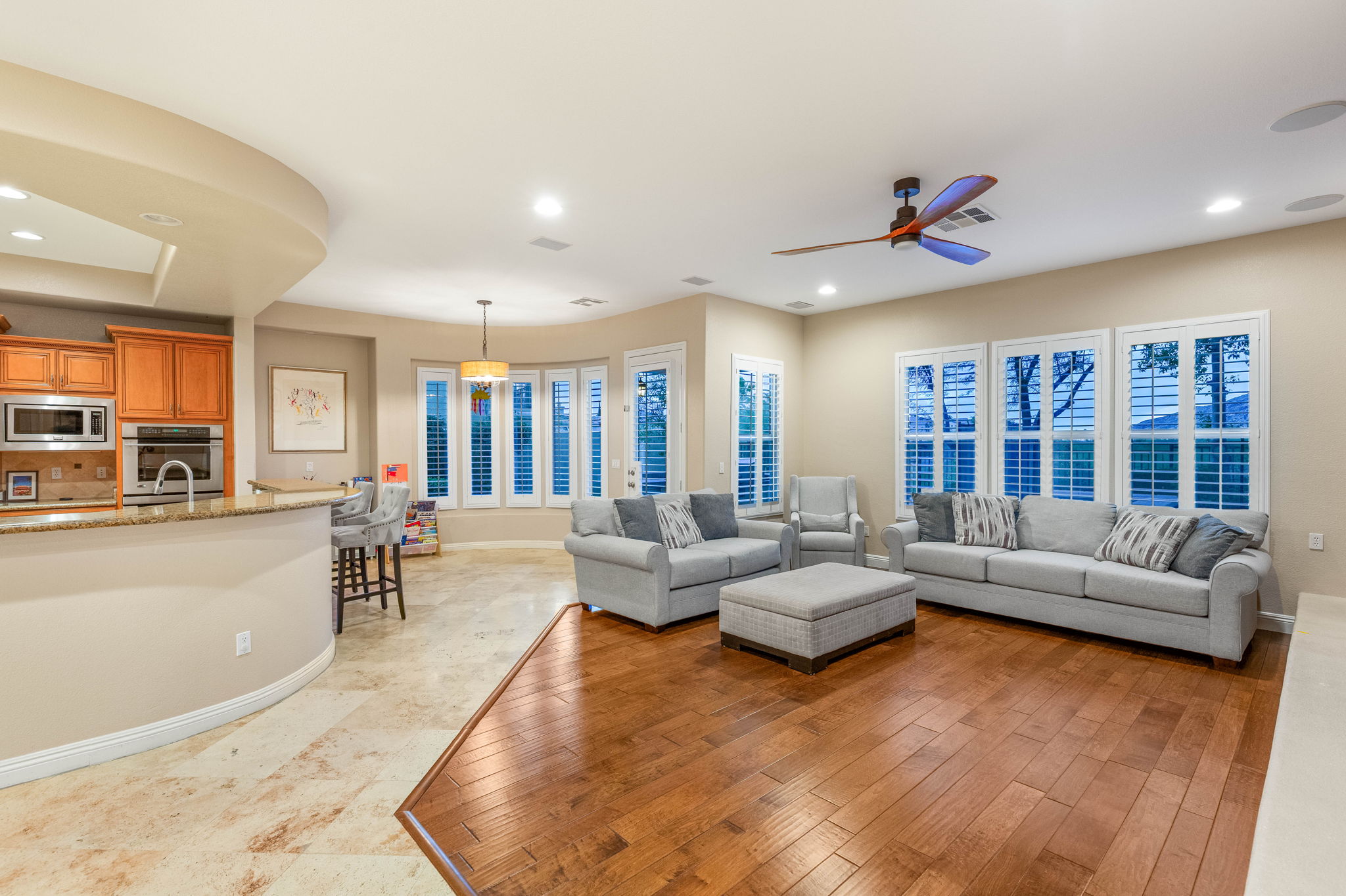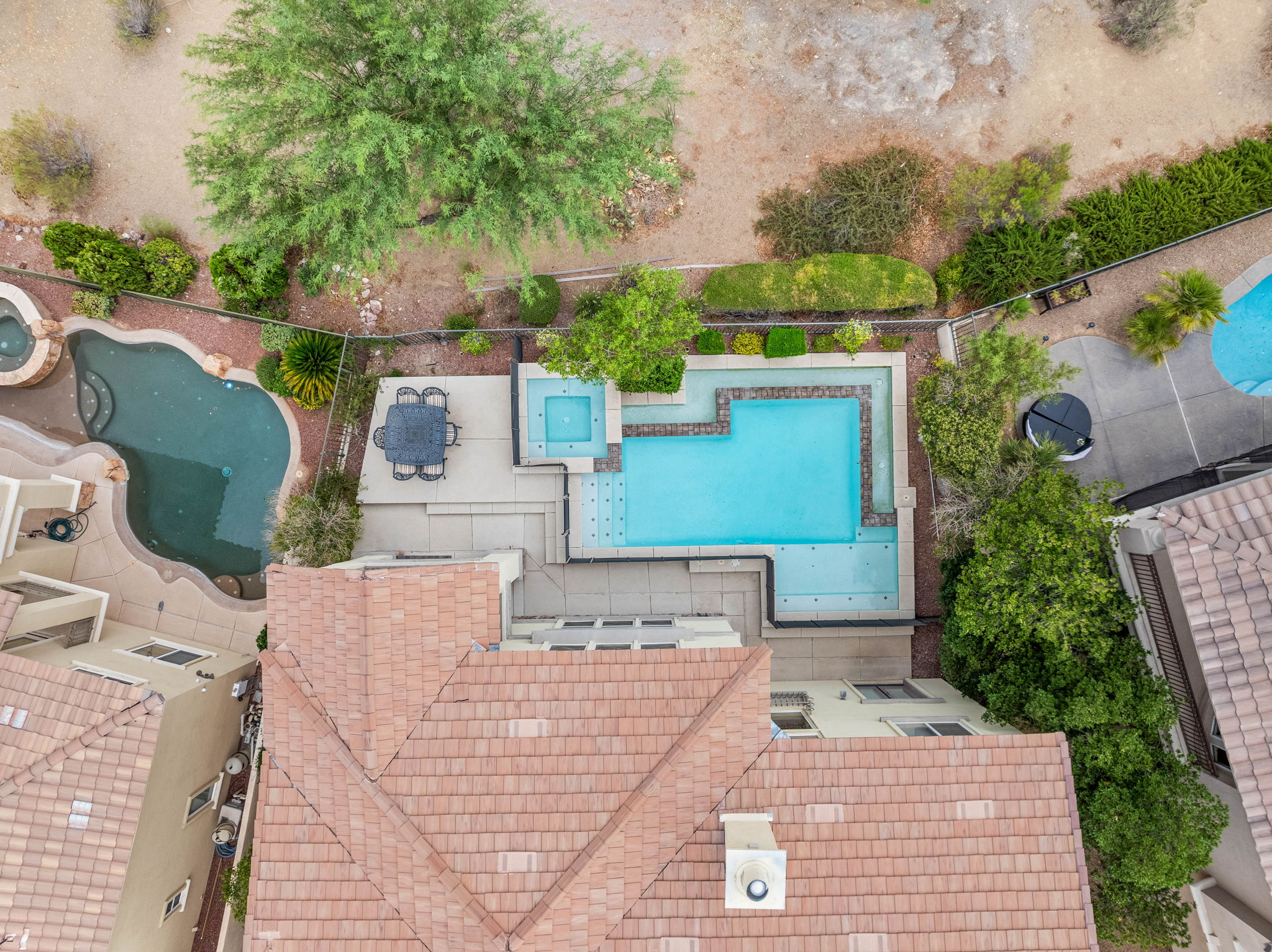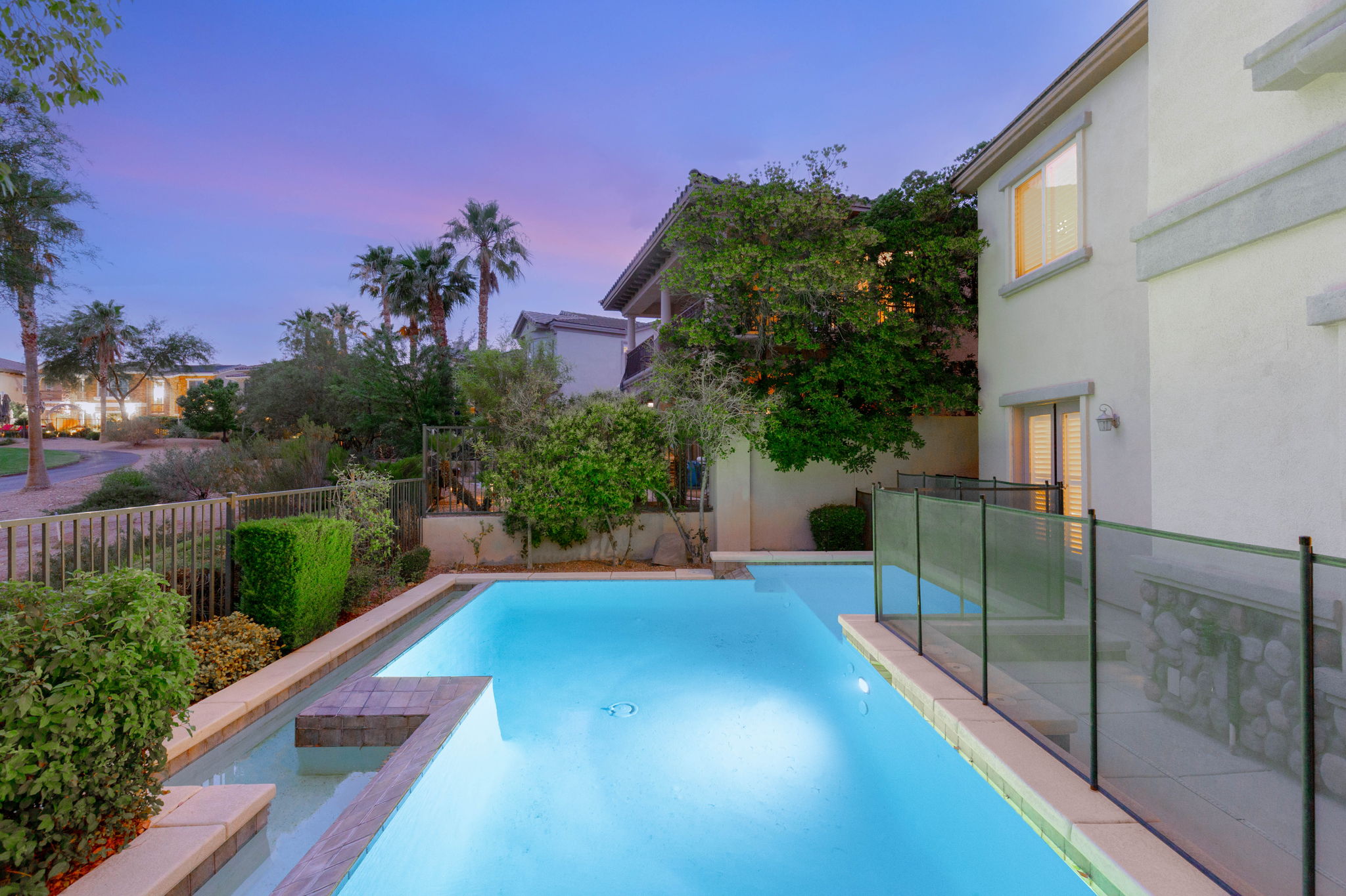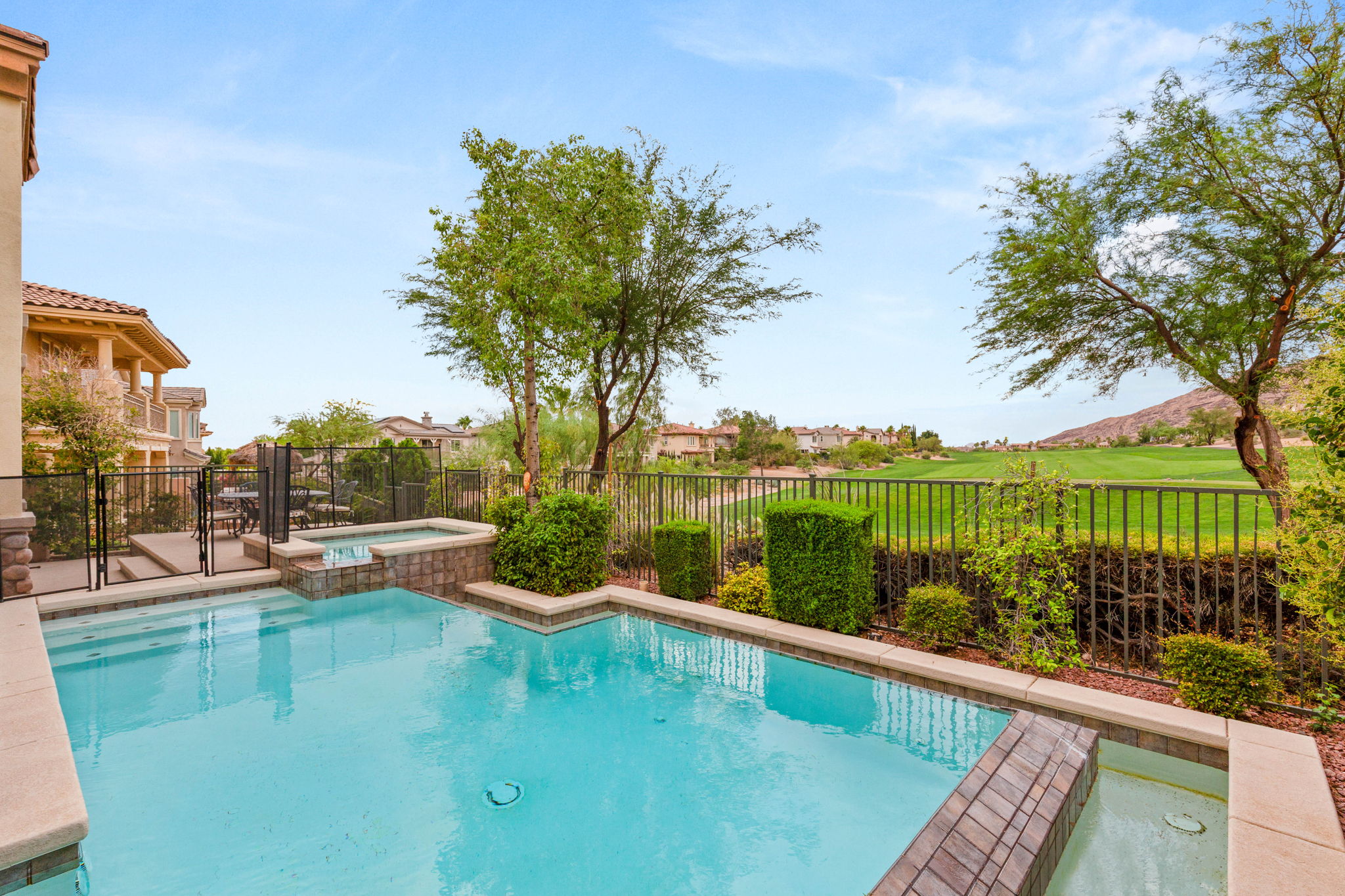 Step inside the main residence to discover an open, flowing layout designed for both comfort and grand-scale entertaining. Richly appointed interiors include plantation shutters throughout, high ceilings, and elegant tile and hardwood flooring that elevate the homeās classic character. The living and dining areas seamlessly blend with the gourmet kitchen, where granite countertops, custom cabinetry, stainless steel appliances, and a large island invite culinary creativity and casual conversation. Just off the kitchen, a cozy family room with built-in features provides the perfect gathering space for evenings at home. For those who value flexibility, this home offers a rare full bedroom and bathroom on the first floor, ideal for multi-generational living or as a quiet guest suite. Each of the remaining bedrooms is generously proportioned, with ample closet space and thoughtful details, but the crown jewel is undoubtedly the upstairs primary suite. Designed as a personal sanctuary, the primary suite exudes peace and sophistication. Wake to sunlight pouring through expansive windows that frame the breathtaking views of the Red Rock Canyon ridgelines and the lush fairways below. Step onto your covered private balcony, a peaceful perch to enjoy sunrise coffee or sunset cocktails while soaking in panoramic desert vistas that shift with the light. The ensuite bathroom rivals a luxury spa, with a soaking tub, separate shower, dual vanities, and a large walk-in closet that effortlessly accommodates even the most curated wardrobe. Outside, the homeās resort-style backyard is an entertainerās dream. The centerpiece is a stunning infinity-edge pool and spa, designed to visually blend into the golf course just beyond, creating a seamless transition between private and open space. Whether hosting a summer soirĆ©e or enjoying a quiet evening under the stars, this outdoor oasis delivers an unmatched setting of beauty and tranquility. The pool area is surrounded by generous patio space and lush landscaping, offering room for alfresco dining, lounging, and recreation ā all with the breathtaking backdrop of the Red Rock Country Clubās championship fairways and the dramatic mountain skyline. Other notable features include a 2-car garage, premium lighting fixtures, security enhancements, and pride of ownership that shines in every corner. Every finish and fixture has been thoughtfully selected to enhance the homeās timeless appeal while supporting a lifestyle of comfort and sophistication. Living in Red Rock Country Club means more than just owning a home ā itās about embracing a vibrant, exclusive lifestyle. Residents enjoy optional membership to the private club, which includes two Arnold Palmer-designed golf courses, tennis courts, fitness facilities, a clubhouse with fine dining, and a thriving calendar of social events. The surrounding Summerlin community offers access to world-class shopping, dining, top-rated schools, and miles of scenic trails and parks, all just a short drive from the energy of the Las Vegas Strip. In every sense, 1935 Alcova Ridge Drive is more than a residence ā itās a statement. A statement of style, serenity, and sophistication in one of Las Vegasā most prestigious golf course communities. With breathtaking views, luxurious indoor-outdoor living, and exceptional craftsmanship throughout, this home offers the best of desert luxury in the heart of Summerlin. Schedule your private tour and prepare to fall in love.