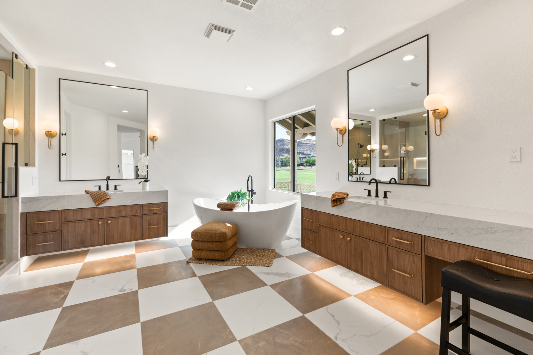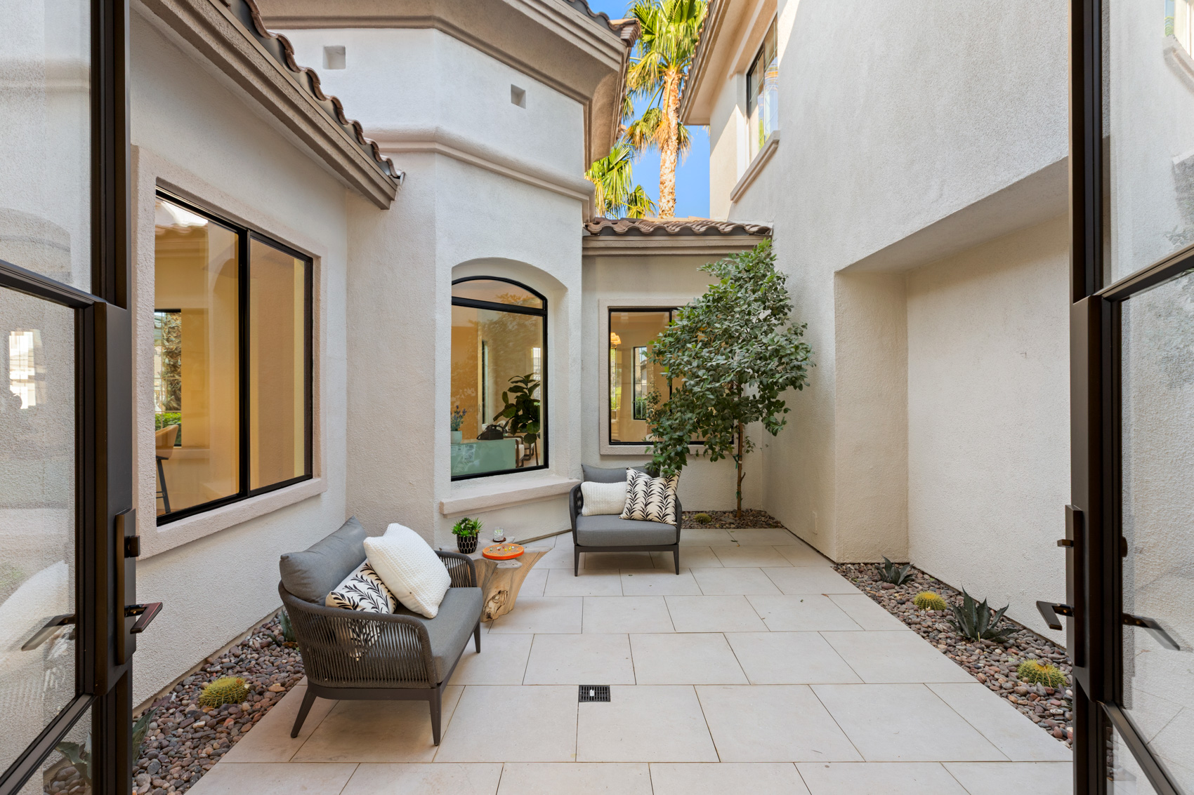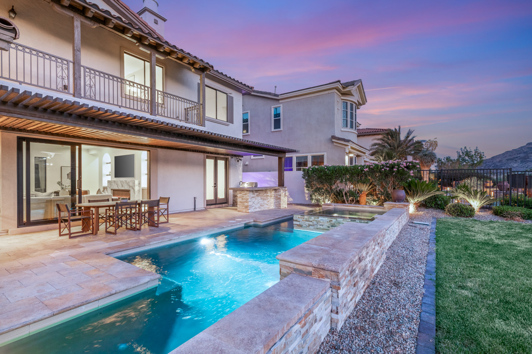 The kitchen is a showpieceāoutfitted with top-of-the-line new appliances, marble countertops, custom cabinetry, and ample storageāall designed to cater to both everyday living and entertaining with ease. The adjoining living and dining spaces feature walls of windows that flood the home with natural light and frame captivating views of the lush fairways and red rock mountains. Upstairs, the primary suite is a tranquil retreat, complete with a spa-like bathroom and generous closet space. Each additional bedroom is well-appointed, with stylish finishes that carry the home's cohesive aesthetic throughout. Outdoors, the backyard is your private oasis. A sparkling pool and spa take center stage, set against the sweeping backdrop of the golf course and enhanced by the extended lot line that offers added space, privacy, and potential. Whether hosting guests or enjoying a quiet sunset, the setting is nothing short of breathtaking. Located within the west gate at Red Rock Country Club, residents enjoy access to world-class amenities including two Arnold Palmer-designed championship golf courses, tennis courts, fitness facilities, clubhouse dining, and walking trailsāall nestled at the edge of Red Rock Canyonās majestic landscape. The communityās unmatched security and prestige make it one of the most coveted enclaves in all of Las Vegas.