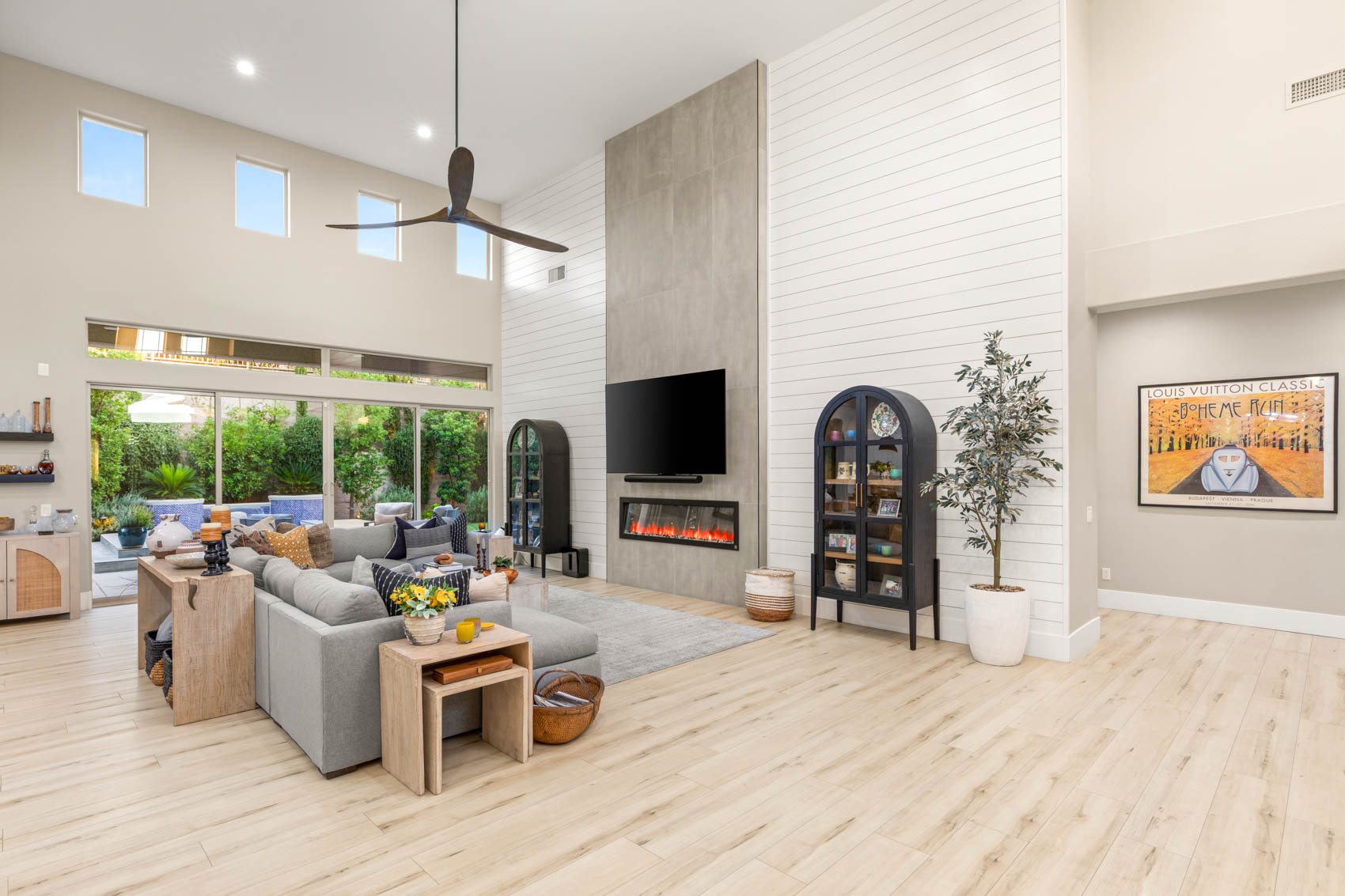 The moment you step inside, youāre greeted by soaring 20-foot ceilings and an abundance of natural light streaming through expansive windows, creating an immediate sense of space and serenity. The open-concept layout flows effortlessly between living areas, designed to accommodate both grand entertaining and relaxed everyday living.