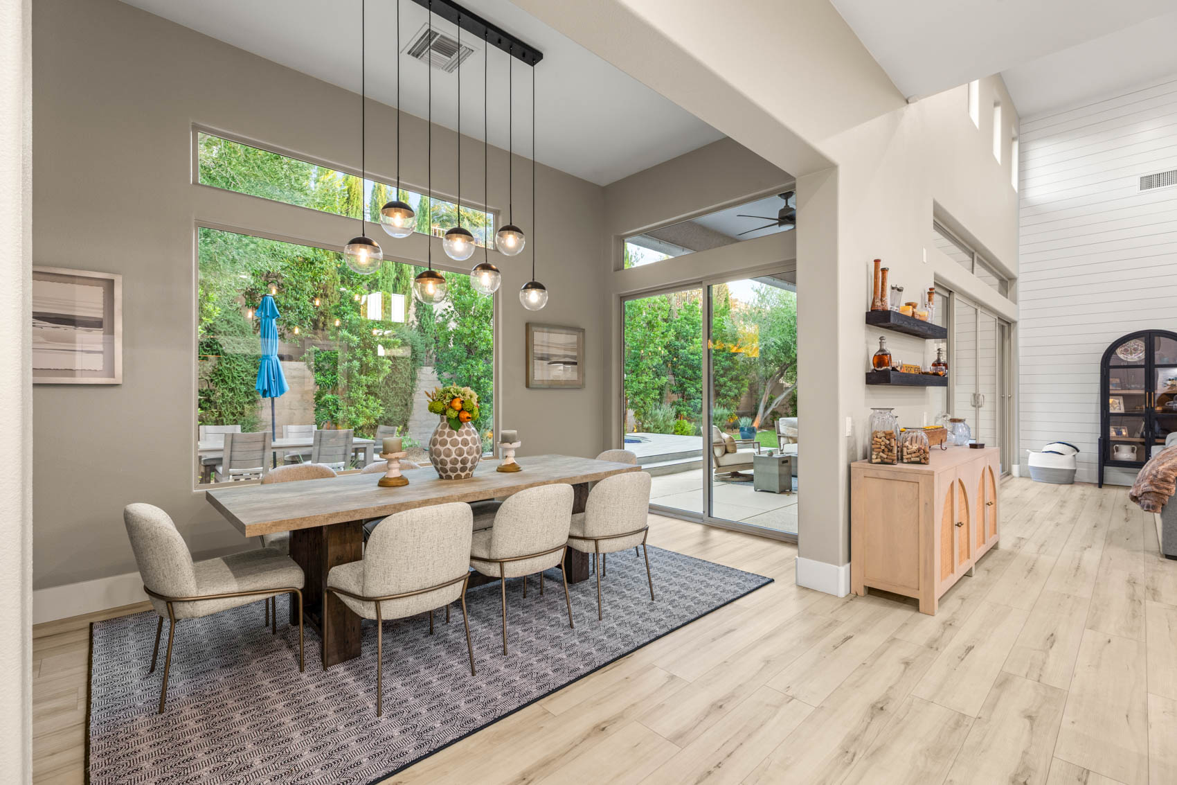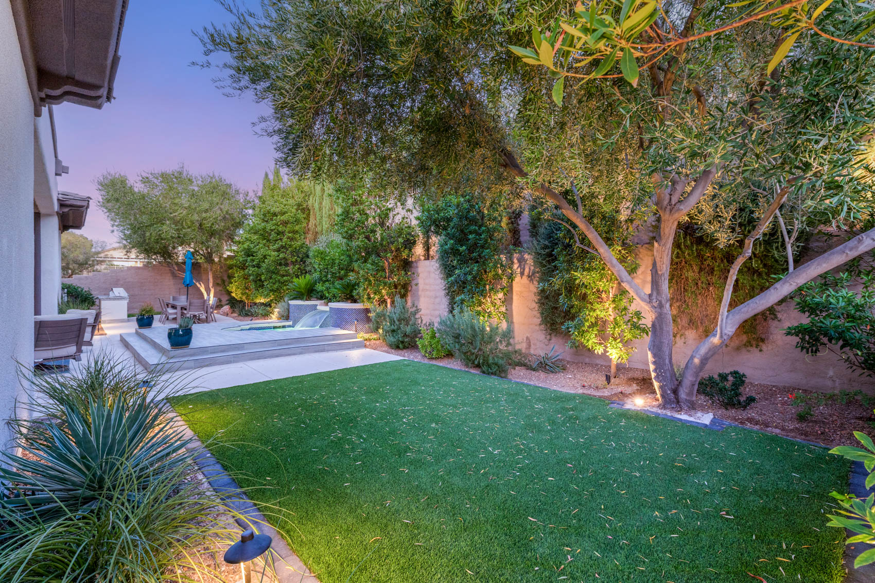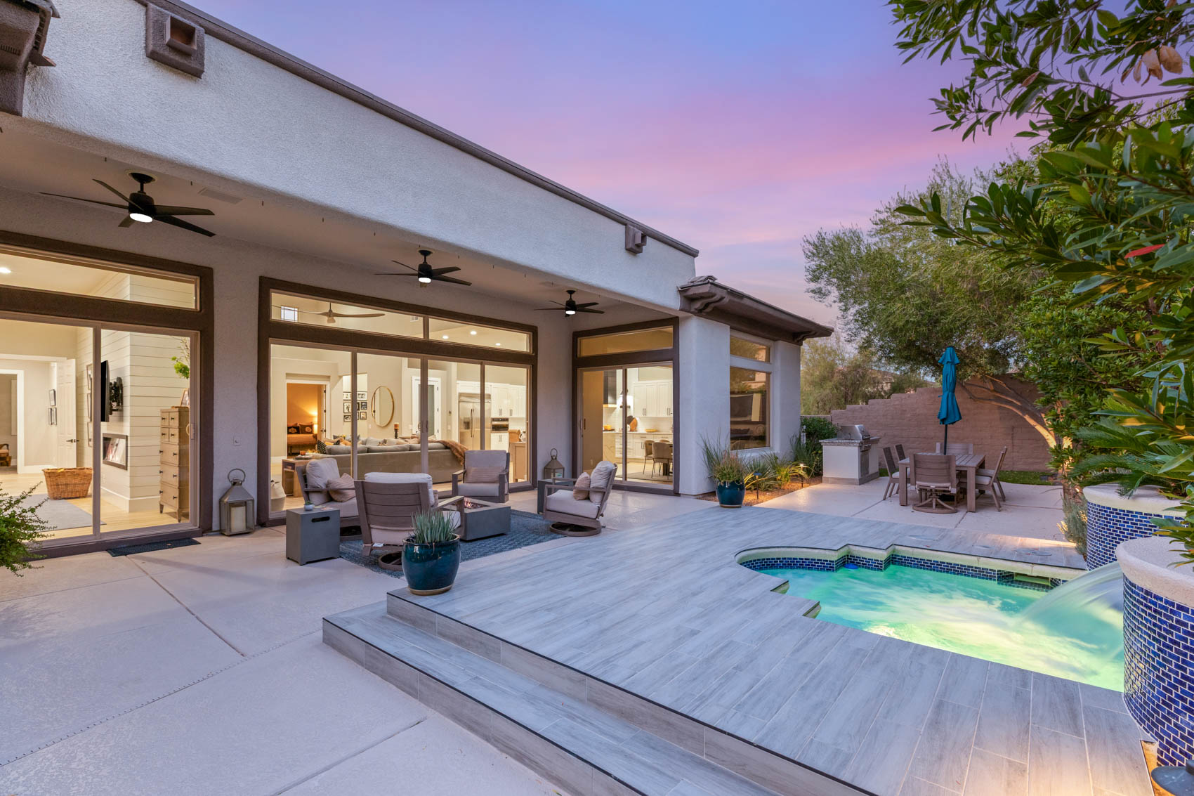 The great room serves as the heart of the home, featuring a sleek linear fireplace and stacking sliders that open to the covered patioāblurring the line between indoor comfort and outdoor luxury. The spacious chefās kitchen is a true showpiece, complete with a dramatic waterfall island, high-end stainless steel appliances, and extensive custom cabinetry offering exceptional storage. A separate dining area opens directly to the patio, ideal for alfresco dining or evening gatherings under the desert sky. The primary suite is a serene retreat tucked away for privacy, featuring direct access to the backyard. Its spa-inspired bathroom includes a free-standing soaking tub, dual sinks, a separate walk-in shower, and a custom walk-in closet with floor-to-ceiling built-insādesigned with both luxury and functionality in mind. Three additional bedrooms provide versatility for guests, family, or a home office, each finished with the same meticulous attention to detail found throughout the home. Every inch of the property reflects high-end craftsmanshipāfrom plantation shutters throughout to the modern fixtures and designer surfaces that elevate each room. A large laundry room with a deep basin sink and direct access from the three-car garage adds everyday convenience. Step outside to discover a lushly landscaped backyard, perfectly curated for privacy and relaxation. The covered patio offers multiple lounging areas, complemented by a built-in BBQ, ideal for entertaining. The spa with a soothing water feature provides a tranquil spot to unwind, surrounded by greenery and the soft glow of evening lights. Nestled within Anthem Country Club, one of Hendersonās most sought-after communities, residents enjoy access to resort-style amenities including a championship golf course, tennis and pickleball courts, fitness center, pools, fine dining, and social eventsāall within the security of a 24-hour guard-gated environment. The neighborhoodās rolling fairways, scenic trails, and panoramic mountain views create a setting that feels worlds away, yet remains minutes from shopping, dining, and top-rated schools. A fully remodeled single-story home of this caliber is a rare offering in Anthem Country Club. With its thoughtful design, elevated finishes, and premier location at 2 El Macero Court, this residence represents a perfect harmony of modern luxury and timeless eleganceāan extraordinary opportunity to experience elevated desert living at its finest.