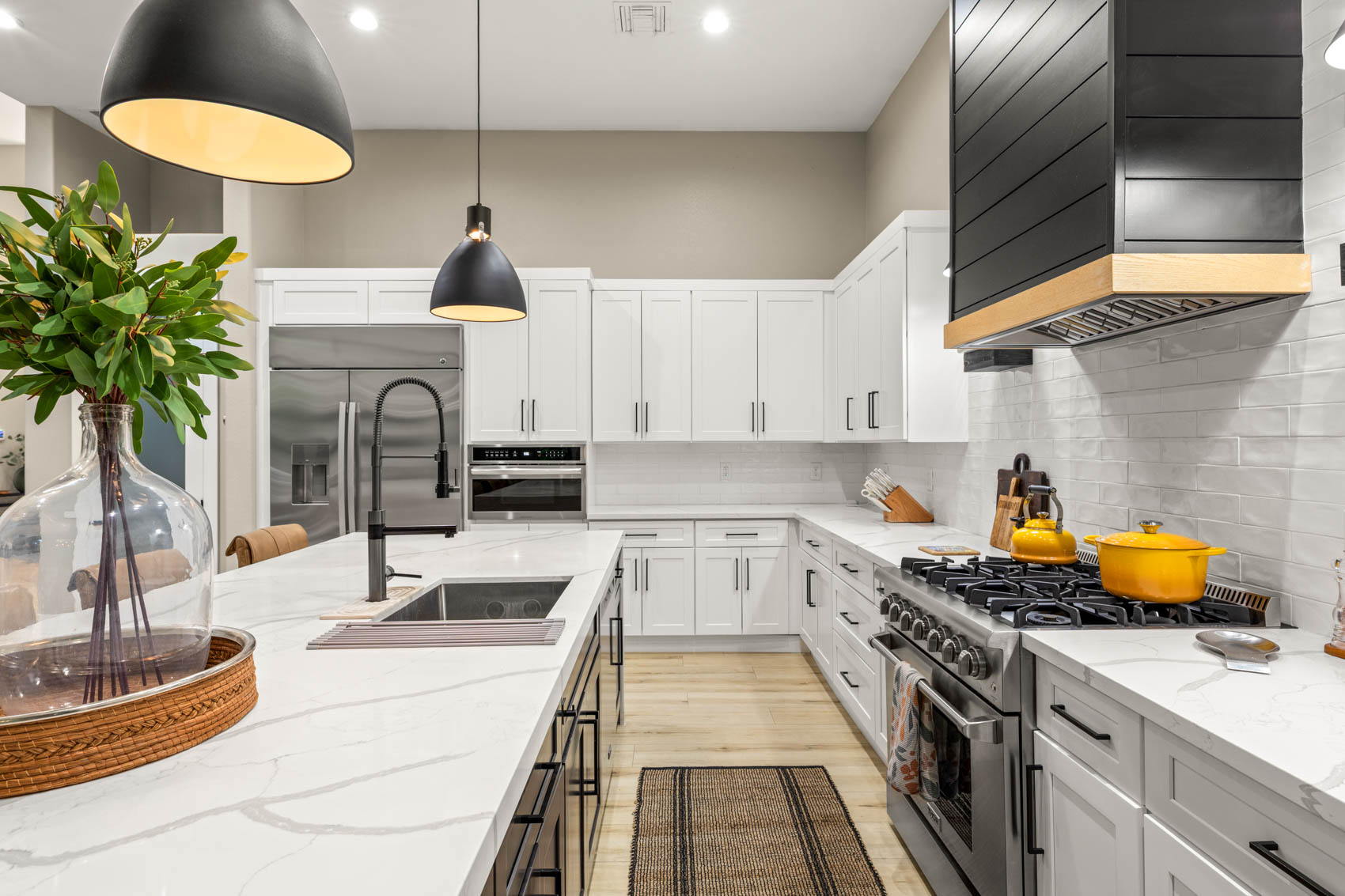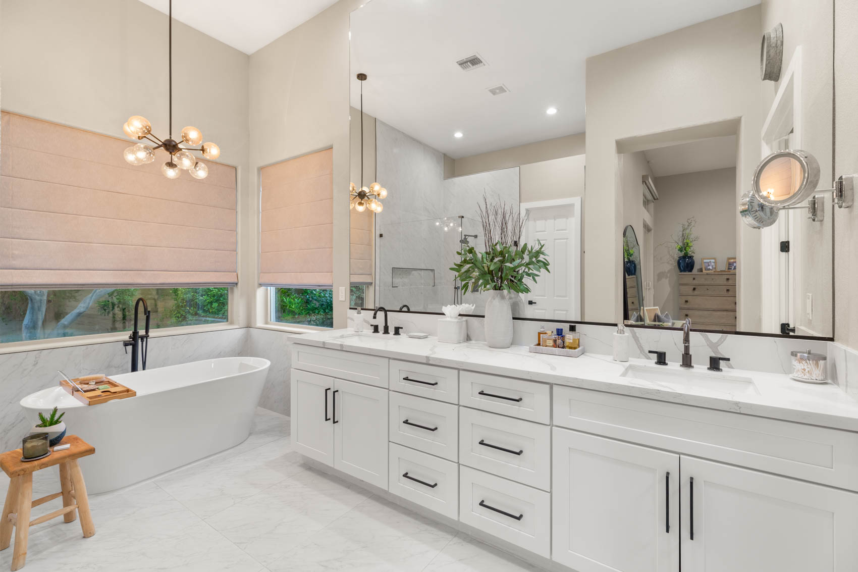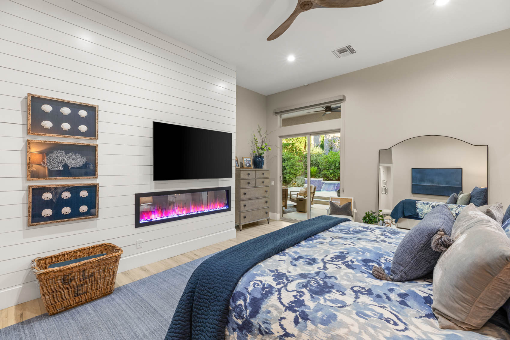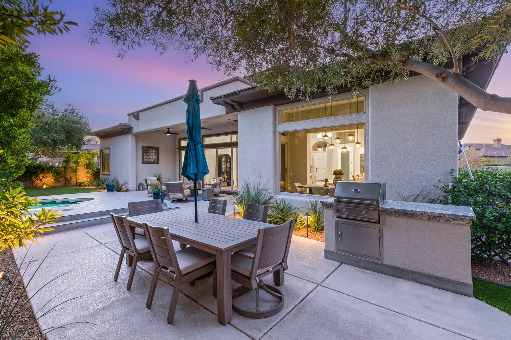 The great room serves as the heart of the home, featuring a sleek linear fireplace and stacking sliders that open to the covered patioāblurring the line between indoor comfort and outdoor luxury. The spacious chefās kitchen is a true showpiece, complete with a dramatic waterfall island, high-end stainless steel appliances, and extensive custom cabinetry offering exceptional storage. A separate dining area opens directly to the patio, ideal for alfresco dining or evening gatherings under the desert sky. The primary suite is a serene retreat tucked away for privacy, featuring direct access to the backyard. Its spa-inspired bathroom includes a free-standing soaking tub, dual sinks, a separate walk-in shower, and a custom walk-in closet with floor-to-ceiling built-insādesigned with both luxury and functionality in mind. Three additional bedrooms provide versatility for guests, family, or a home office, each finished with the same meticulous attention to detail found throughout the home. Every inch of the property reflects high-end craftsmanshipāfrom plantation shutters throughout to the modern fixtures and designer surfaces that elevate each room. A large laundry room with a deep basin sink and direct access from the three-car garage adds everyday convenience. Step outside to discover a lushly landscaped backyard, perfectly curated for privacy and relaxation. The covered patio offers multiple lounging areas, complemented by a built-in BBQ, ideal for entertaining. The spa with a soothing water feature provides a tranquil spot to unwind, surrounded by greenery and the soft glow of evening lights. Nestled within Anthem Country Club, one of Hendersonās most sought-after communities, residents enjoy access to resort-style amenities including a championship golf course, tennis and pickleball courts, fitness center, pools, fine dining, and social eventsāall within the security of a 24-hour guard-gated environment. The neighborhoodās rolling fairways, scenic trails, and panoramic mountain views create a setting that feels worlds away, yet remains minutes from shopping, dining, and top-rated schools. A fully remodeled single-story home of this caliber is a rare offering in Anthem Country Club. With its thoughtful design, elevated finishes, and premier location at 2 El Macero Court, this residence represents a perfect harmony of modern luxury and timeless eleganceāan extraordinary opportunity to experience elevated desert living at its finest.