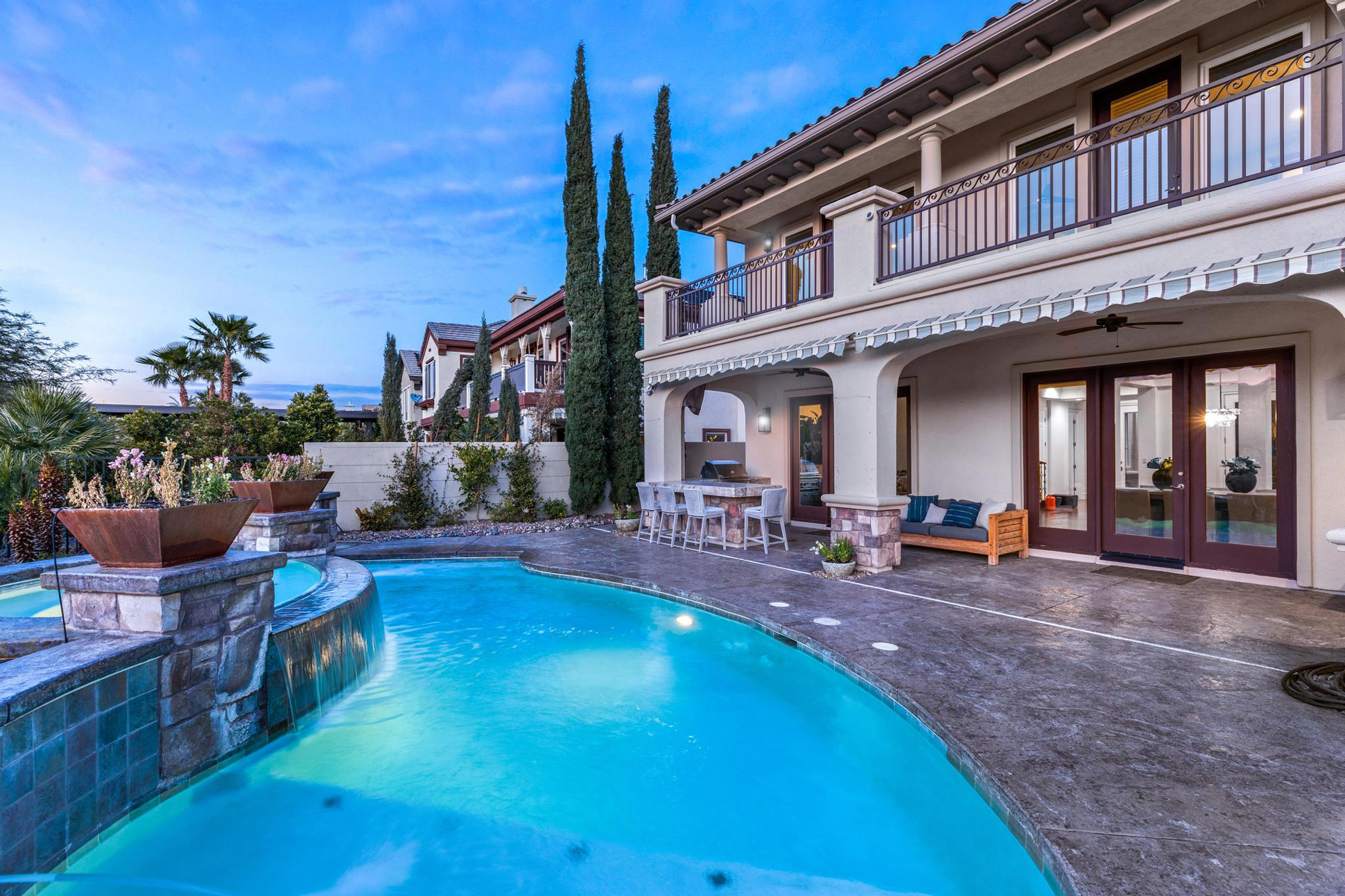 Welcome to this magnificent one-of-a-kind mediterranean-inspired estate situated on the exclusive double gated street of Cherry Creek Circle in Red Rock Country Club. From the immaculately landscaped courtyard, to the custom made built in wine storage wall, this 5 ensuite bedroom home has something to enjoy at every turn.