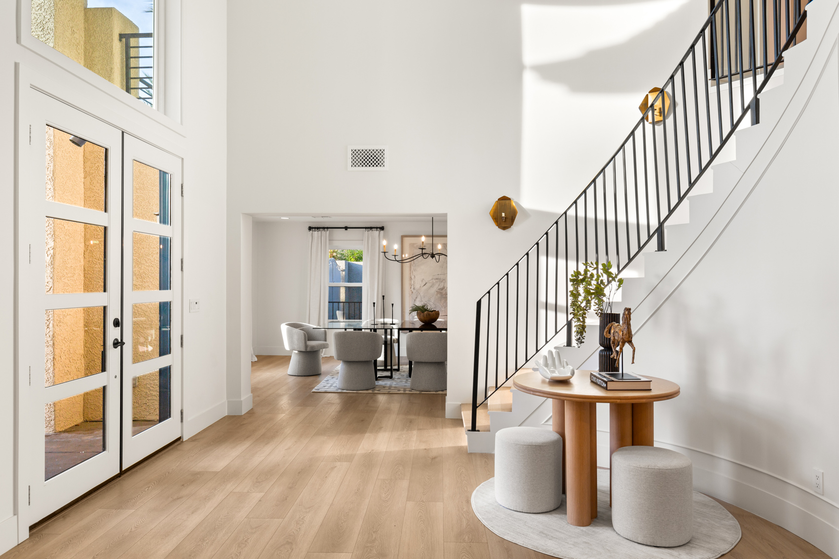 Stunning custom home in a small gated community. Exquisitely remodeled with high-end finishes. Imagine designer touches like Roman Clay walls, a hand-carved marble sink, designer lighting, custom cabinetry ā this home exudes charm. The chef's kitchen features marble countertops and backsplash, brass WaterworksĀ® fixtures, custom hood vent, a hidden butler's pantry has an abundance of storage, handmade Moroccan tile and a beverage fridge.