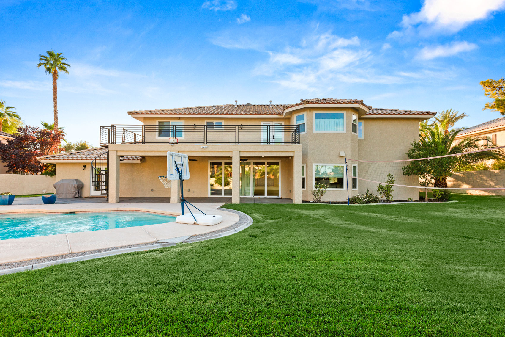 The primary retreat features a spa-like bath with soaking tub, white oak cabinetry, WaterworksĀ® faucets throughout, large shower with Moroccan tile and multiple showerheads, and dual walk-in closets. Fabulous floorplan with 4 en suite bedrooms upstairs, a secondary primary suite on main level plus a game room and theater on the lower level. Well appointed laundry rooms on both floors plus a dog wash area. The large backyard has a tranquil pool, plenty of grassy areas with mature landscaping and a storage shed. This home should not be missed!