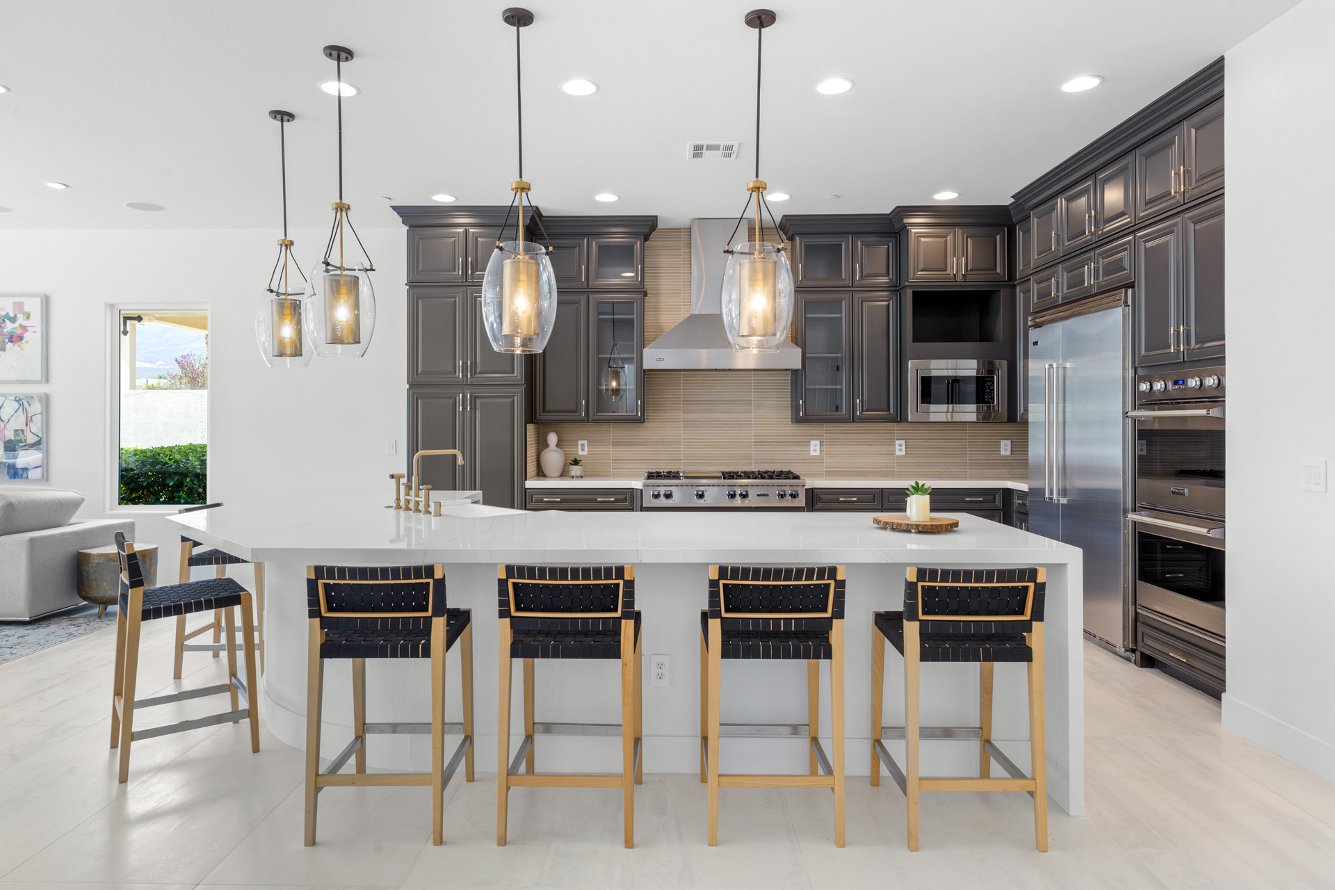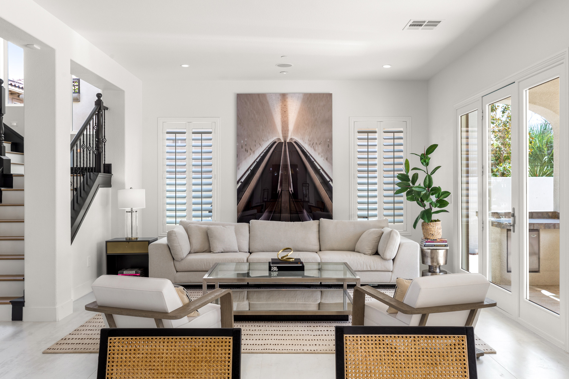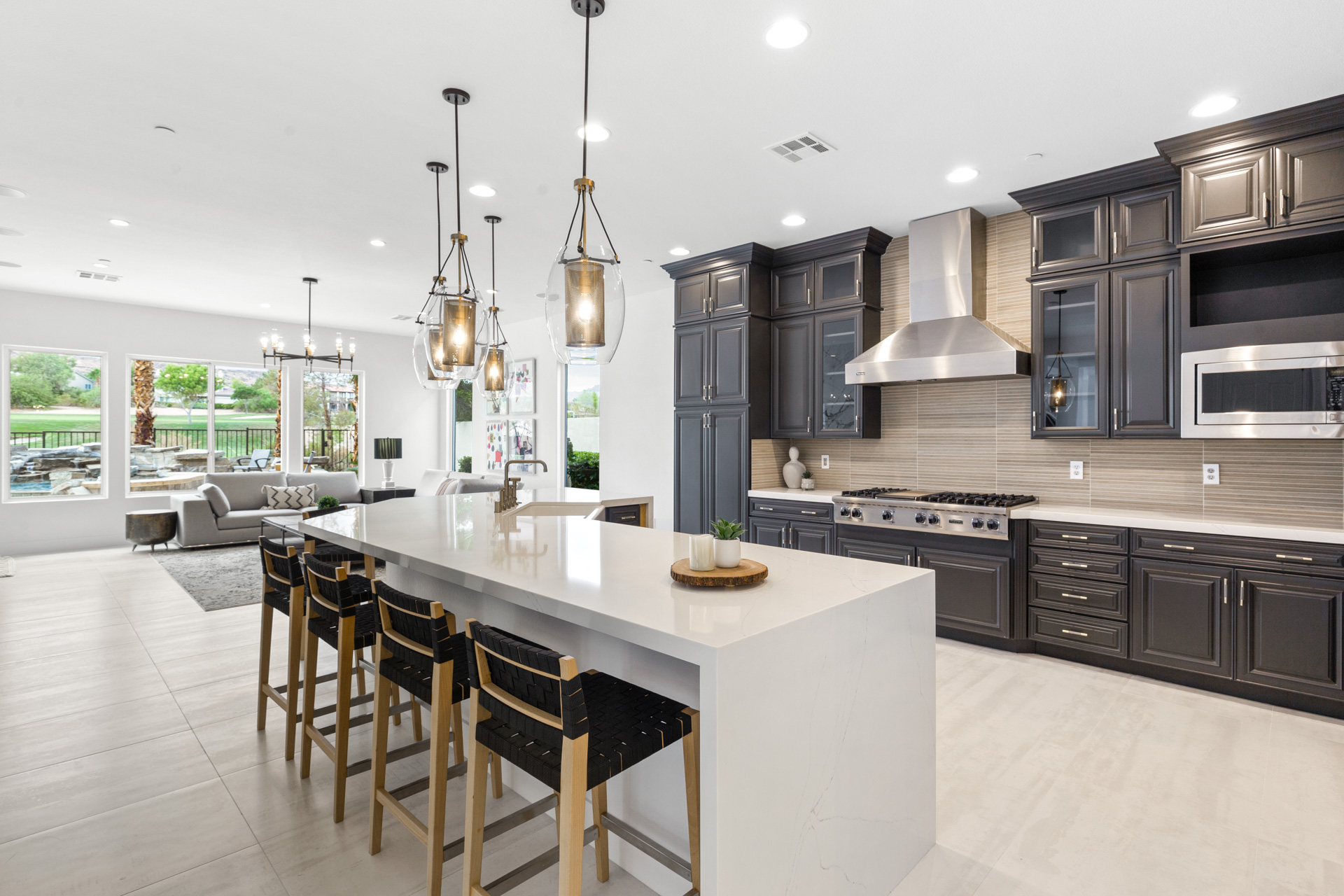 Another great room space includes a chefās style commercial-grade kitchen complete with a six-burner cooktop with grill, farmhouse sink, sub-zero refrigerator/freezer units and large, wrap-around island with bar seating, and a family room with a wall of windows with the golf course and mesa ridge views that exits to the covered patio. A bedroom with a private bath and a three-car garage with resin flooring complete the first floor. The upstairs houses a recreation room with wet bar and island that exits to a second-floor balcony overlooking the pool, golf course, and mountains beyond. The master suite includes a sitting area, fireplace, private, covered balcony, boasting course and mesa views, and bath with soaking tub, walk-in shower, and walk-in custom closet. Two additional bedrooms on the second floor include private baths. The casita includes a guest room, complete with bath and closet, that opens to the interior courtyard. Outside, enjoy resort-style living with a multi-level pool complete with hot tub and fountain, as well as multi-level seating areas. An outdoor kitchen with bar seating is tucked under the covered patio completing the year-round desert living experience. This neighborhood in the Red Rock Country Club is a 24-hour guard gated dual golf course community on the western border of Summerlin. Nestled against the breathtaking Red Rock Canyon National Conservation Area, this community is one of the most notable retail and residential communities in the Las Vegas area.