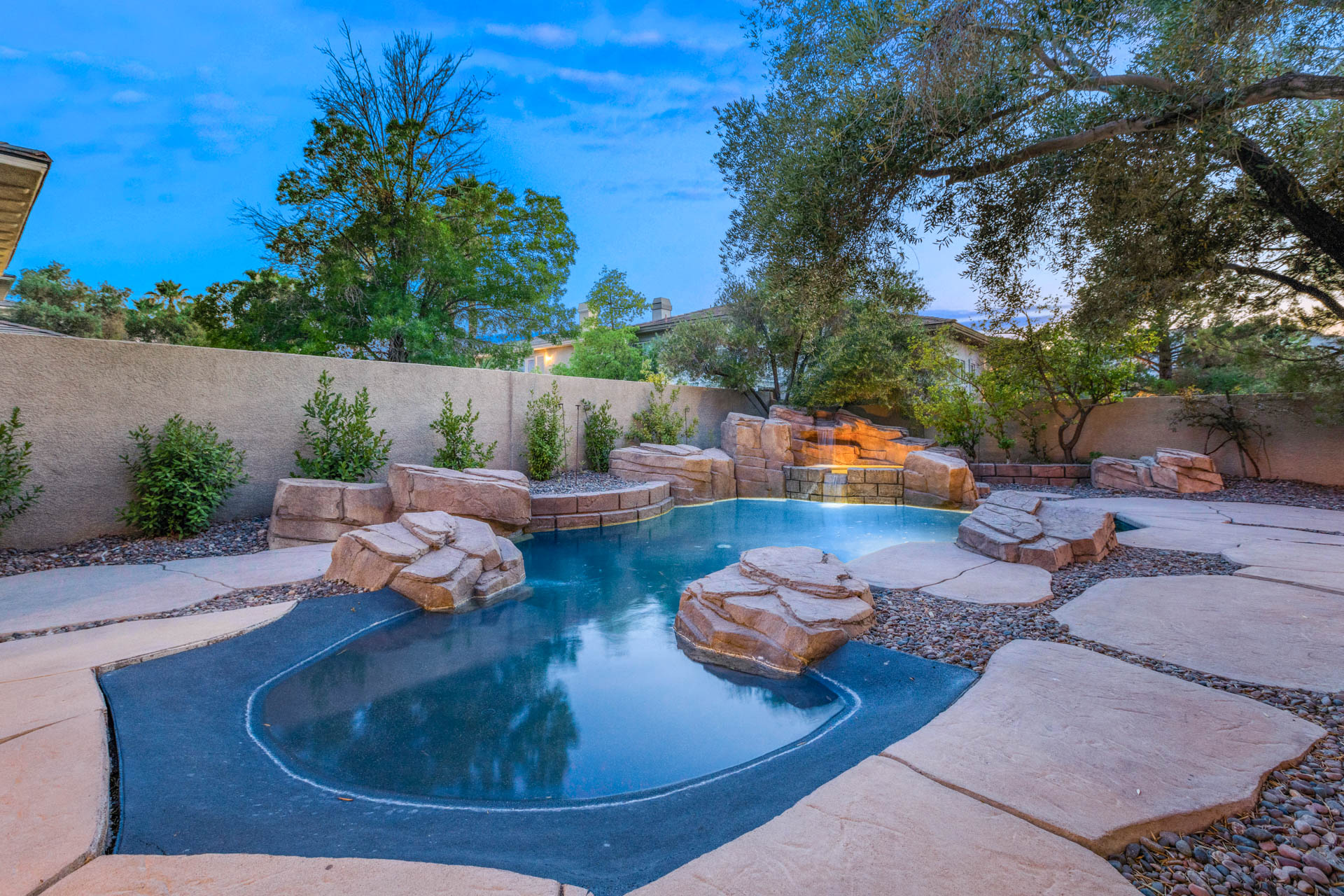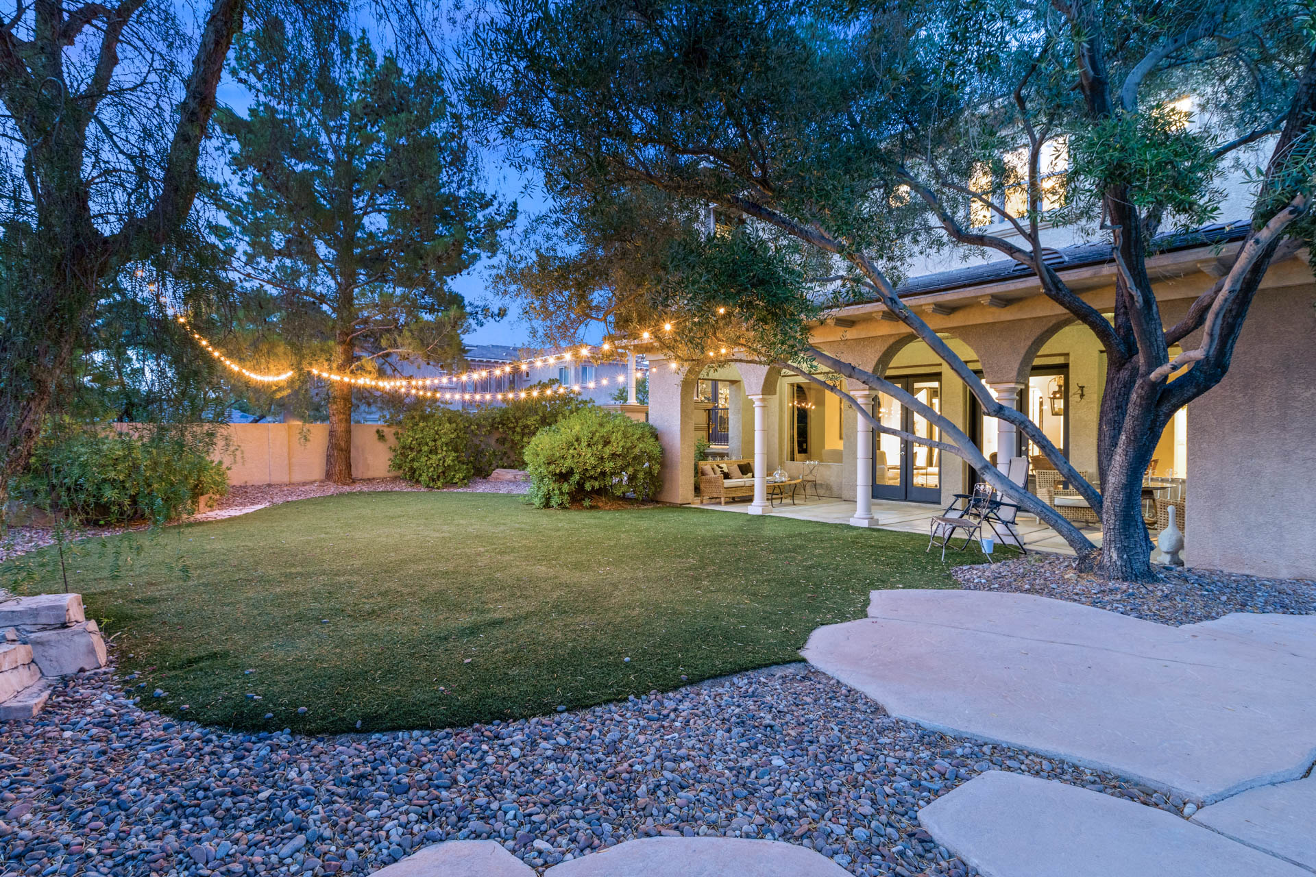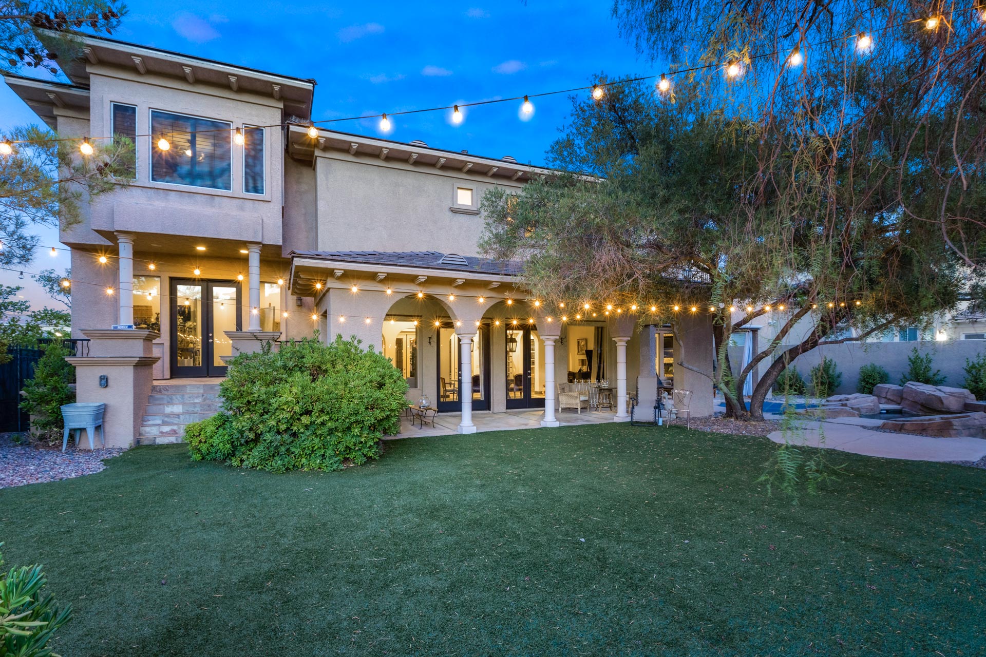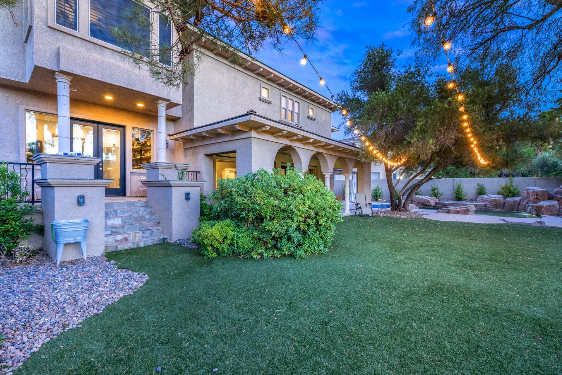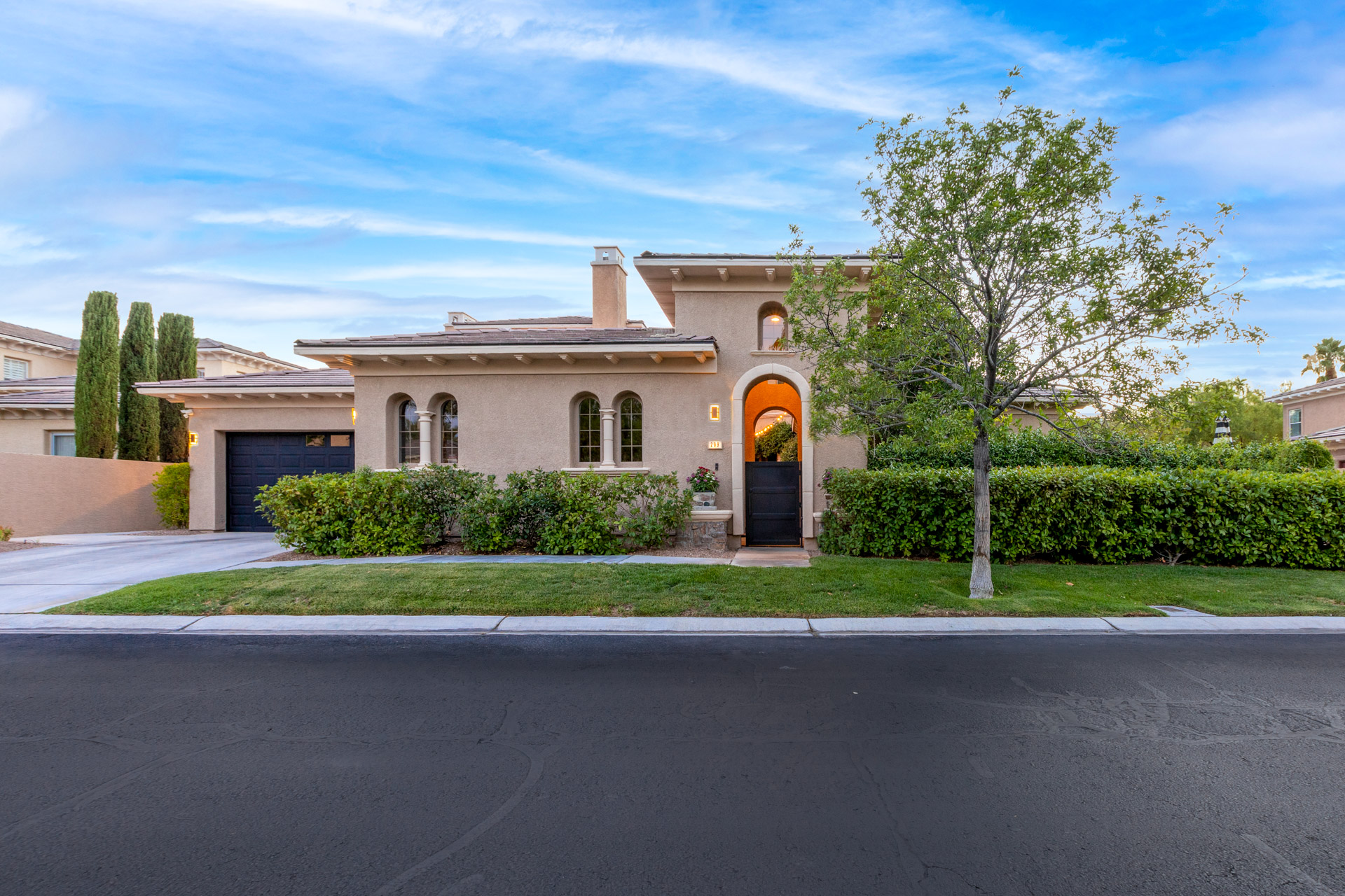 This multi-level home located in Palisades in Summerlin offers distinctive spaces, with the master bedroom occupying the second level as a private domain. With more than 4,900 square feet, the home is a unique interpretation of a traditional "castle," with a circular tower and a blend of artistry and rusticity