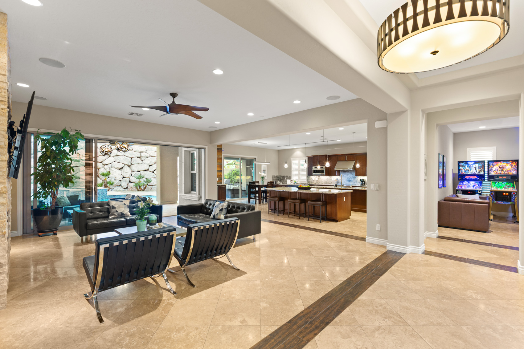 As you step through the inviting courtyard with fire feature and tranquil fountain, you are greeted by an open floor plan that seamlessly flows from kitchen to family room and blends the outdoors with the indoors. The chef's kitchen is a culinary dream with double islands, GE MonogramĀ® appliances, and timeless cabinetry with an abundance of counterspace. This floorplan has 5 bedrooms with 3 and a half baths with lots of storage throughout. The primary suite offers dual walk-in closets and an updated spa-like bath. Four additional guest bedrooms provide plenty of space for guests or family. Solar is owned. Car charger and lift in garage.