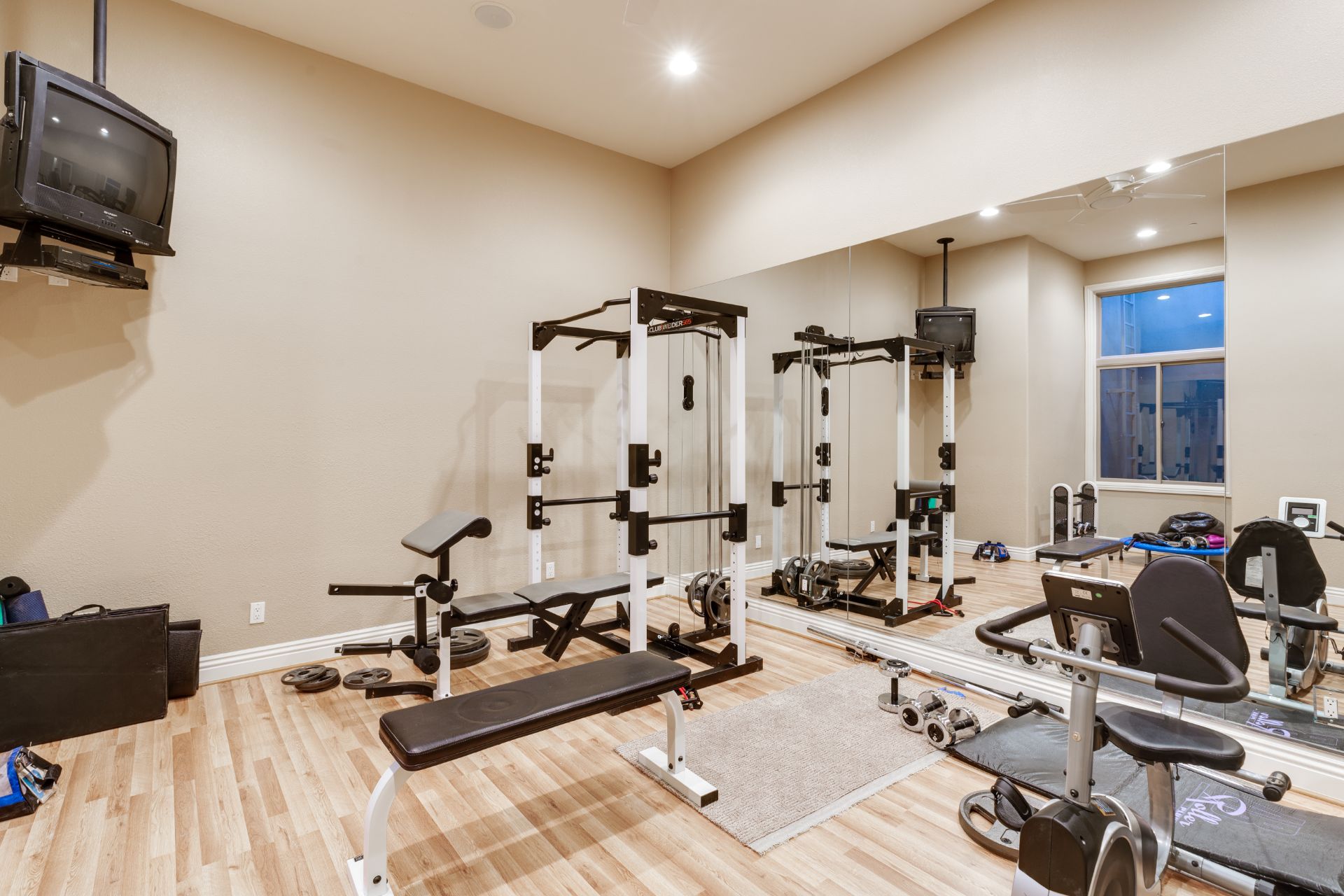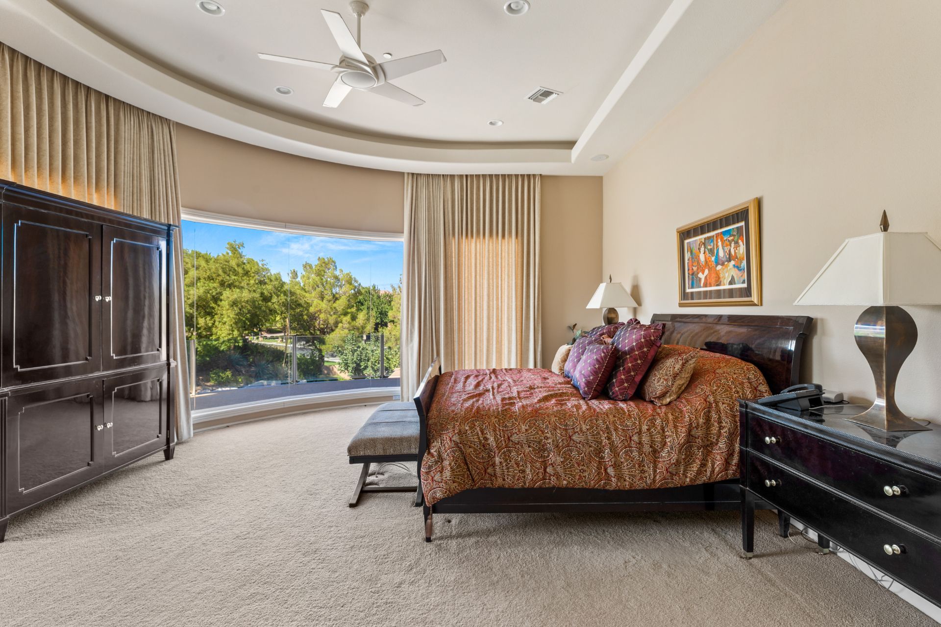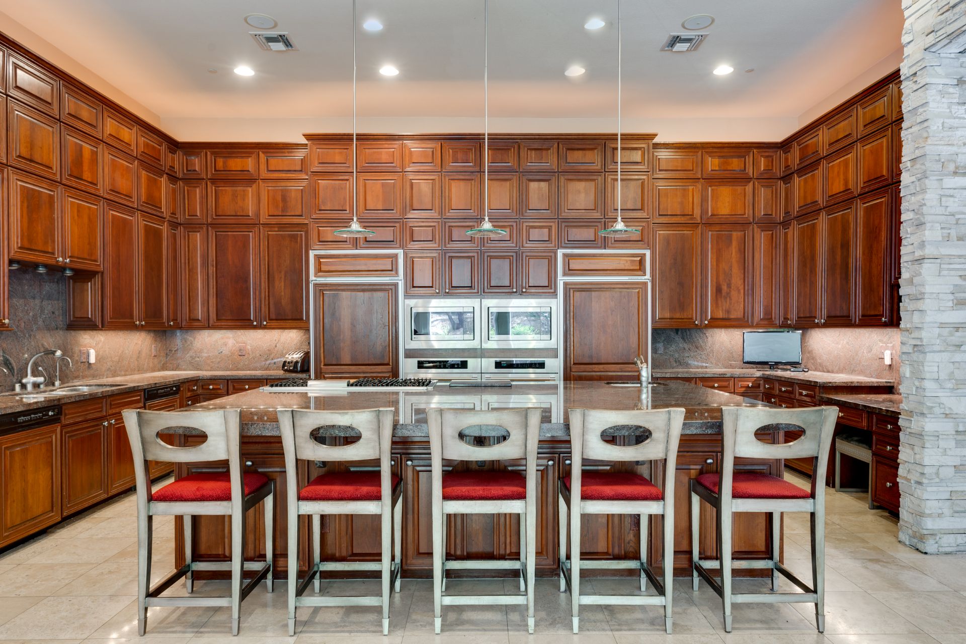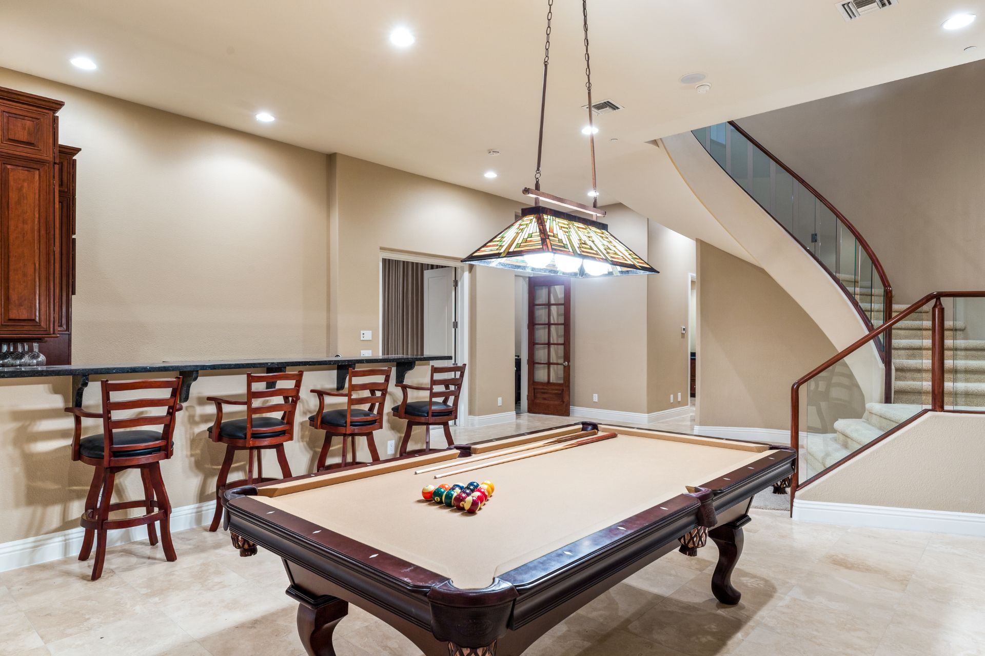 This superb three-level residence features six bedrooms, seven baths, a full exercise studio, a dry sauna, a billiards room, a home theater, and other public and private spaces. The floor plan features walls of glass for a seamless flow between the interior and inviting outdoor spaces. The glass walls and windows not only flood the interior with natural light but expand living opportunities exponentially, blurring the transition between the natural and the built environment. This is a home designed for comfort, but also for the enjoyment of family and friends, and for private pursuits. The kitchen is designed to cater to a crowd, but it's cozy enough for family snacking at its huge center island. Custom cabinetry and the finest of modern appliances make both meal preparation and grand entertaining easy. Neutral interiors and understated exterior spaces form the perfect backdrop for personal expression and unique individuality. There are three gas fireplaces in the home and garage parking for four vehicles, in addition to the mature landscaping features that highlight both front and rear yards. An outdoor observation deck extends across the home's rear facade, offering a panoramic view of the exterior's stunning water feature. Come home to a distinctive lifestyle at this attractive Anthem Country Club address.