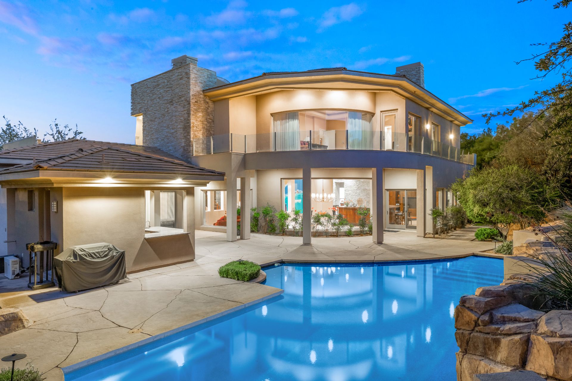 Behind the guard gates of Anthem Country Club situated on a 1/2 acre lot is this stunning, contemporary custom home. With a movie screening room, wine cellar, game room, exercise room, dry sauna, elevator to all three levels, and so much more, this home is ideal for entertaining! Distinctive Lifestyle at Anthem Country Club