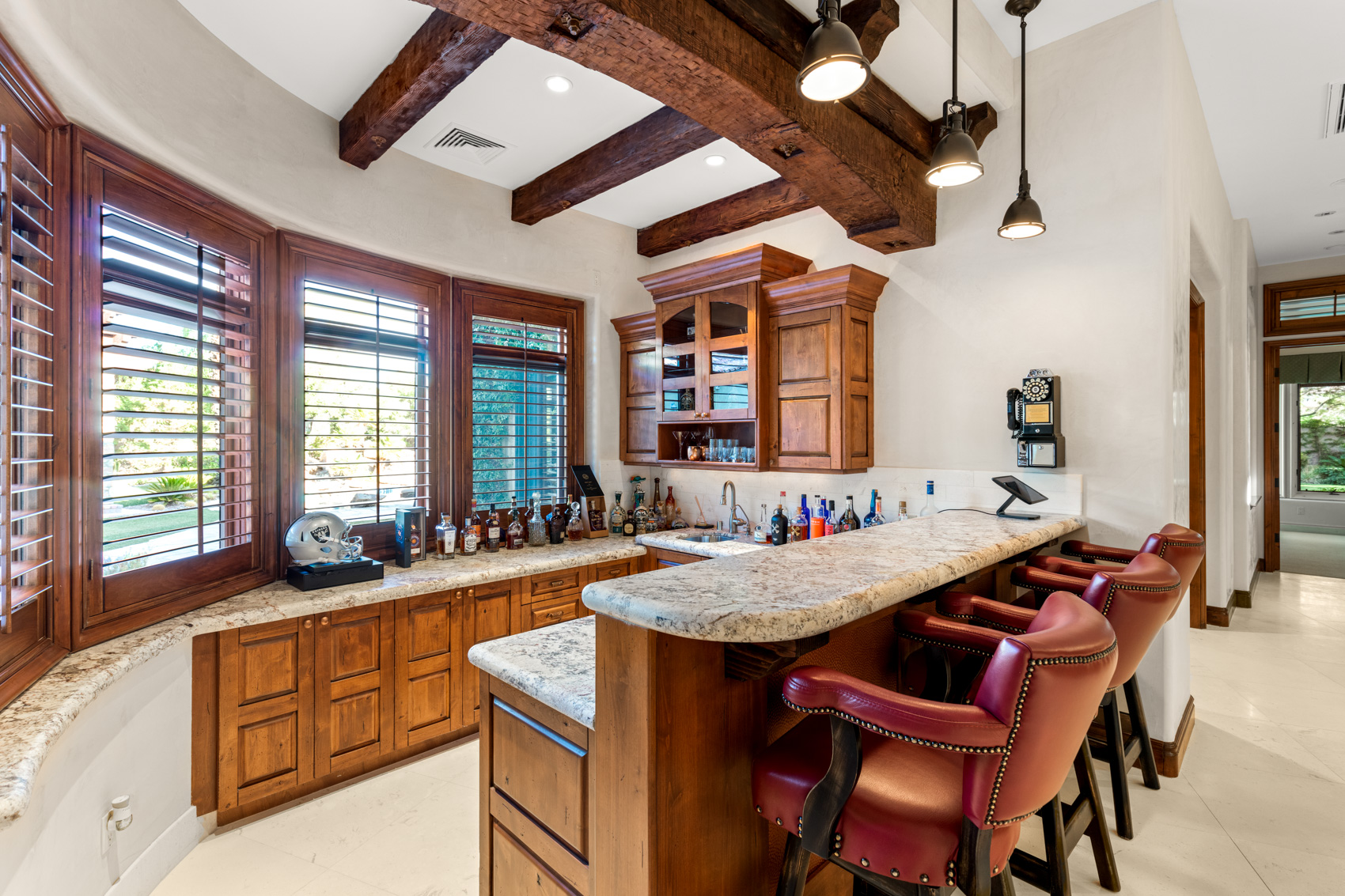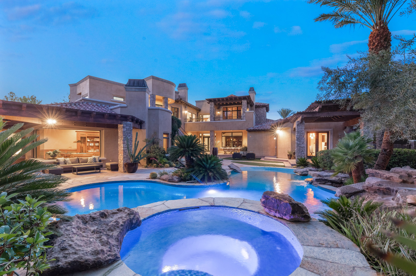Enjoy the feeling of a European resort, where immaculate landscaping, a beautiful pool and spa, multiple seating areas, and an outdoor kitchen all provide the ideal space to escape. Modern luxury and unlimited amenities including a culinary kitchen with large pantry, 250+ bottle wine room, game room, den, family room with full wet bar, casita and guest suite are found downstairs.