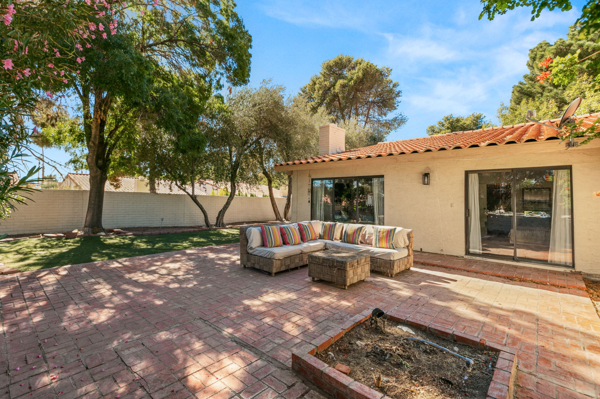 Step into the backyard and discover one of the largest in Spanish Oaksāan elevated retreat overlooking a community green space and pool, framed by graceful olive trees that whisper of Mediterranean afternoons. Itās private, peaceful, and perfectly poised for morning coffee or golden-hour dinners beneath the trees. Inside, both bathrooms feel like a getaway, adorned with Moroccan tile and designer finishes. The enlarged guest suite welcomes visitors with comfort, while the primary bedroom offers a restful escape with direct access to the backyard and a generous walk-in closet. Spanish Oaks itself is a storybook of old Vegas sophisticationātree-lined streets, six sparkling pools, tennis and pickleball courts, and a sense of community rarely found minutes from the Strip and downtown. This is more than a home. Itās an experienceāa rare fusion of history, heart, and modern luxury that could only exist here, in Spanish Oaks.