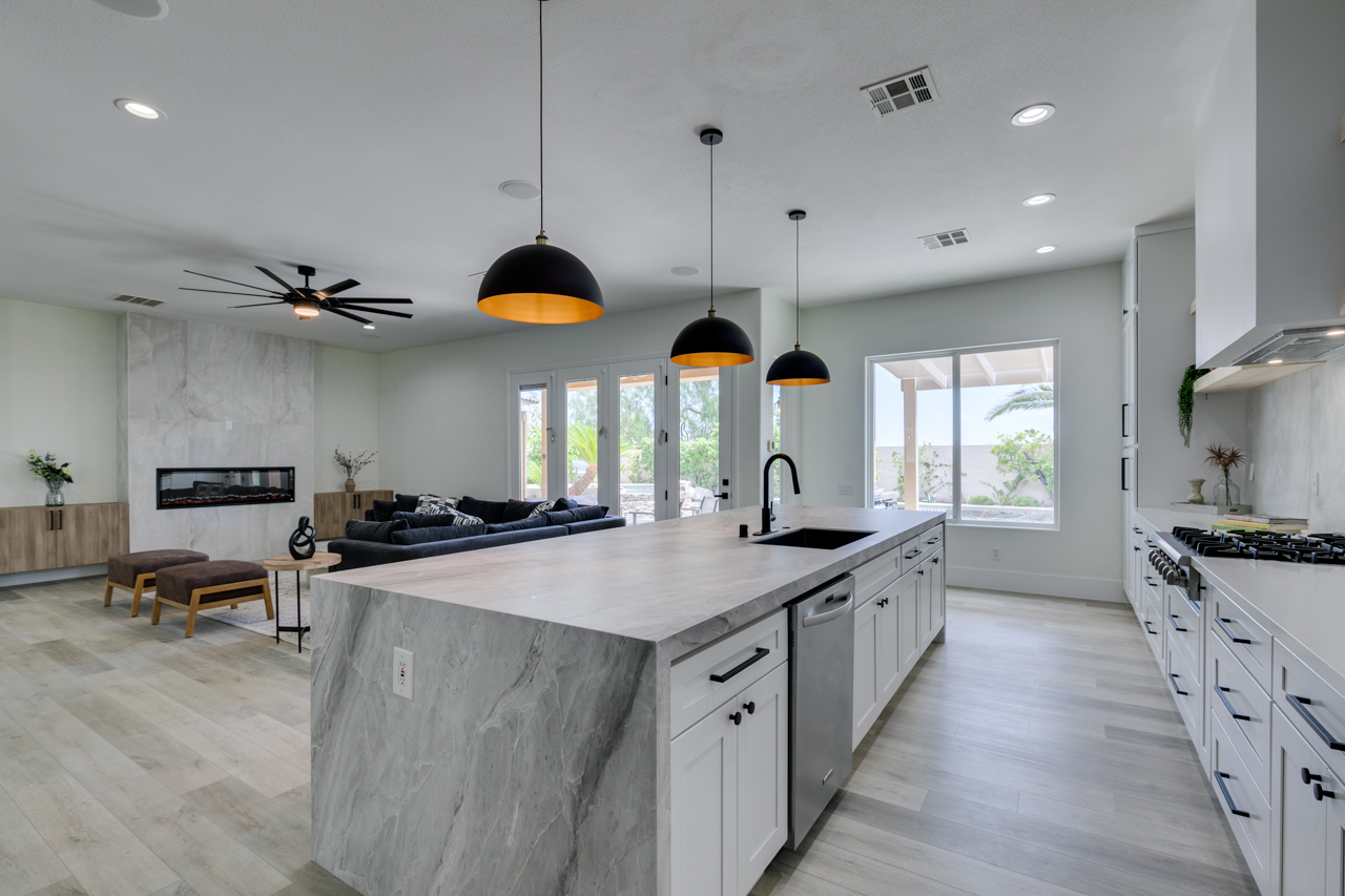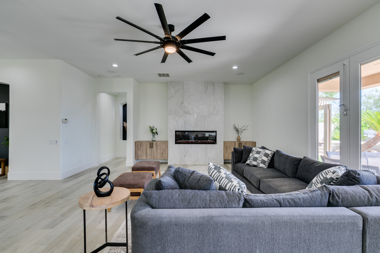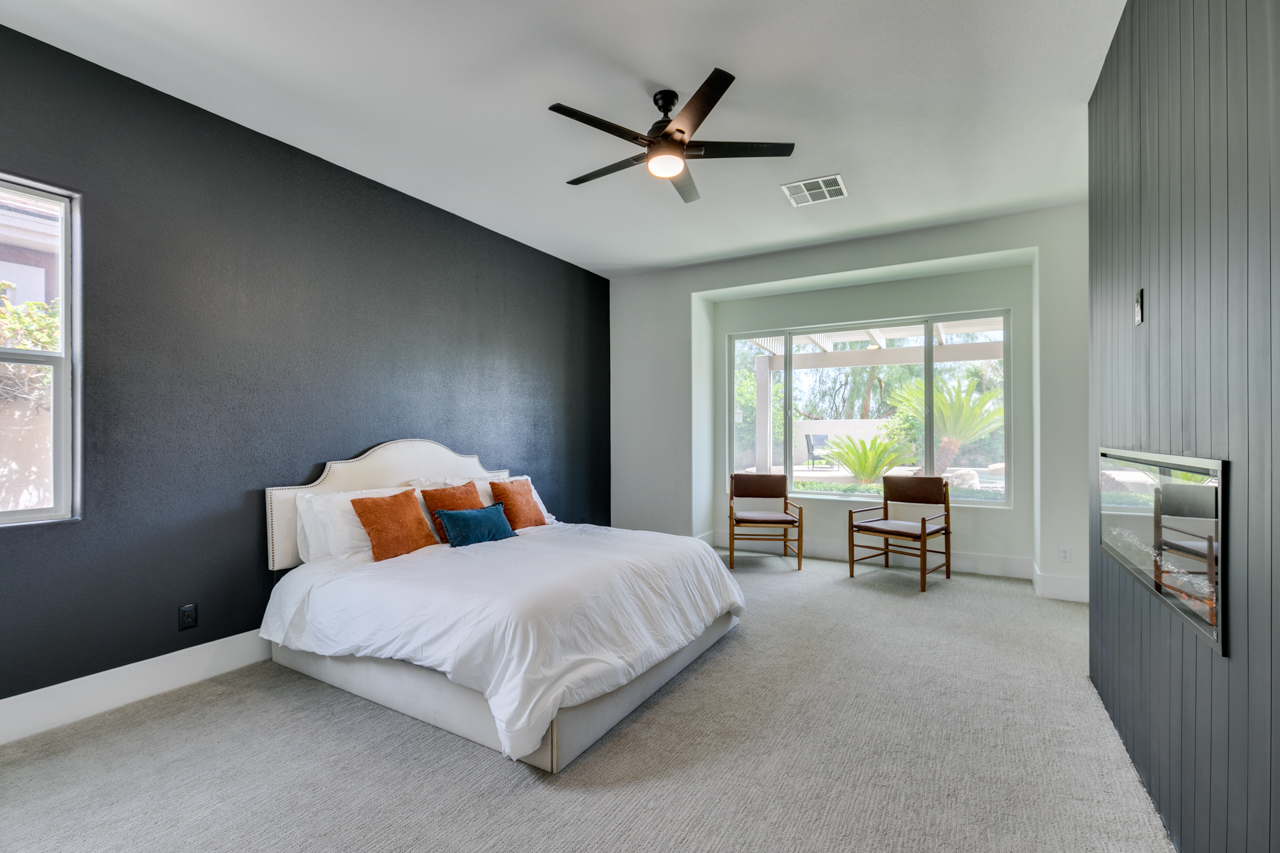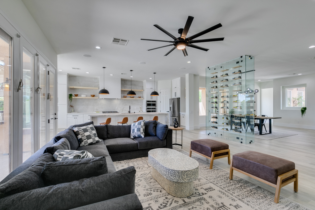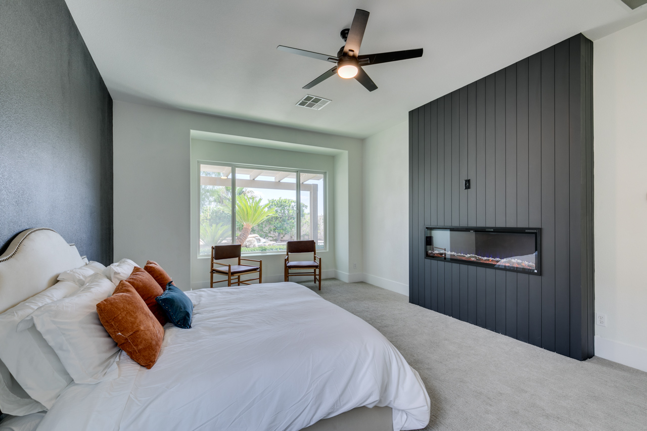 Recently remodeled with a plethora of upgrades throughout such as an impressive floating glass wine wall separating living and dining rooms - a stand-out feature! The expansive master suite features a picture window framing the beautiful landscaping, a custom electric fireplace, and custom cabinets in the master walk-in closet.