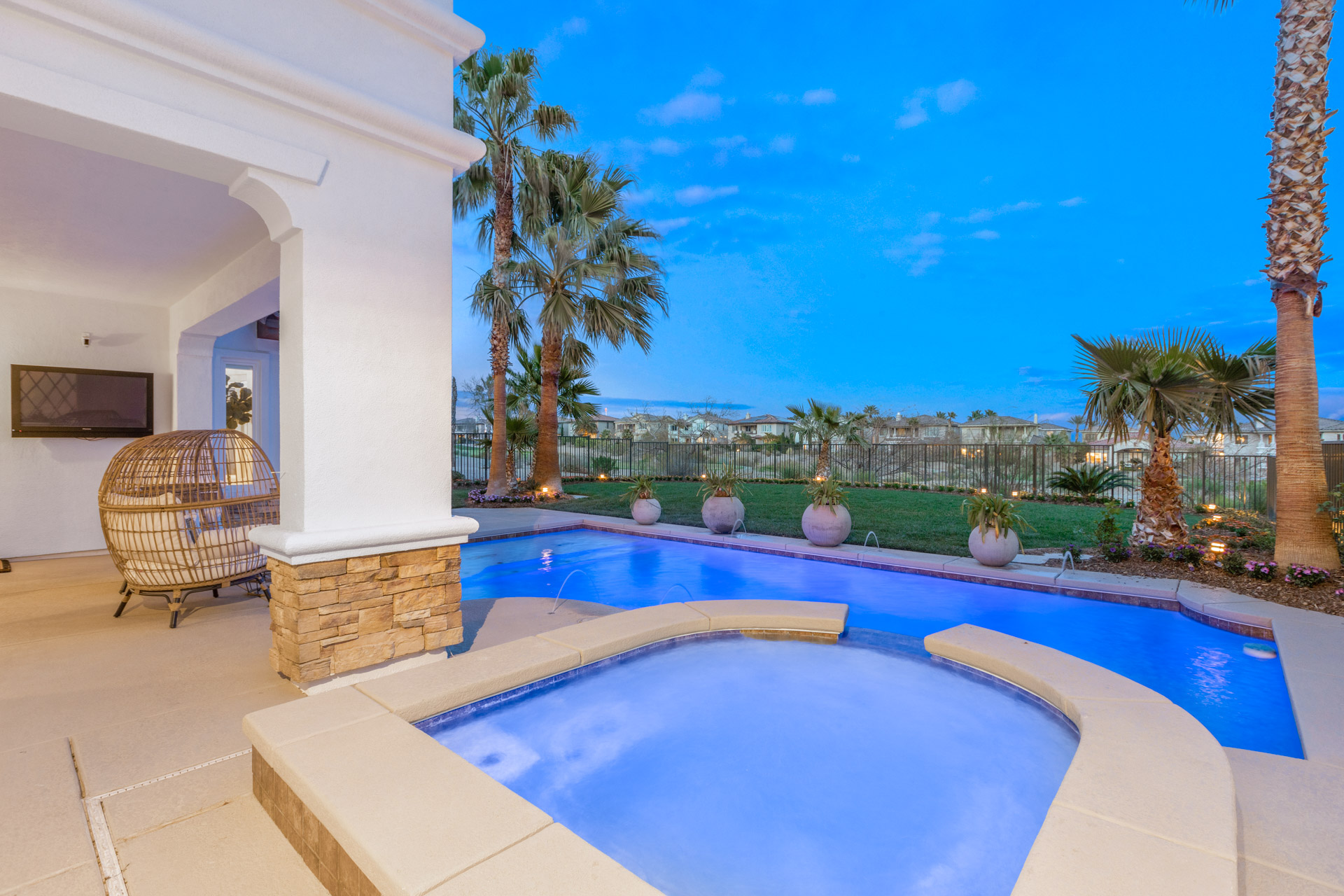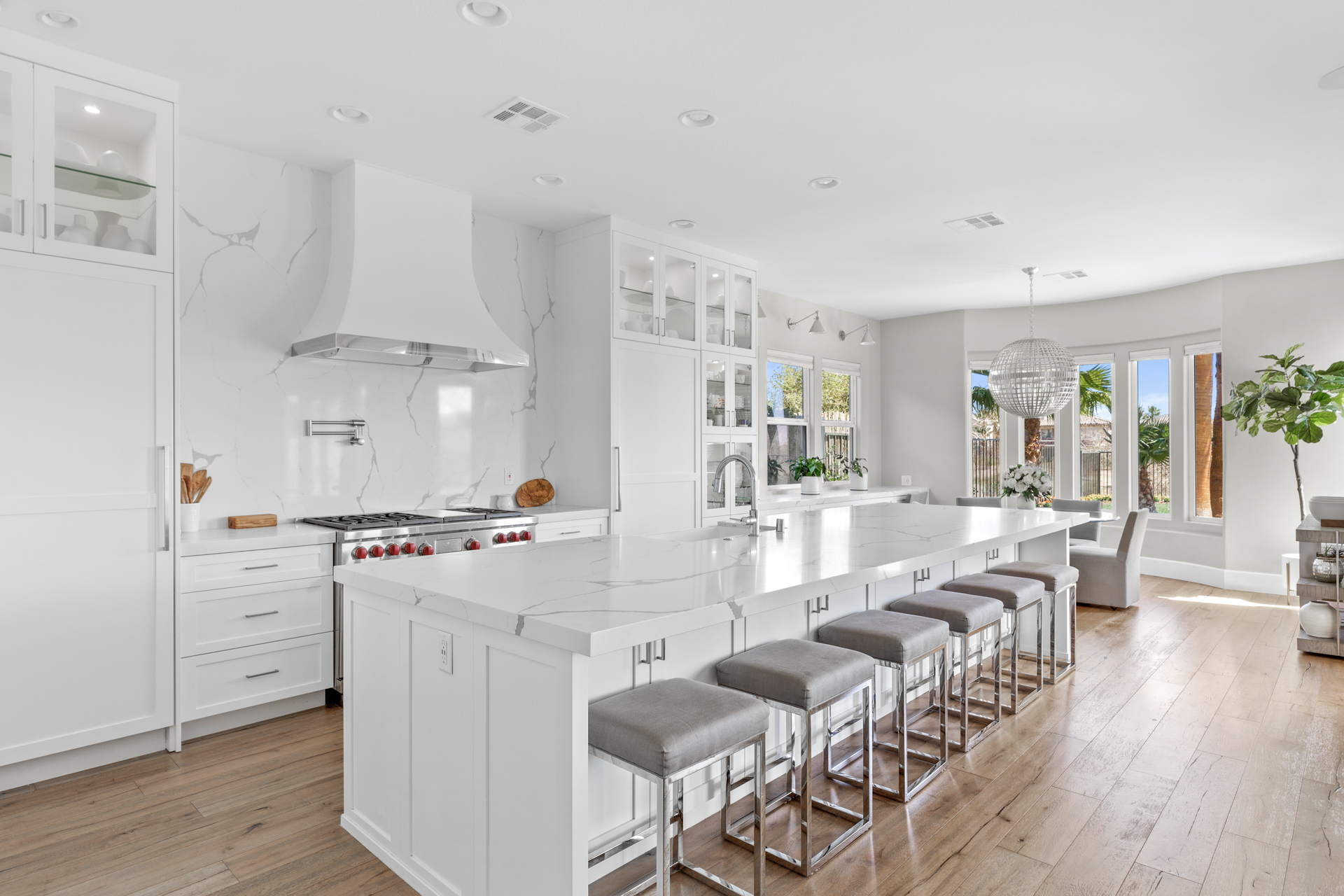 An appealing open floor plan with a sleek gourmet kitchen as its anchor is just one of the attractive features of this two-story golf course home in Summerlin's Red Rock Country Club community. The home boasts a Mediterranean flavor but has been recently remodeled with contemporary flair.