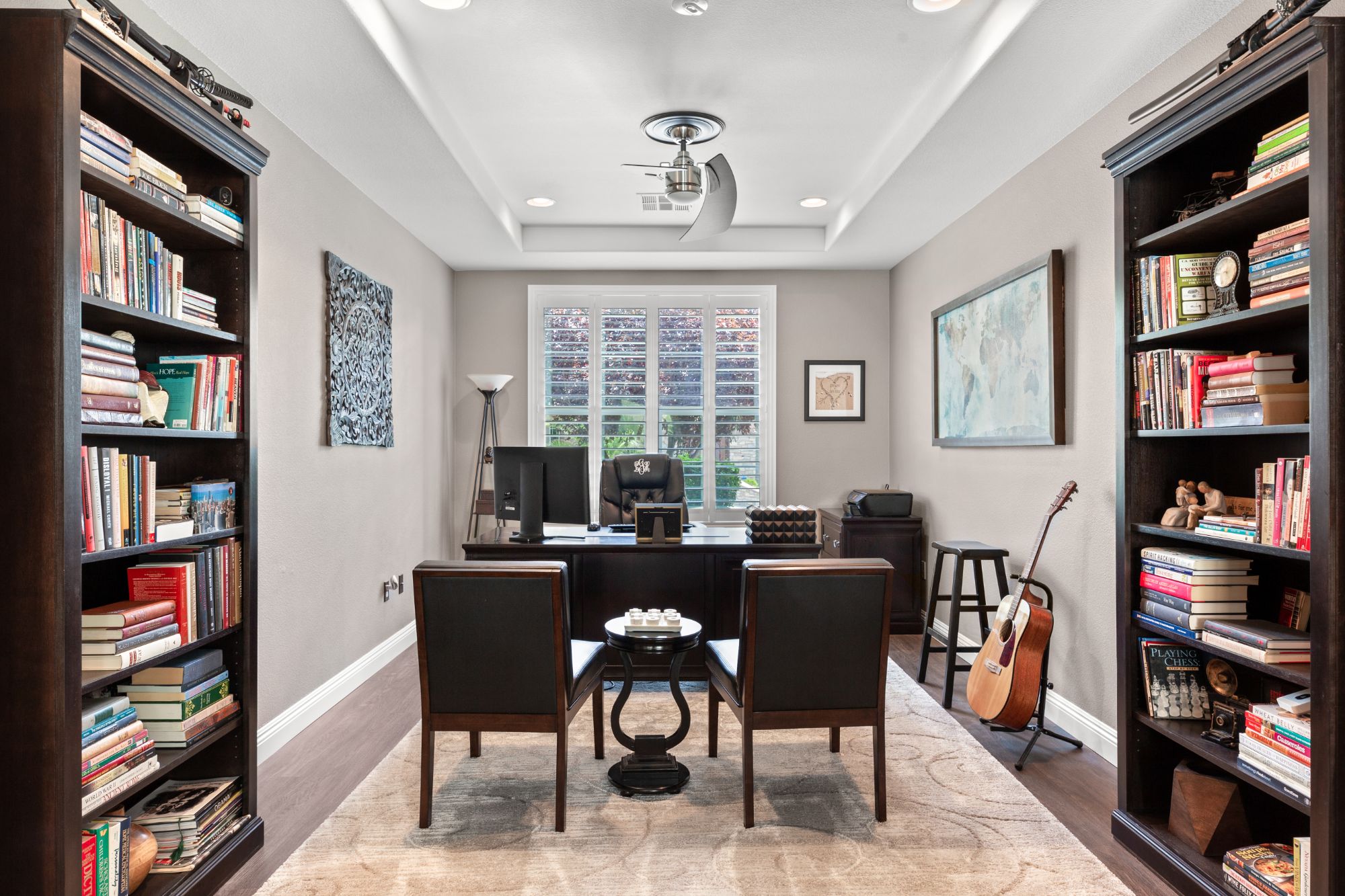 Built in 2004, this home lives like it's brand new, with sand-colored stucco and a clay-tile roof. With a total of 3,205 square feet, this delightful home has great street appeal with a double-car garage, gated entry courtyard and two mature decorative trees. The backyard, in addition to multiple covered and uncovered seating areas surrounding the inground pool and spa, features a lavishly landscaped tiered stucco wall that contributes to the feeling of a secluded oasis.