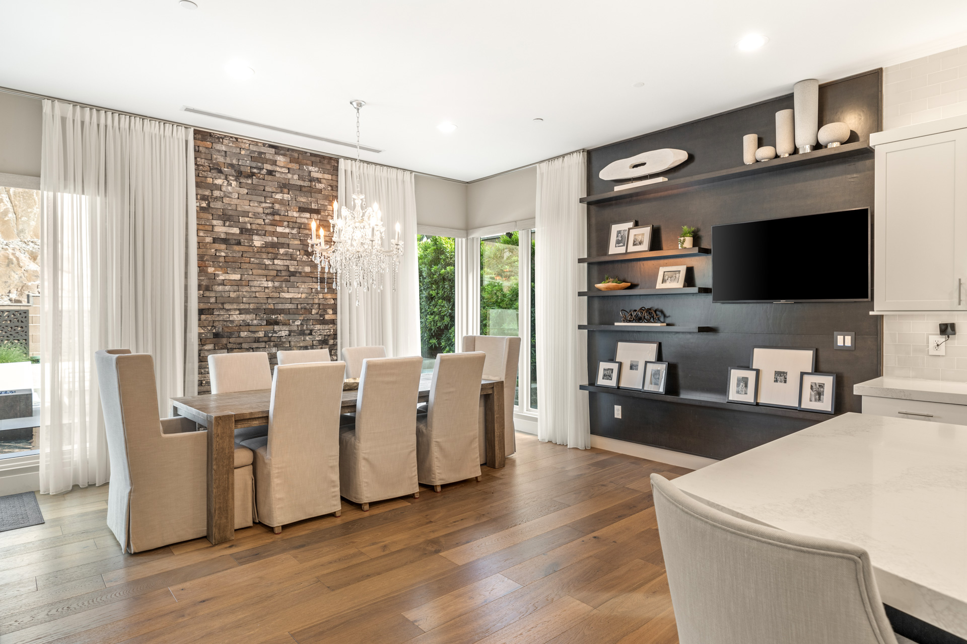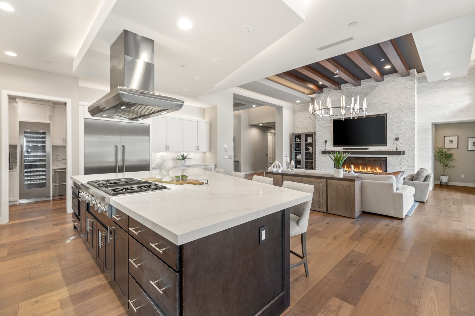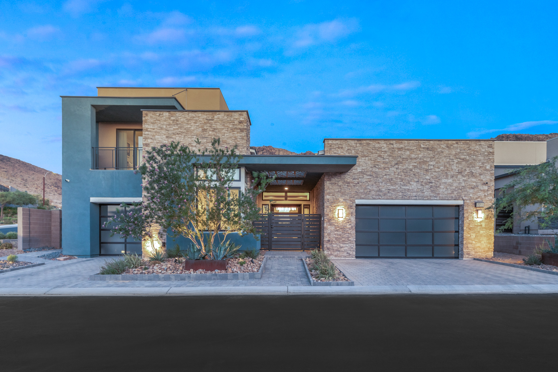 Highly sought after contemporary home nestled into the hillside. Stylish and meticulously designed with an open floorplan. Chic finishes include: statement chandelier, hardwood floors throughout, wood ceiling accents, quartz countertops, custom bar, linear gas fireplace with cantilevered mantle, and temperature controlled showcase wine room (over 250 bottles). Chef's kitchen with ThermadorĀ® appliances, statement island and double dishwashers.