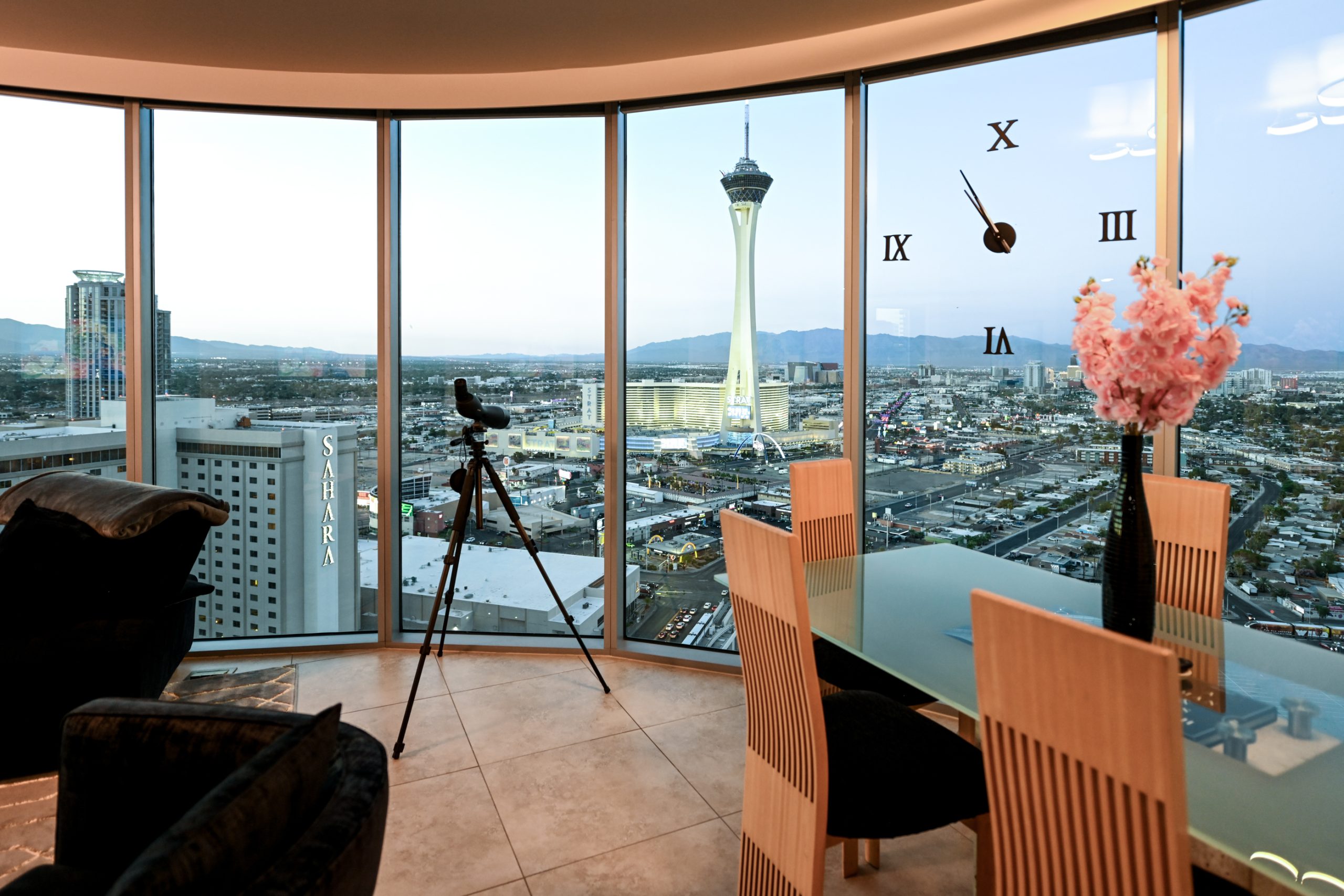 Discover luxury living in this stunning 2-bedroom, 2-bath, 1-Den high-rise condo on the 30th floor in the heart of Las Vegas, offering breathtaking views of the Strip and surrounding mountains. The spacious kitchen features elegant black natural stone countertops and a stylish backsplash, perfect for enjoying the scenery.