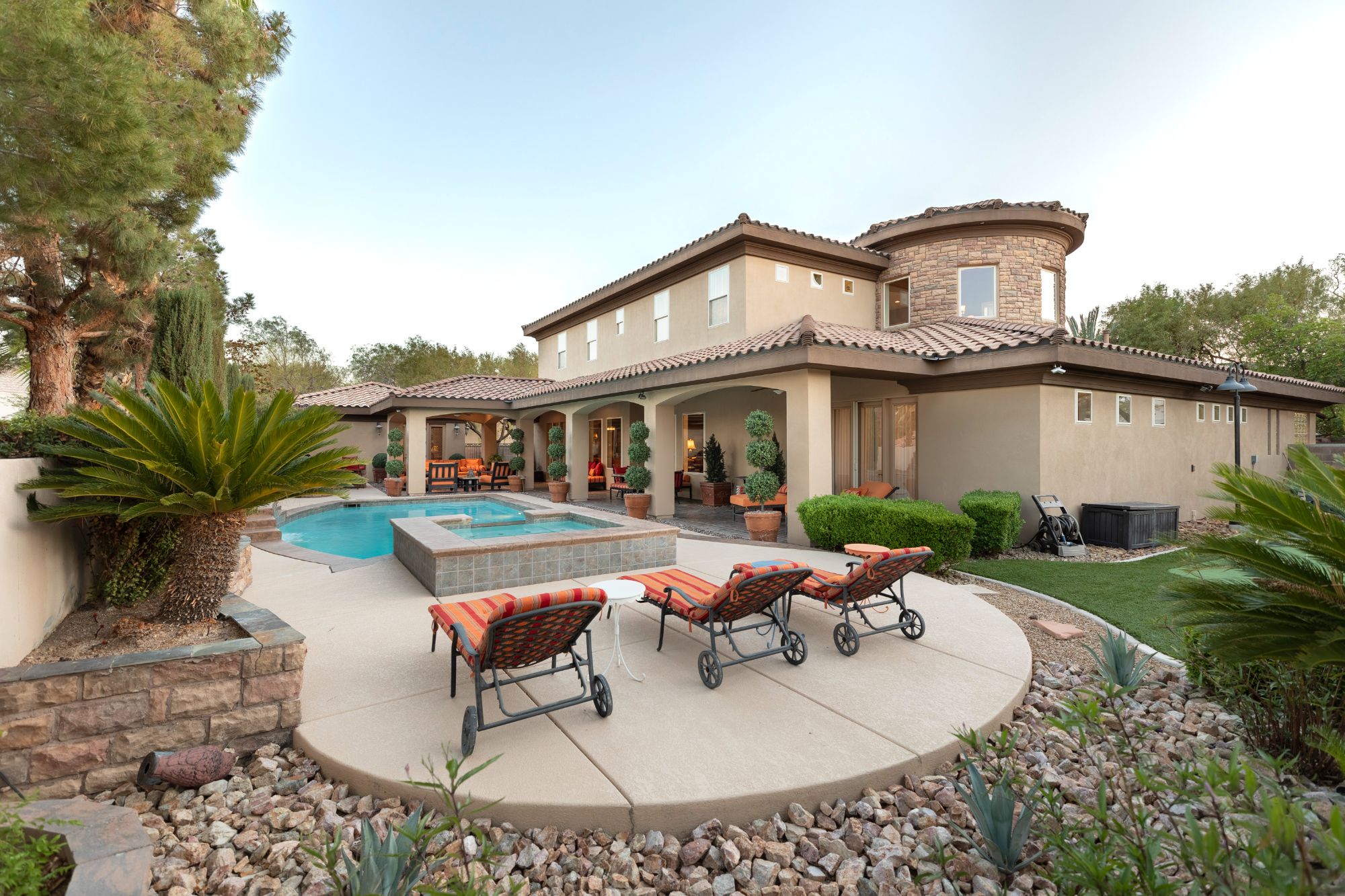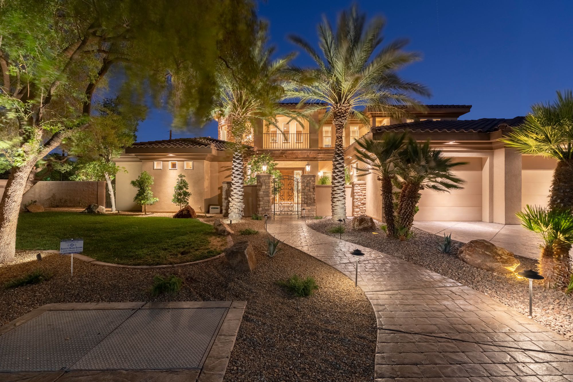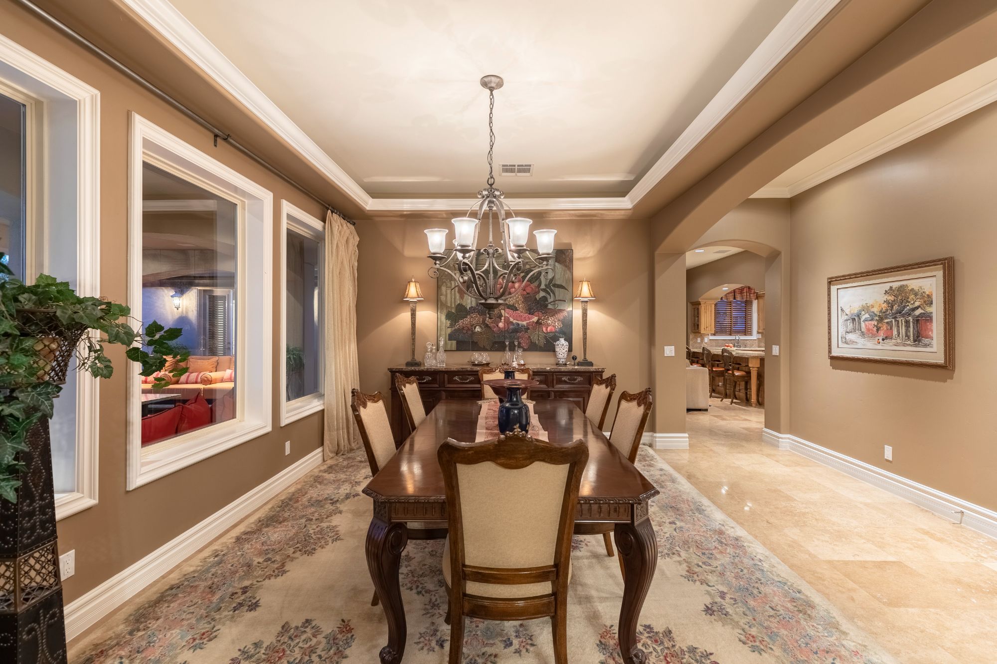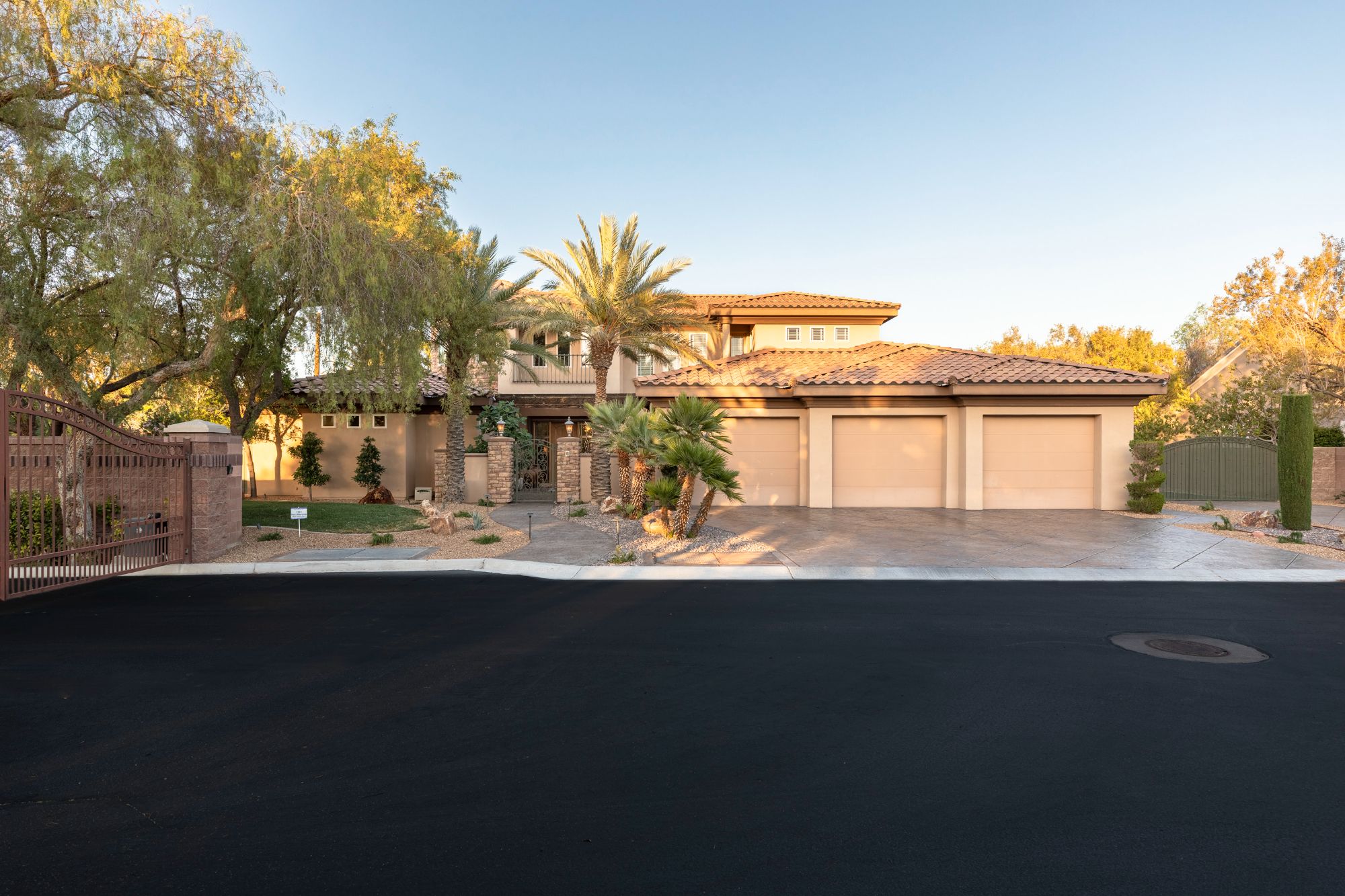 A magnificently designed custom residence in the guard-gated Monte Cristo Estates. Hand-hewn beams span a paved, landscaped entry courtyard with a fountain that leads to the entry door and its leaded-glass sidelights. The home features a two-story foyer, with formal living and dining rooms, and a spacious family den with two natural stone walls and a corner fireplace adjacent to a beautifully detailed kitchen.