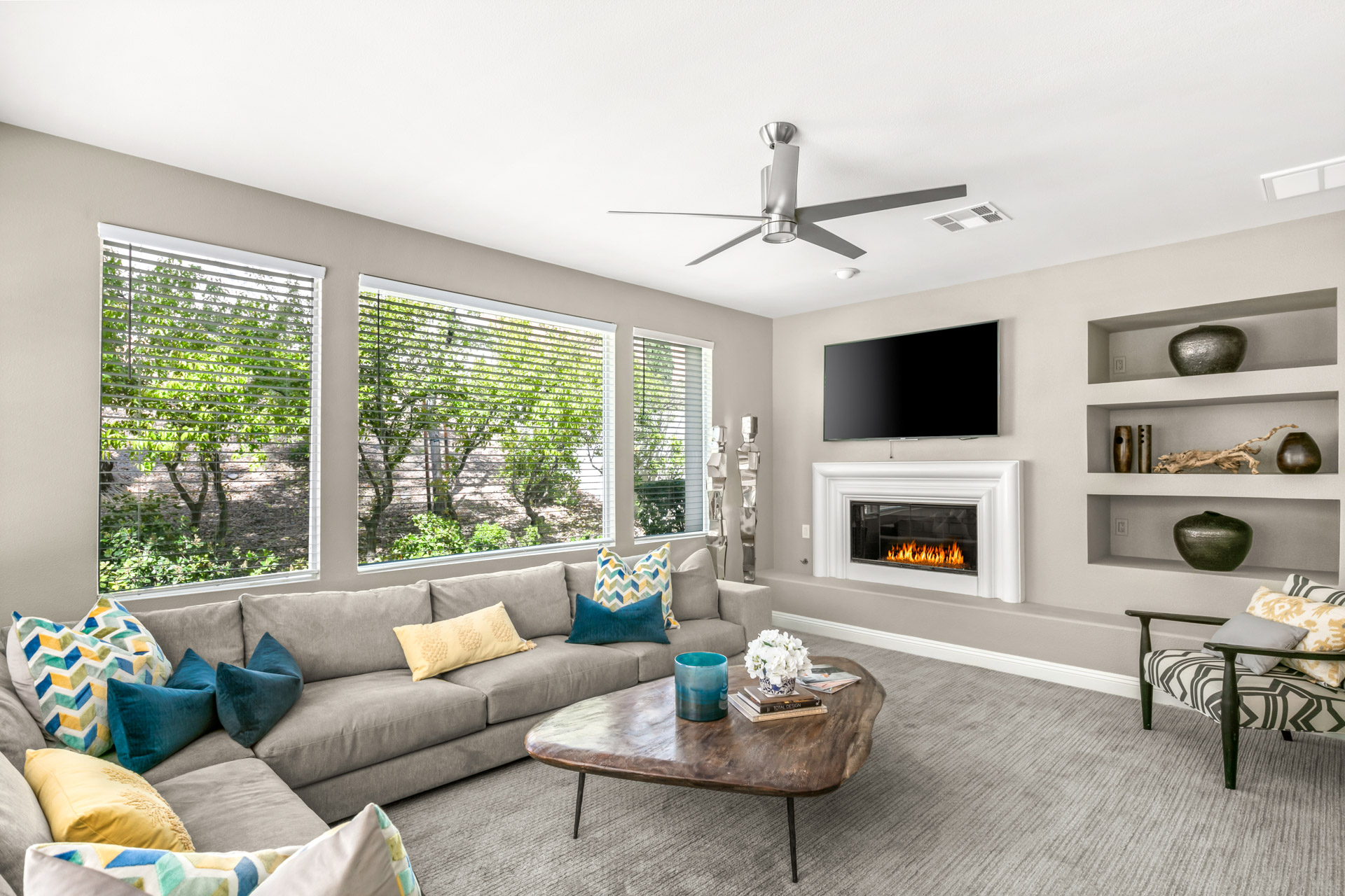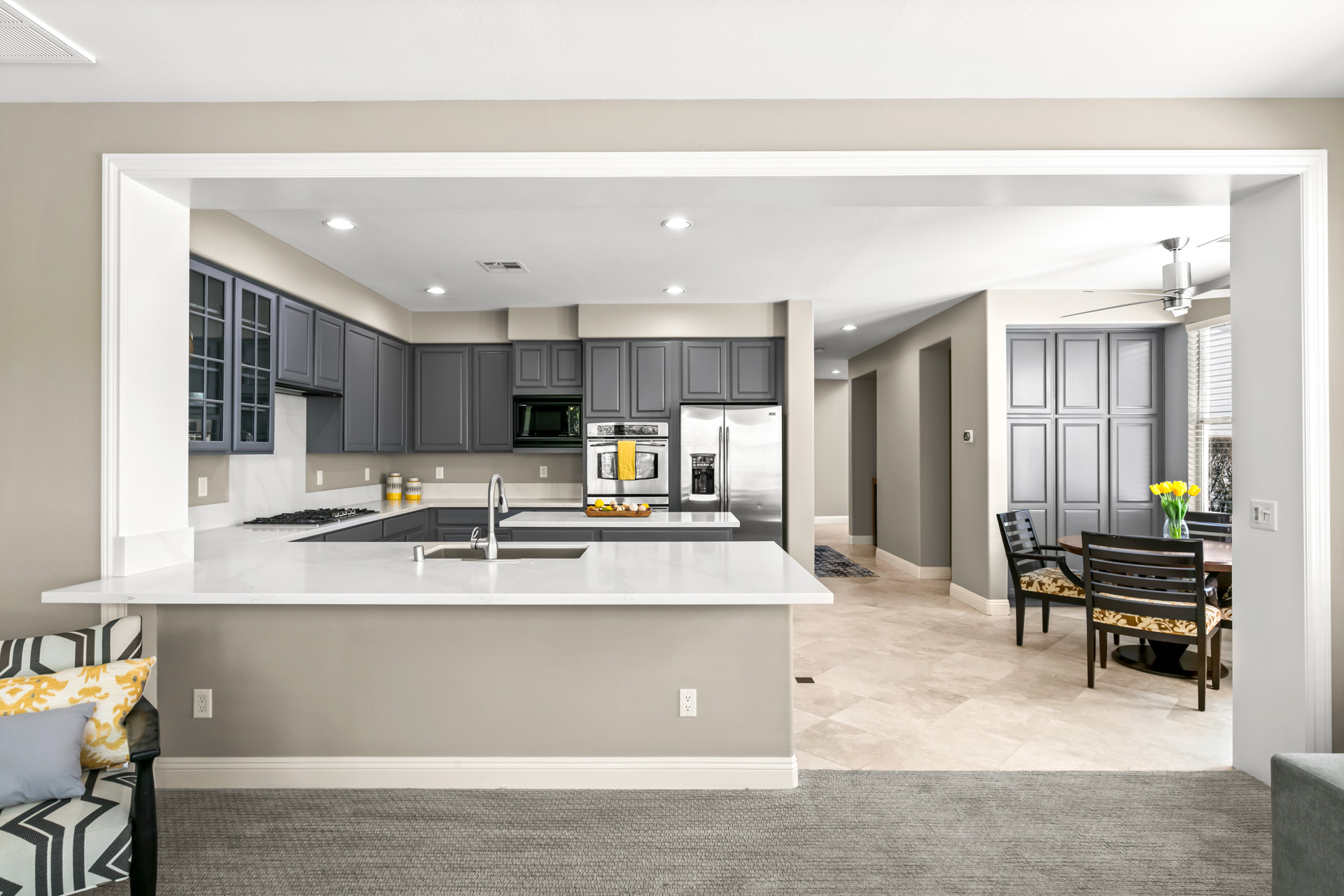 Located in the guard-gated community of Red Rock Country Club is this completely updated home! Vaulted ceilings, arched windows, and a grand spiral staircase beckons you into the entryway and sitting area with plenty of natural light. The kitchen boasts sleek, granite countertops, a prep island, and breakfast bar. On the main floor is a formal dining room, breakfast nook, and living room with a fireplace.