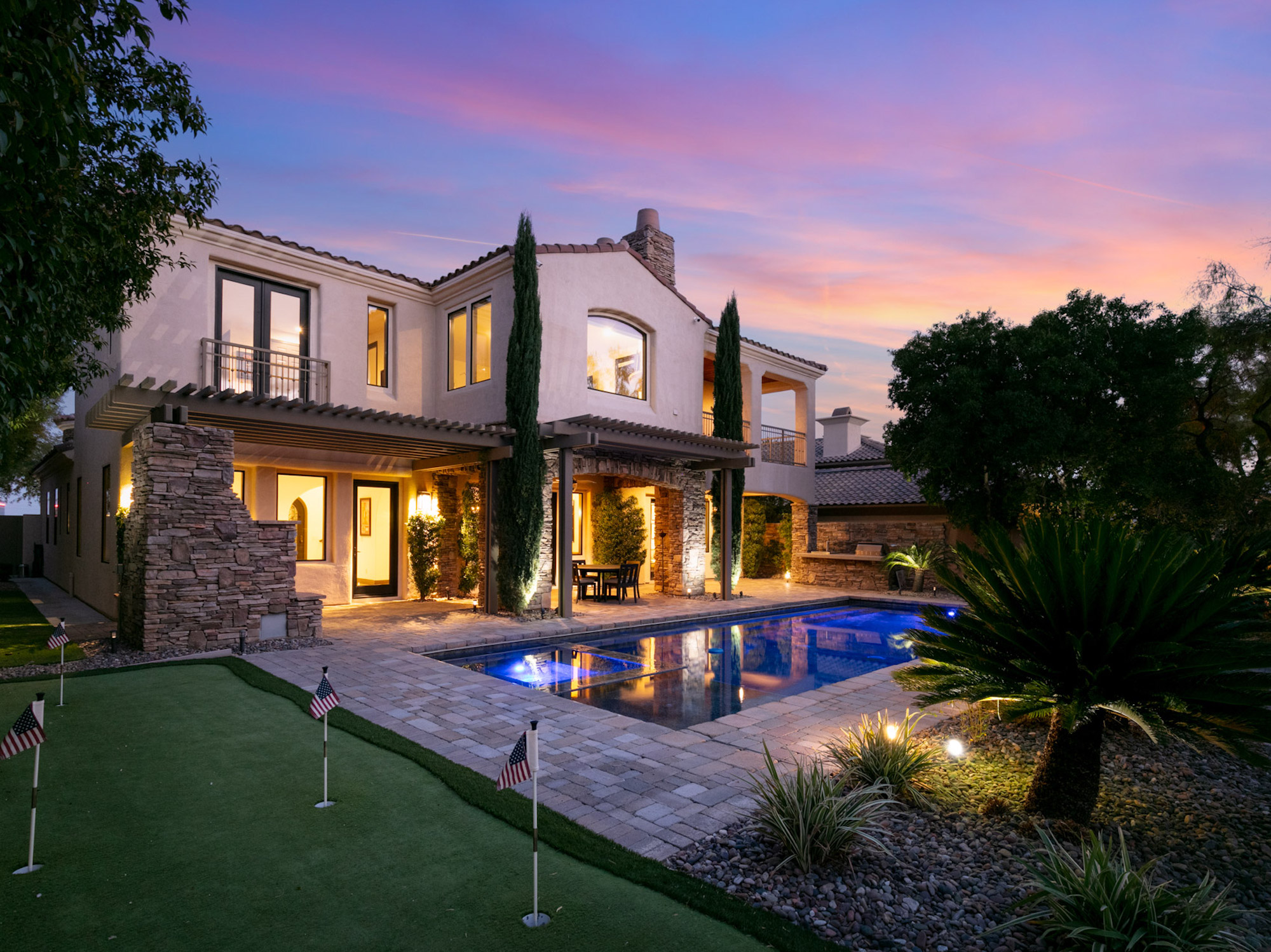 Located in Red Rock Country Club, one of the most desirable guard-gated neighborhoods in Summerlin, this home is 4,156 square feet with 4 bedrooms, 5 bathrooms, an office and 3 car garage. With a recent $500,000+ renovation, the floorplan and contemporary aesthetic is optimized for a flexible lifestyle, where entertainment and daily living can both take precedent.