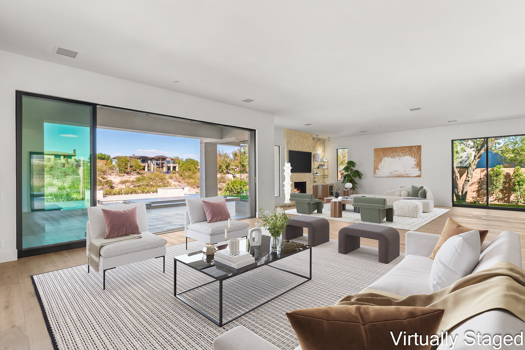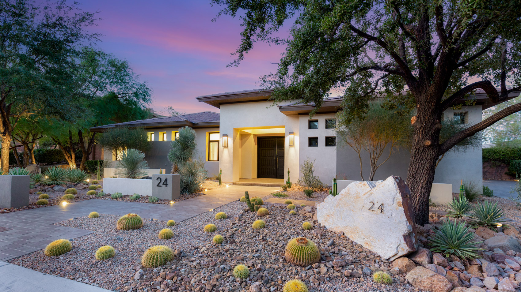 From the moment you arrive, the homeās clean architectural lines and modern faƧade create a commanding presence. Thoughtfully redesigned inside and out, it blends organic textures, warm neutrals, and glass expanses that blur the boundaries between interior comfort and the natural desert landscape. Every space has been elevated with designer-selected finishes and top-of-the-line craftsmanship, transforming the residence into a true showcase of form and function.